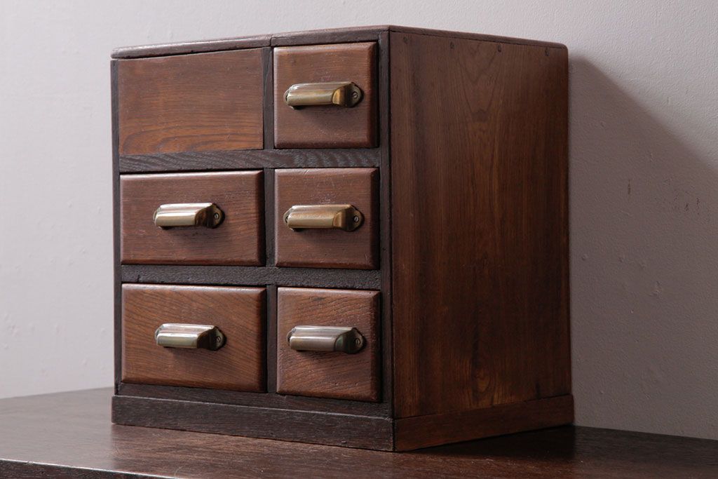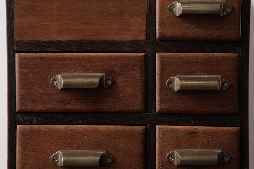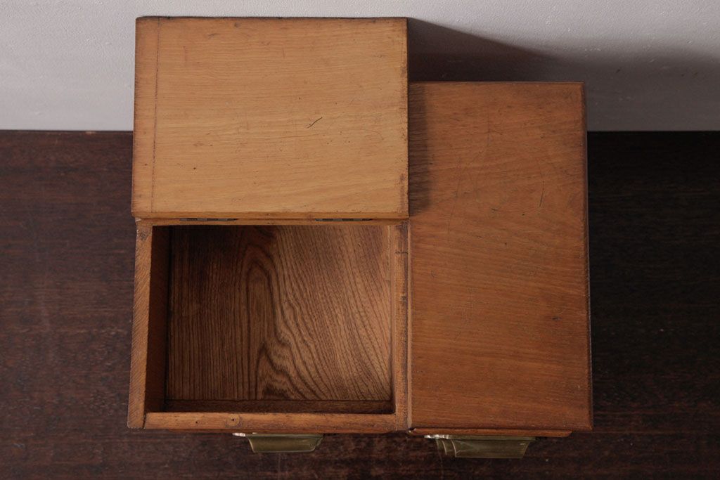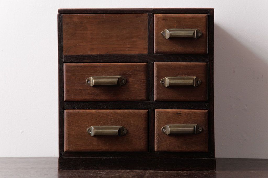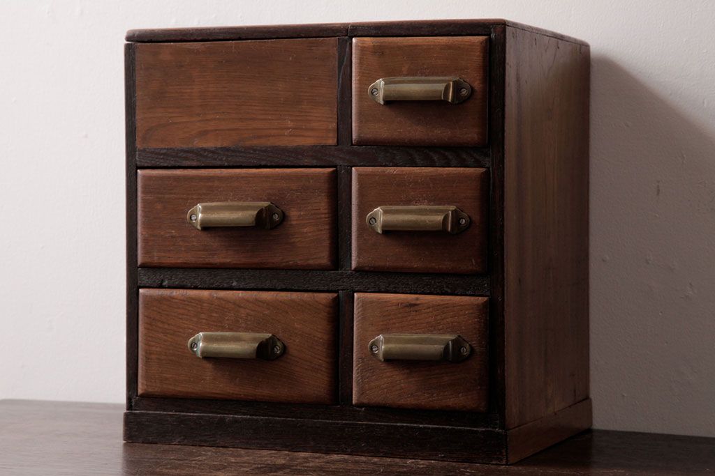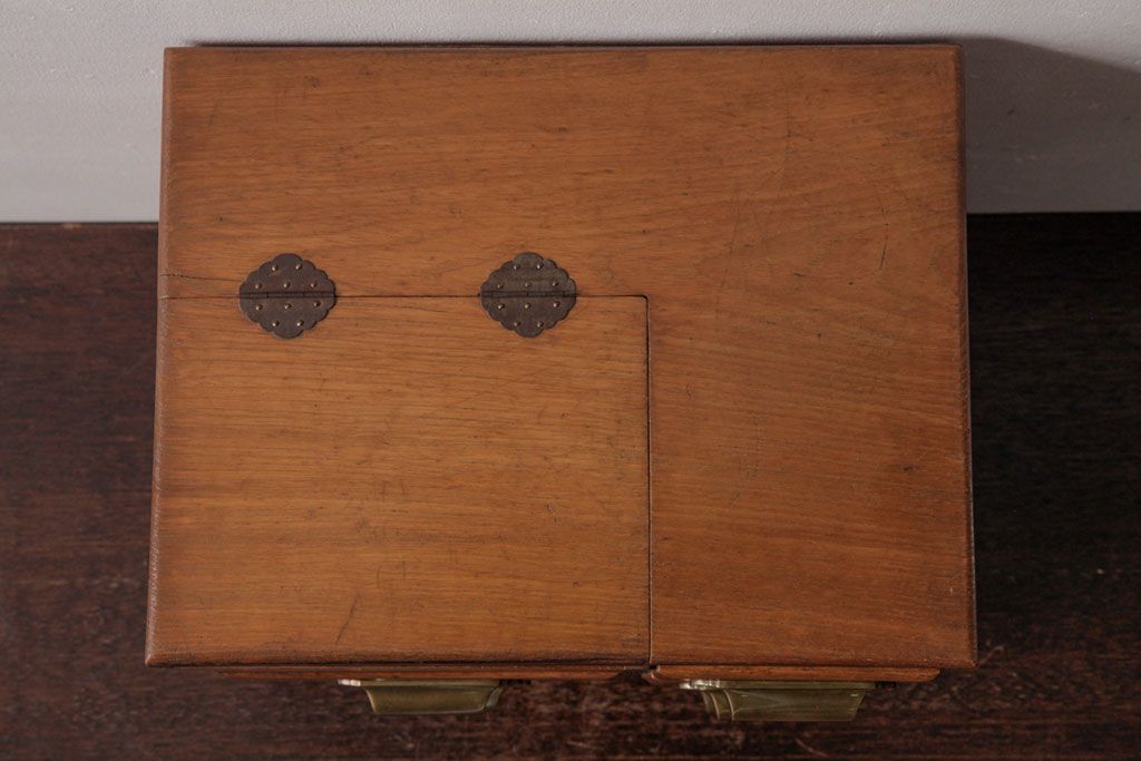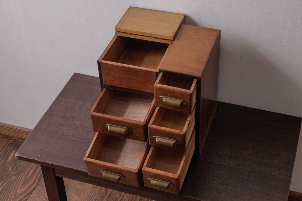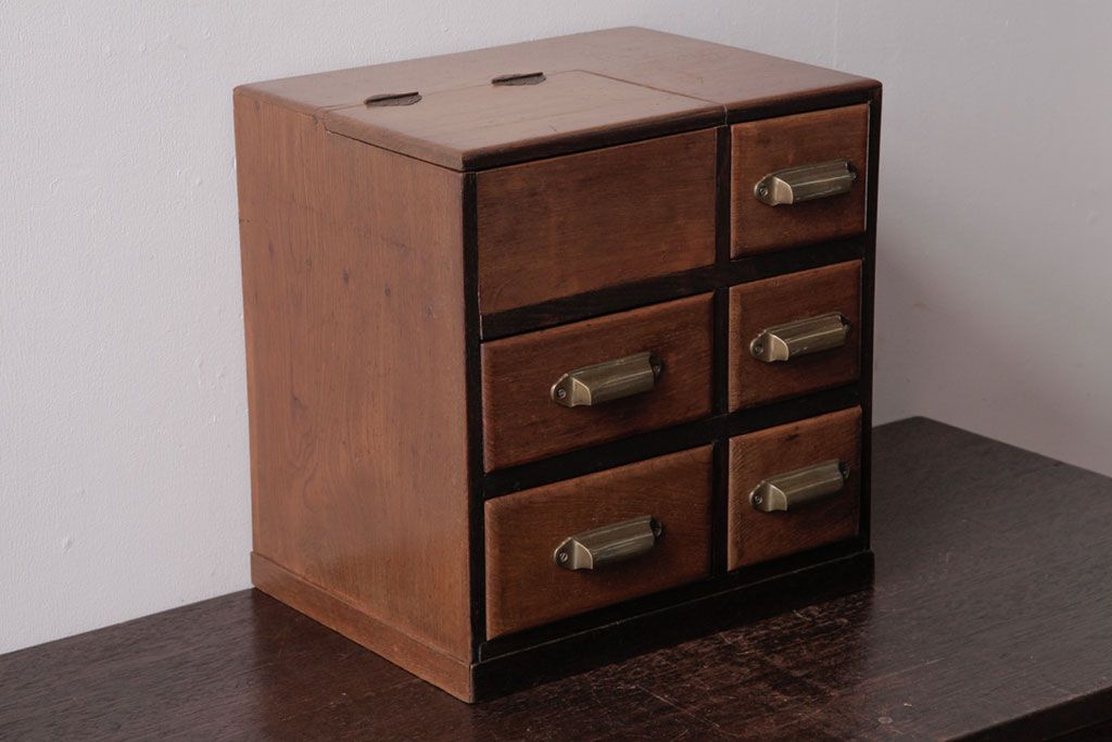 ラフジュ工房> 小物収納・トランク > アンティーク雑貨 昭和レトロ 蓋付き収納部が備わった味わいのある小引き出し(小物収納)