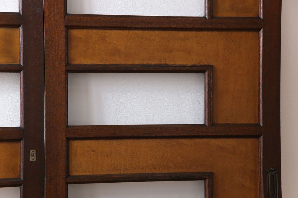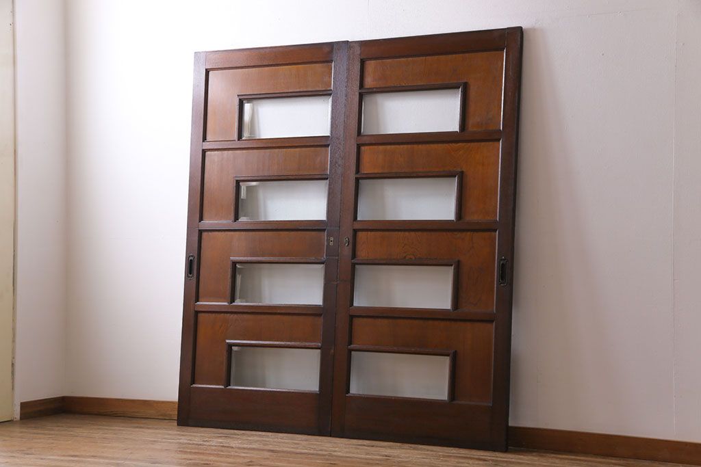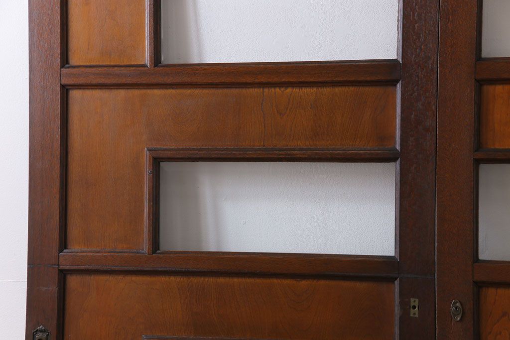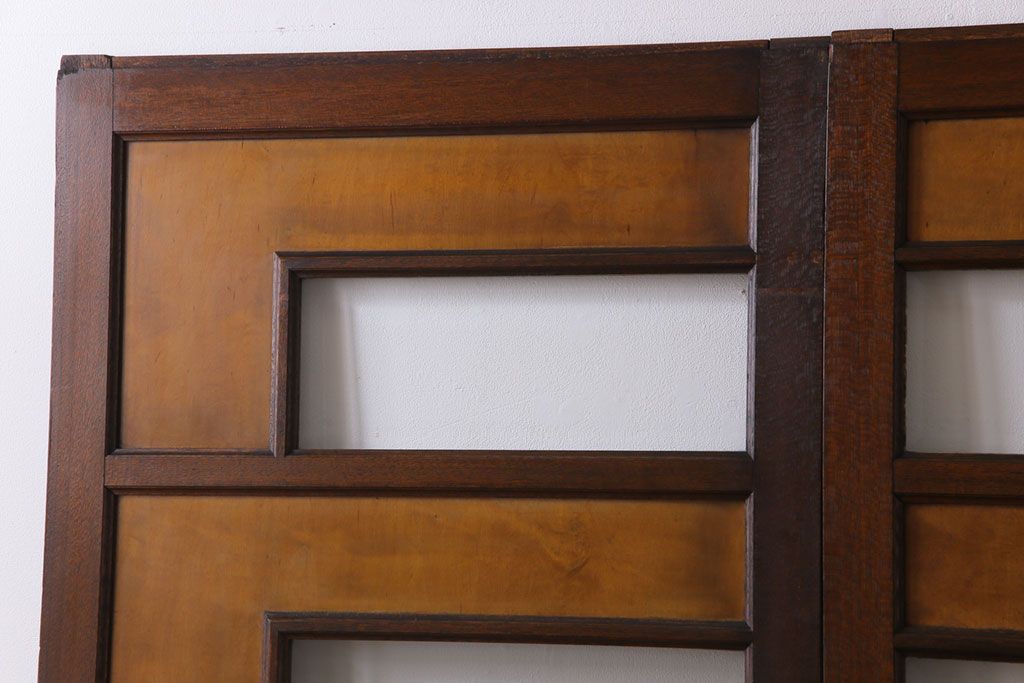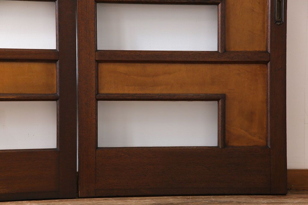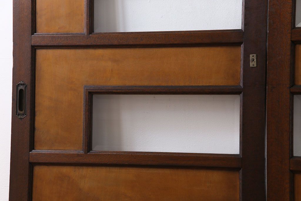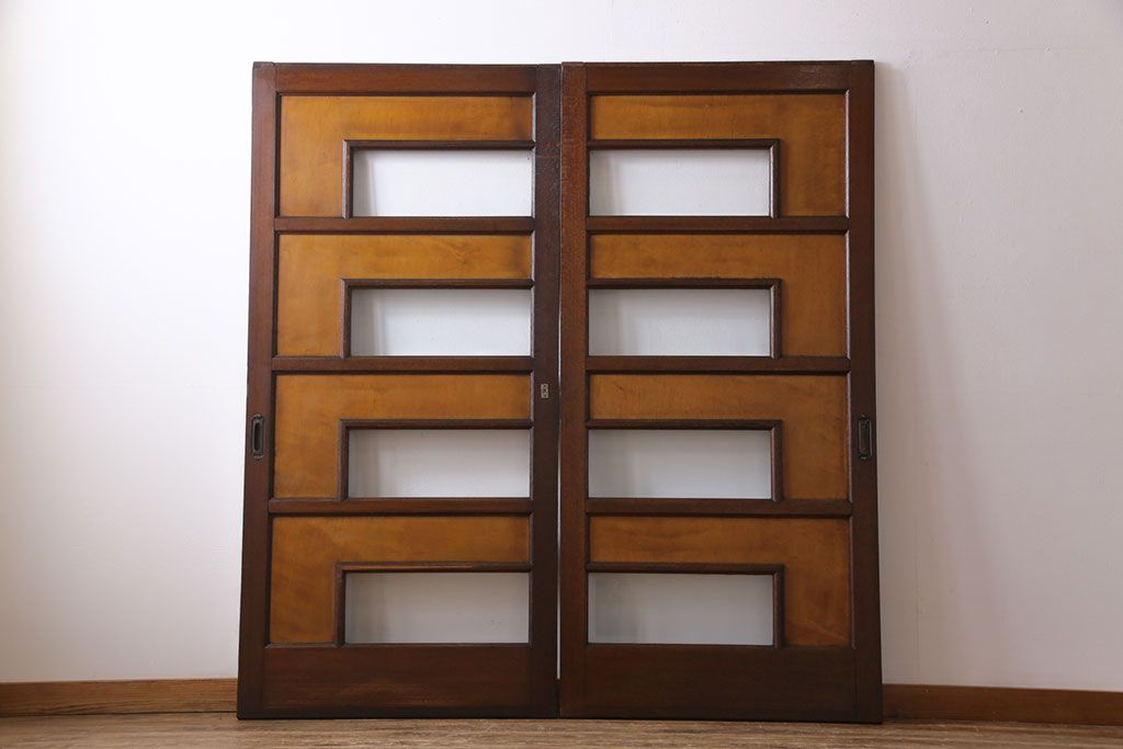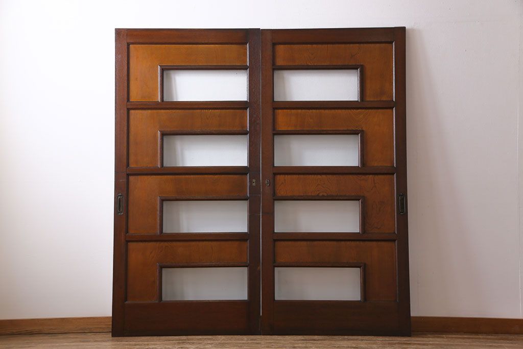 昭和レトロ 太い框と珍しいデザインが目を引く仕切り戸2枚セット(引き戸、建具)