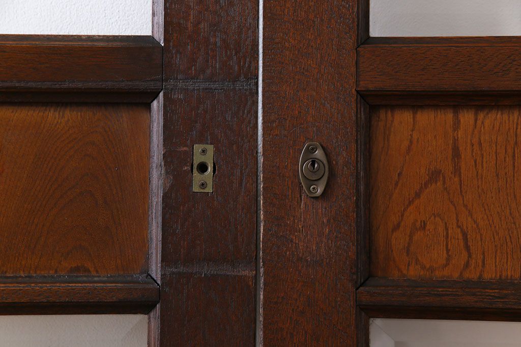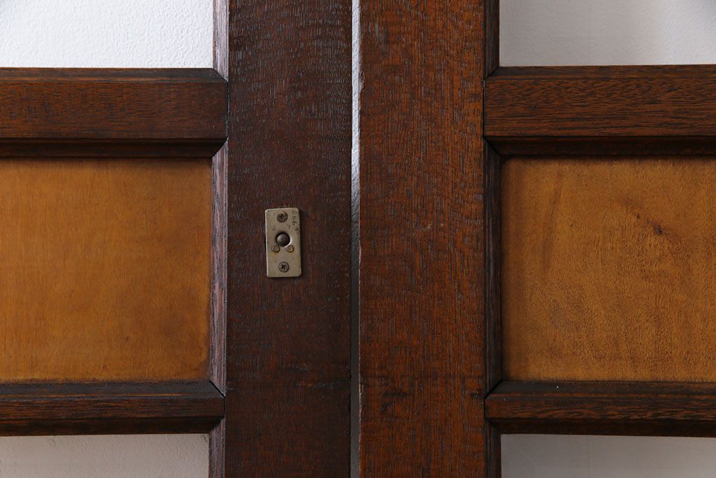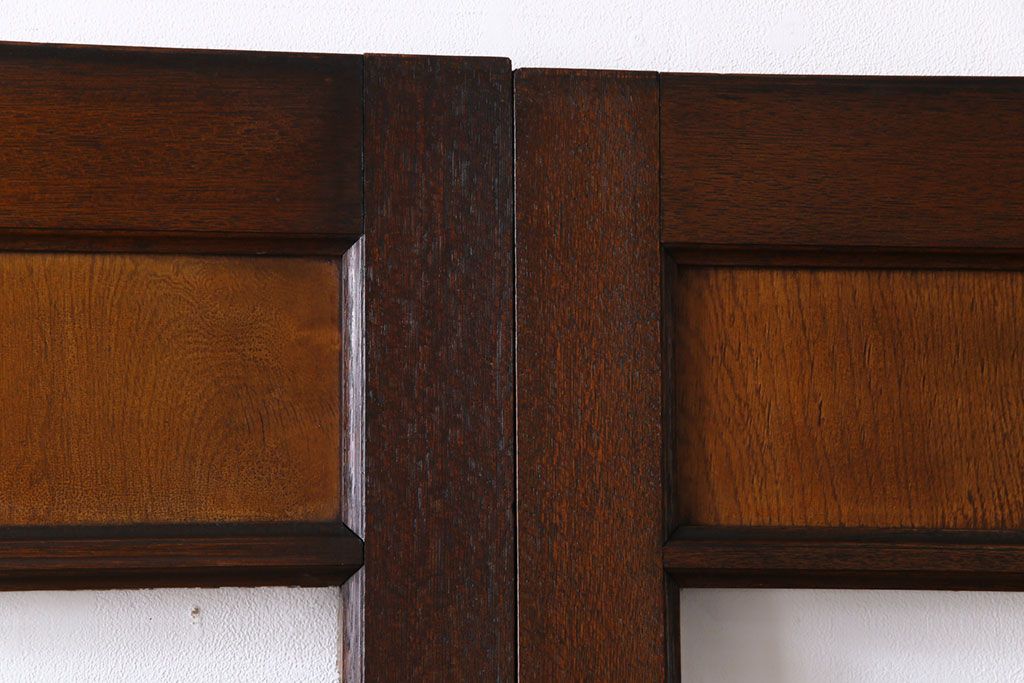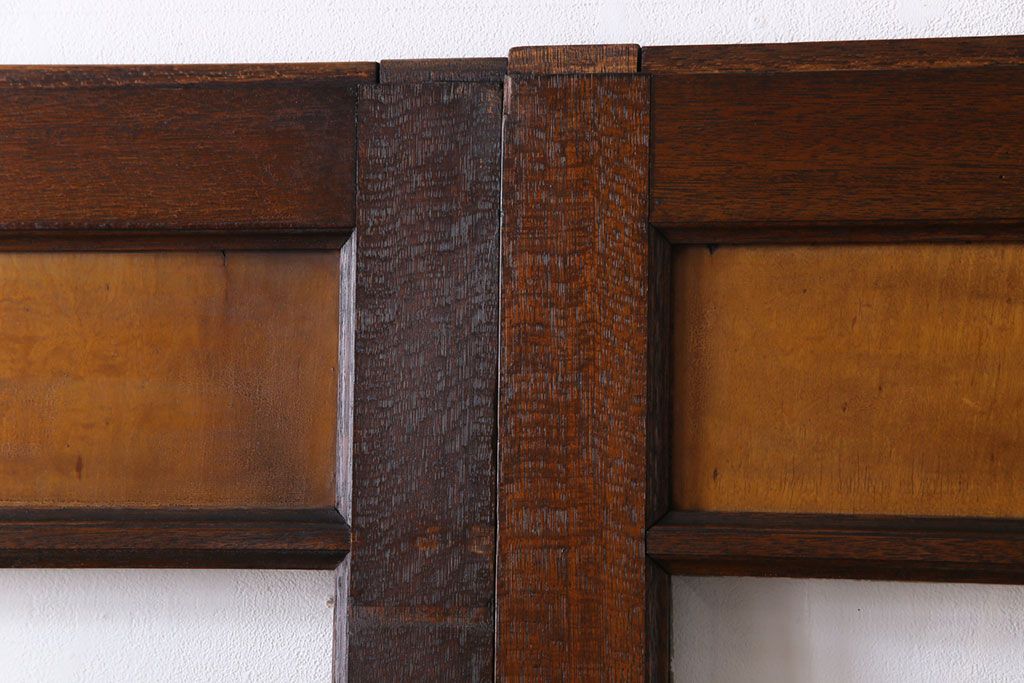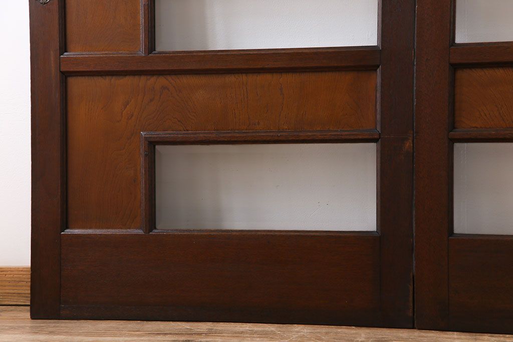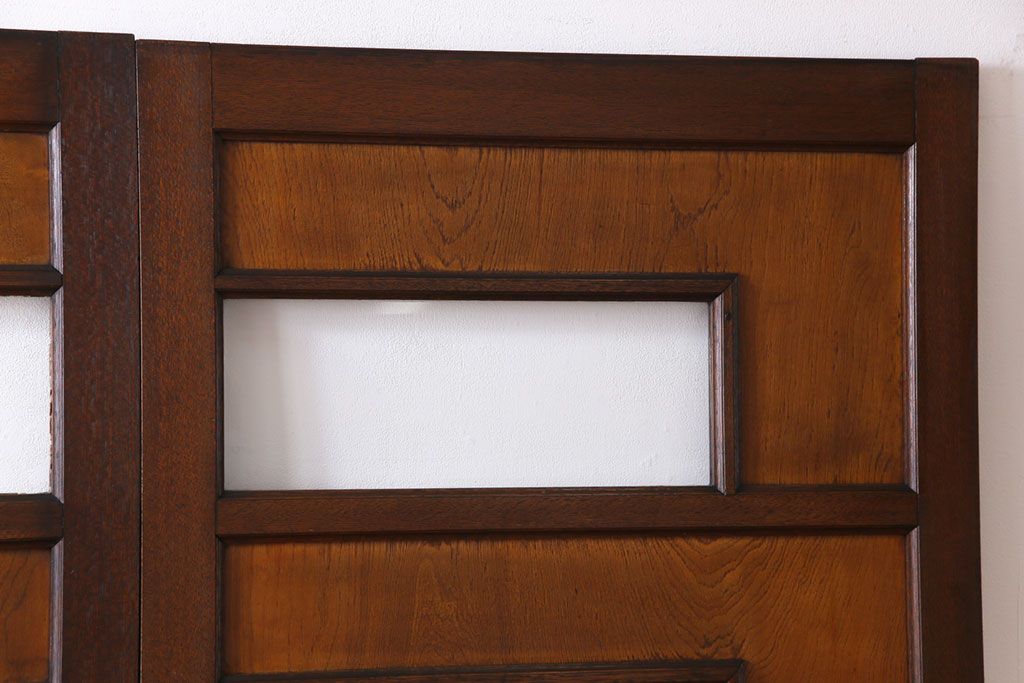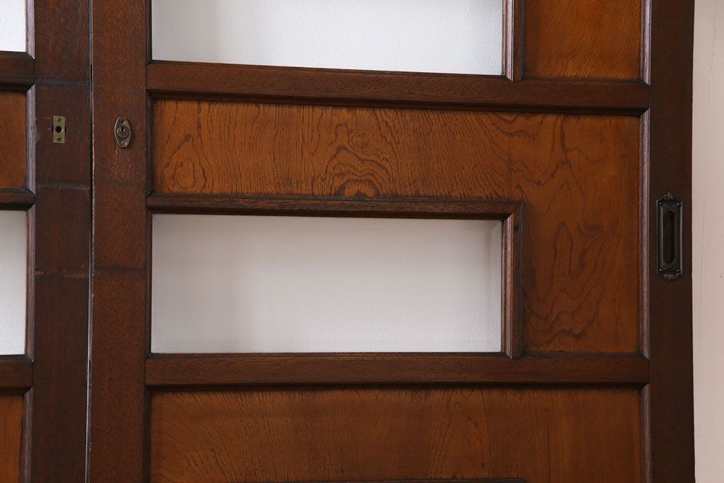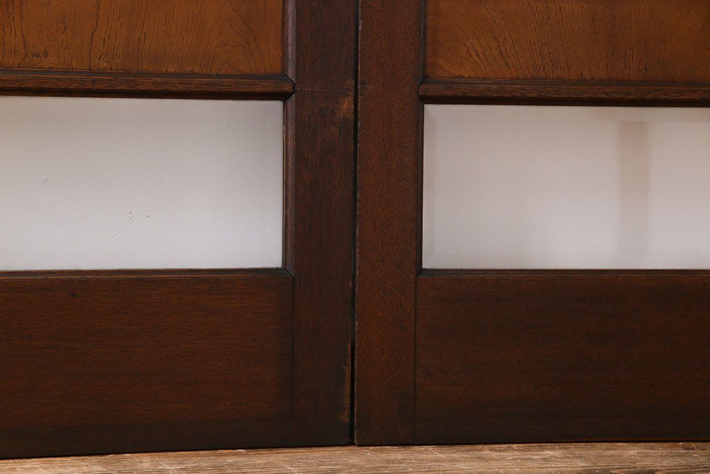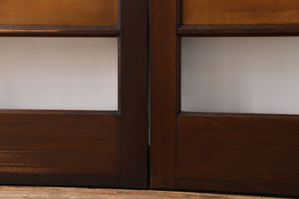 昭和レトロ 太い框と珍しいデザインが目を引く仕切り戸2枚セット(引き戸、建具)