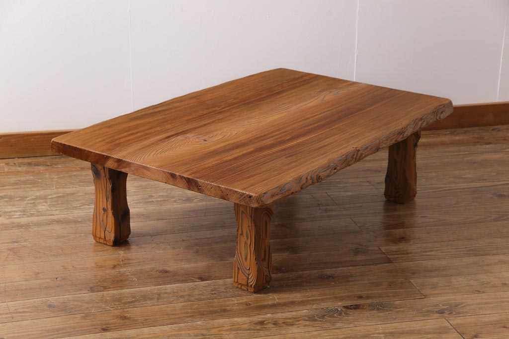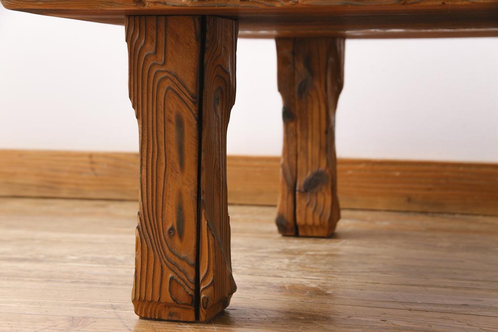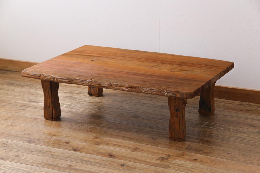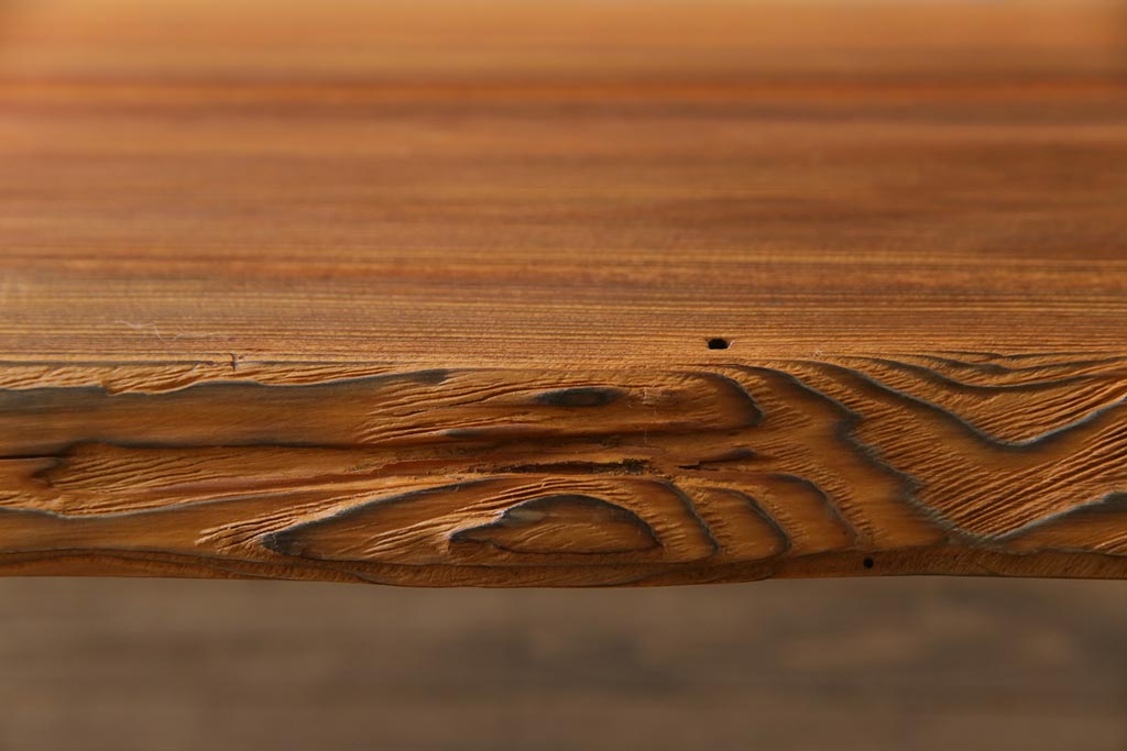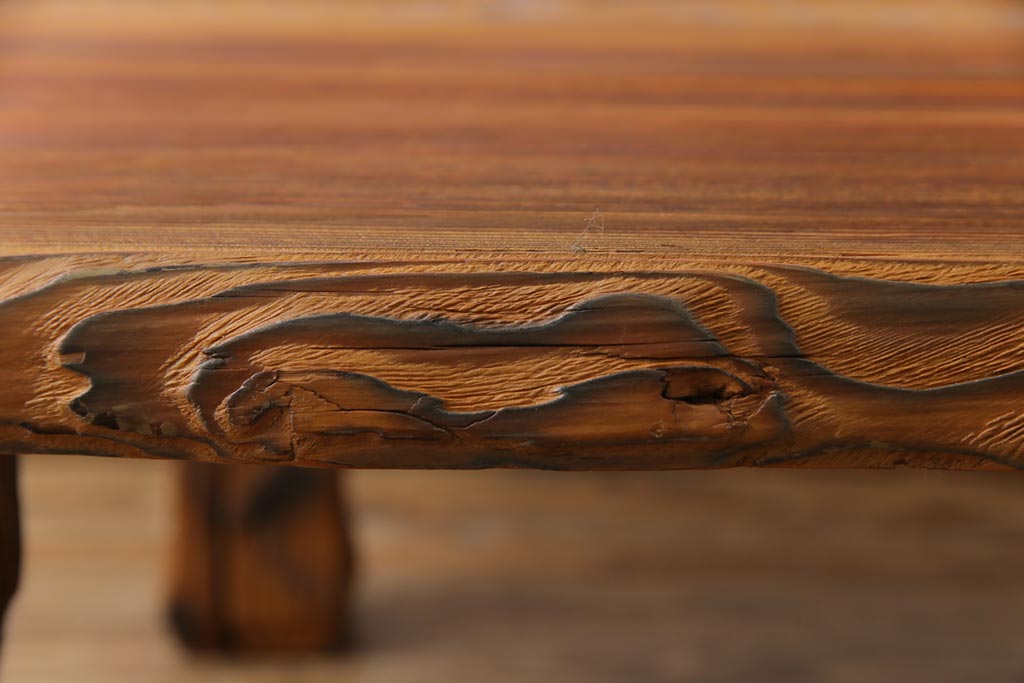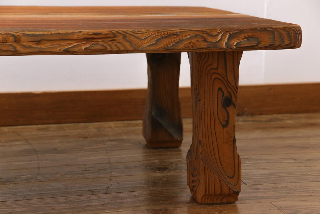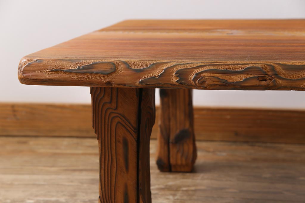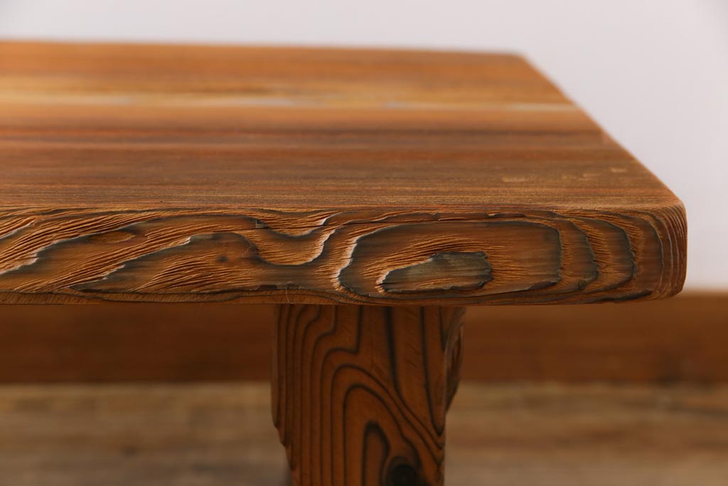 中古 杉材一枚板 木目の美しさを際立たせる浮造り仕上げのローテーブル(座卓、センターテーブル、リビングテーブル)