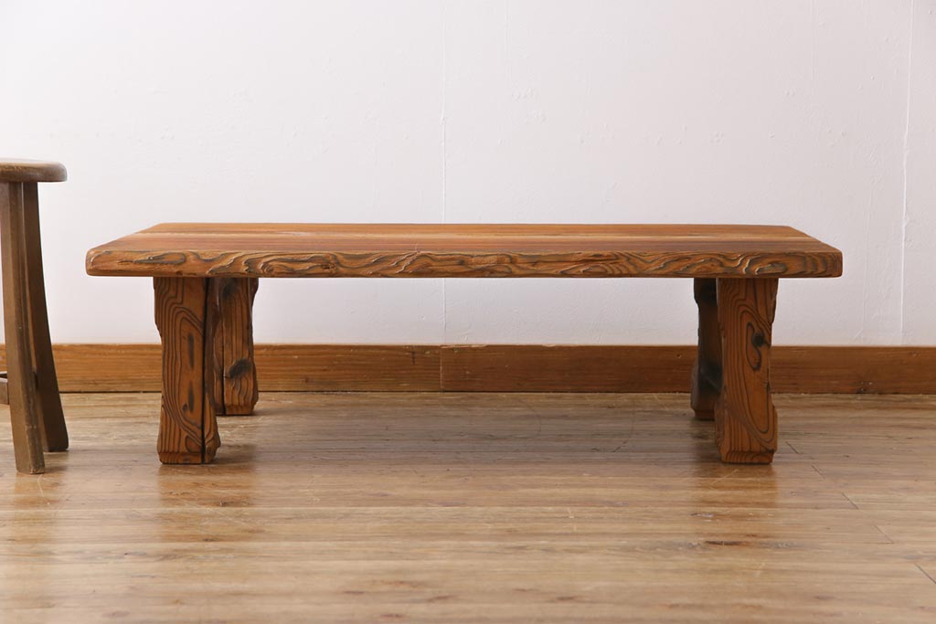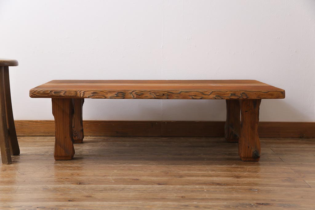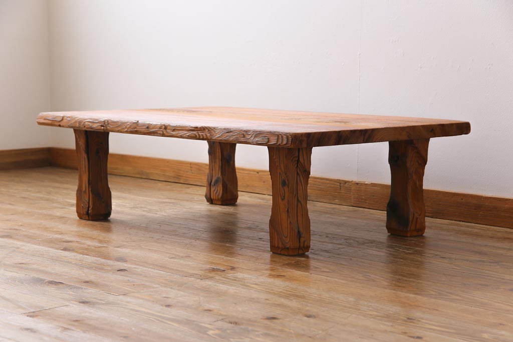 中古 杉材一枚板 木目の美しさを際立たせる浮造り仕上げのローテーブル(座卓、センターテーブル、リビングテーブル)です。
