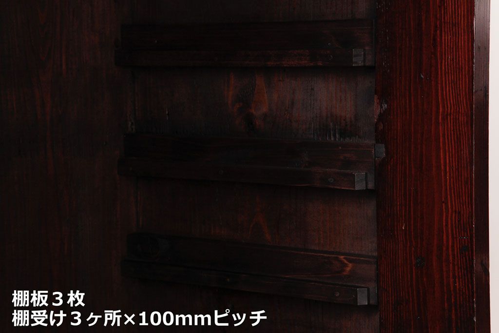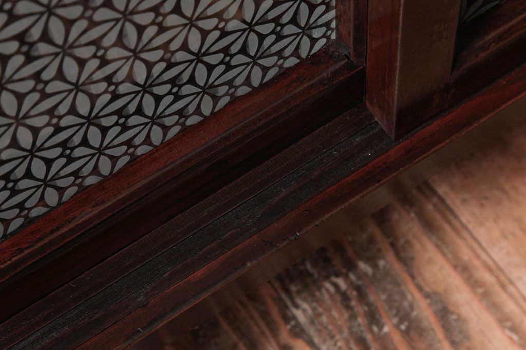 ラフジュ工房> キャビネット・戸棚> 食器棚・カップボード > リメイク家具 オリジナル花ガラス入り 鉄脚付きがおしゃれな小振りな戸棚(収納棚、食器棚)