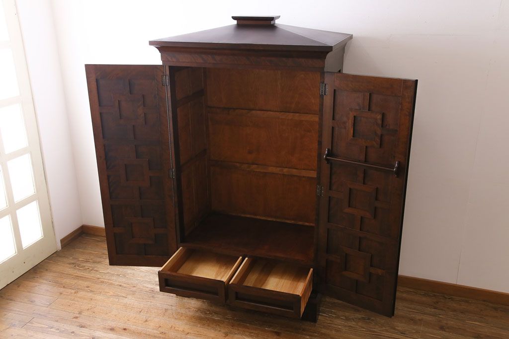 中古美品 松本民芸家具 激レア SI型 オリエンタルな雰囲気漂う洋服ダンス(ワードローブ)(定価約96万円)