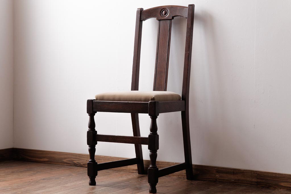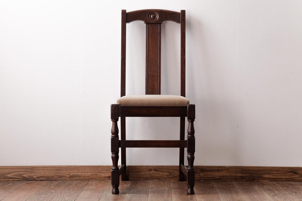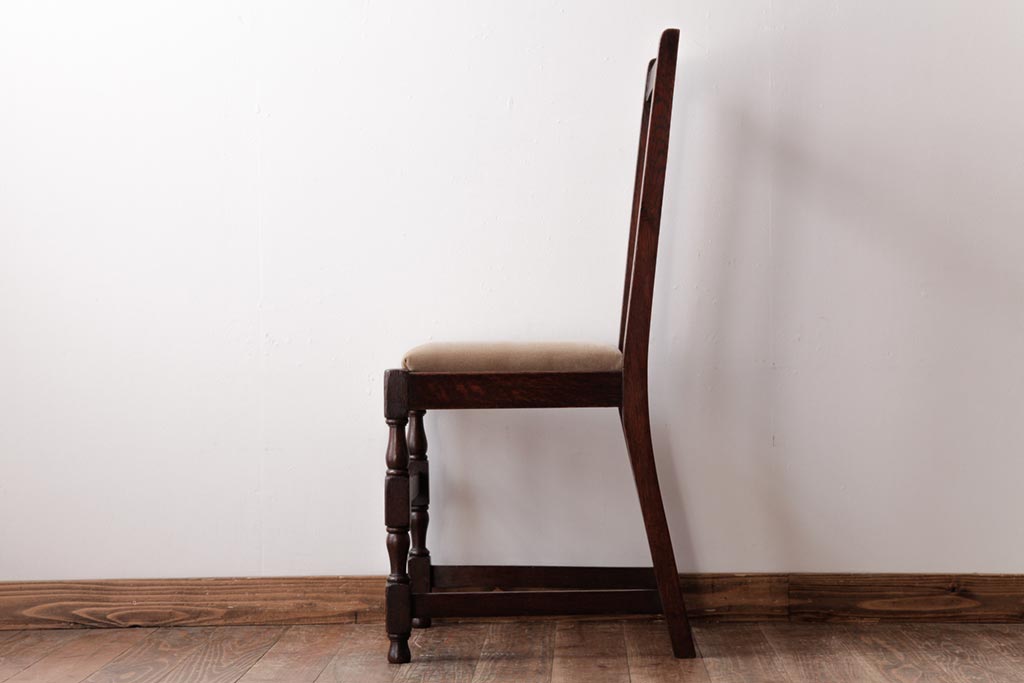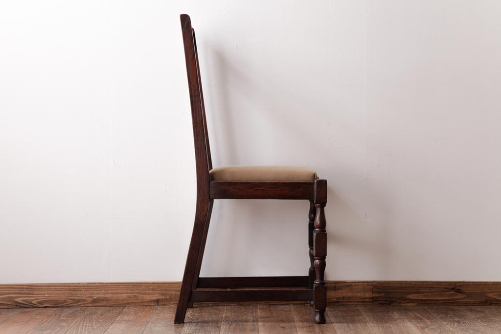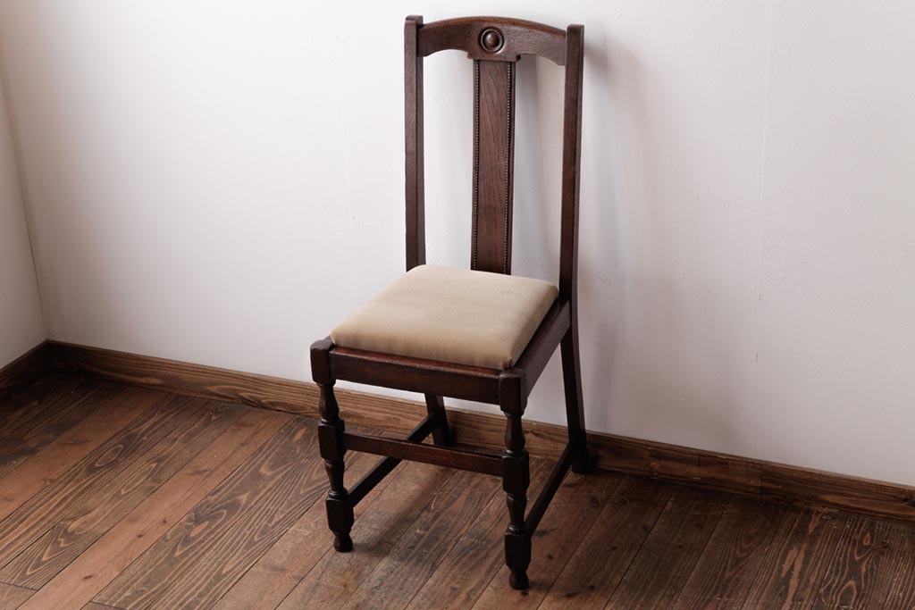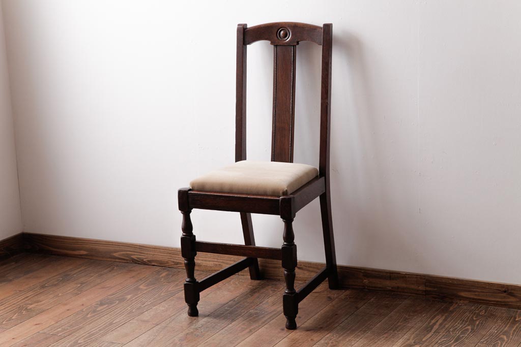アンティーク家具 イギリスアンティーク 控えめな装飾と落ち着いた色味が魅力的なダイニングチェア(ワークチェア、椅子)