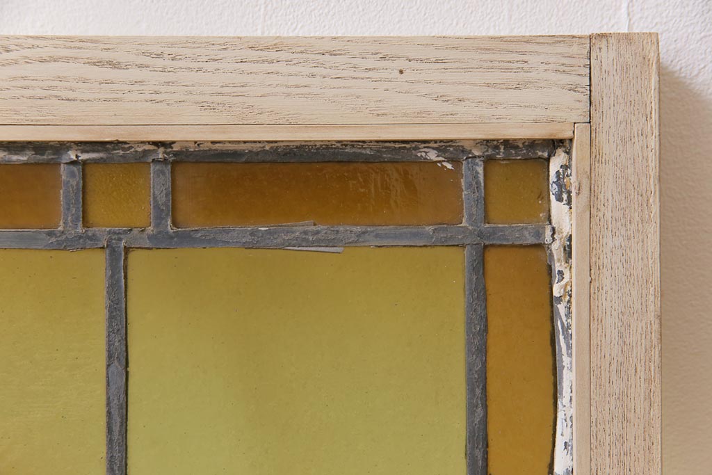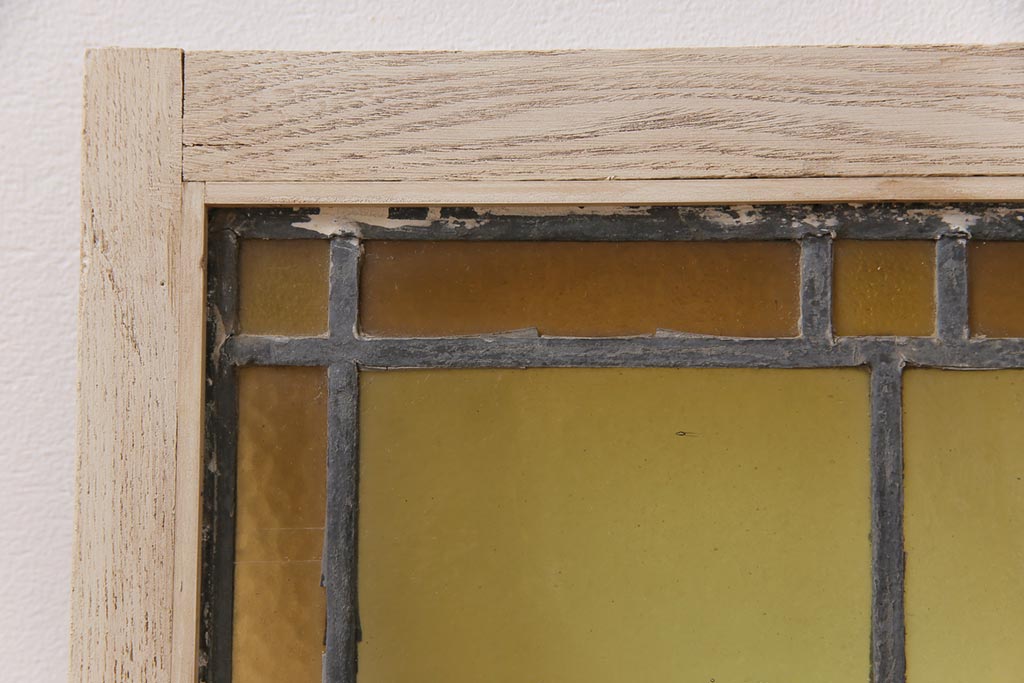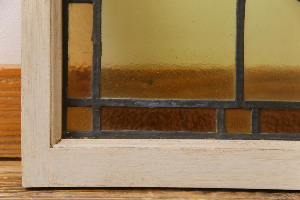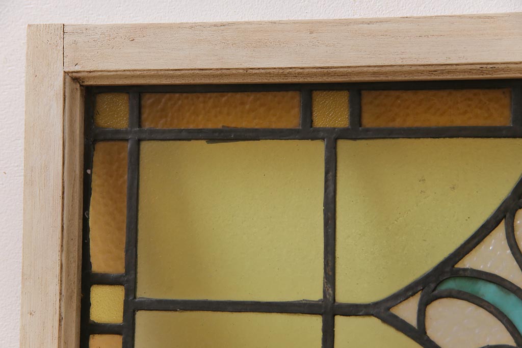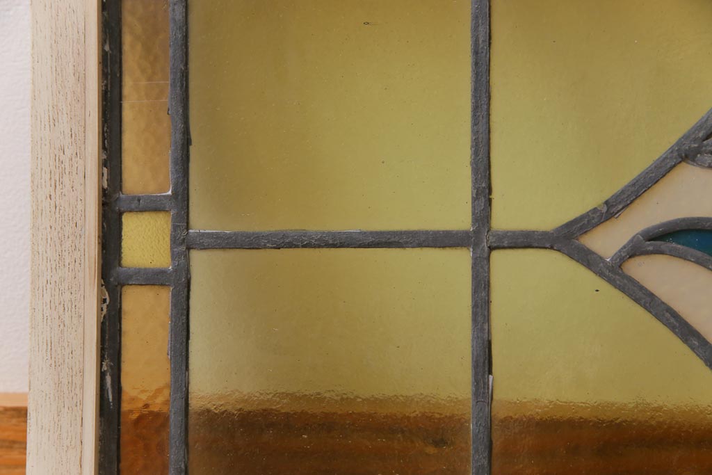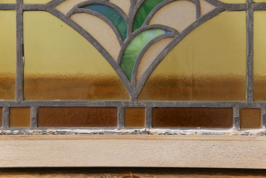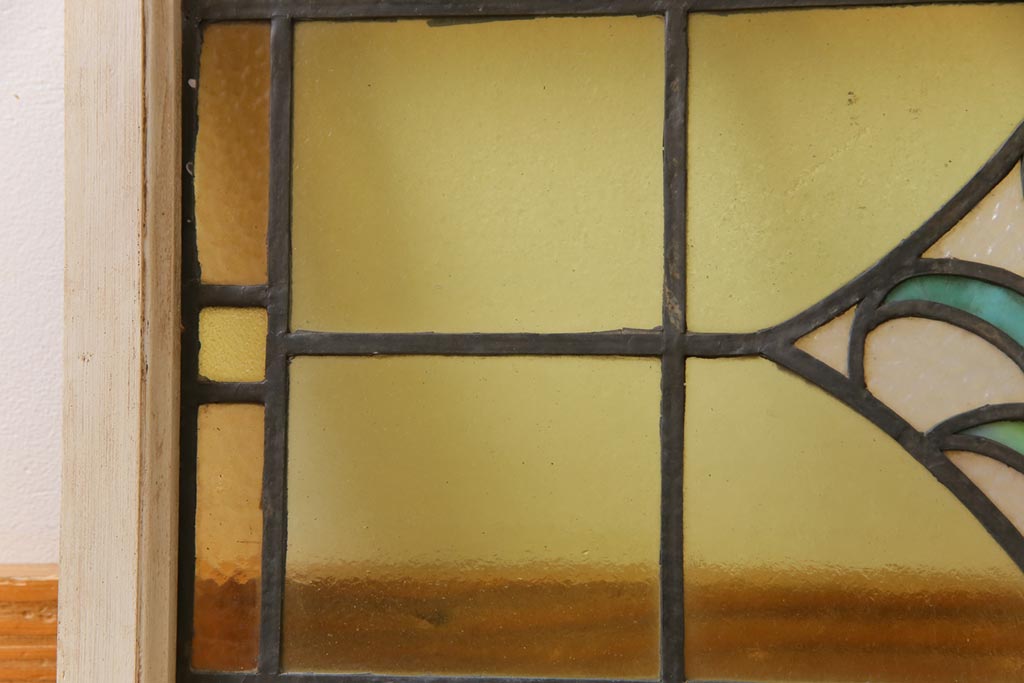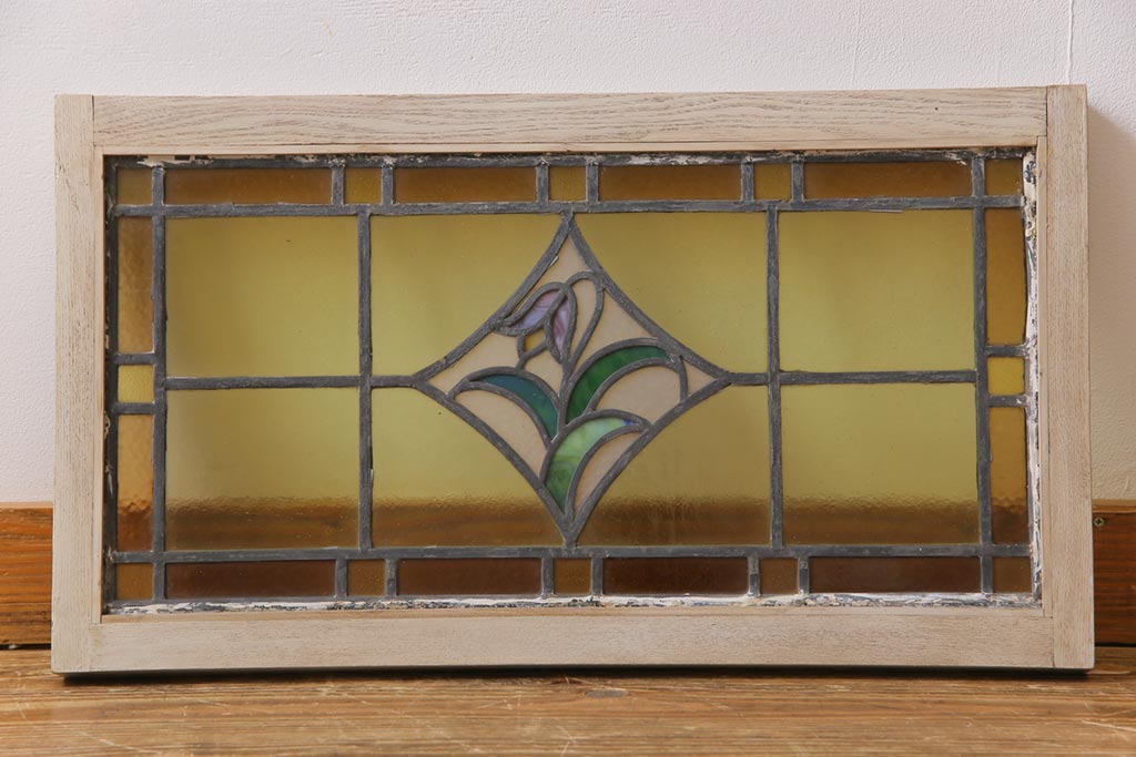 アンティーク雑貨 和製アンティーク 花のアクセントがかわいらしいステンドグラス(フィックス窓、明り取り、はめ殺し)(1)