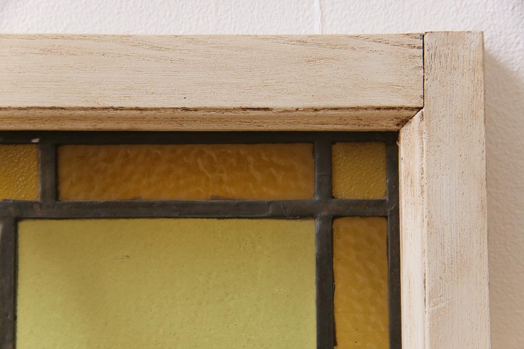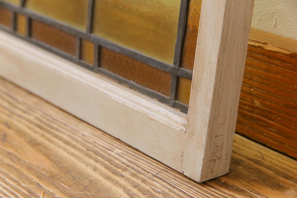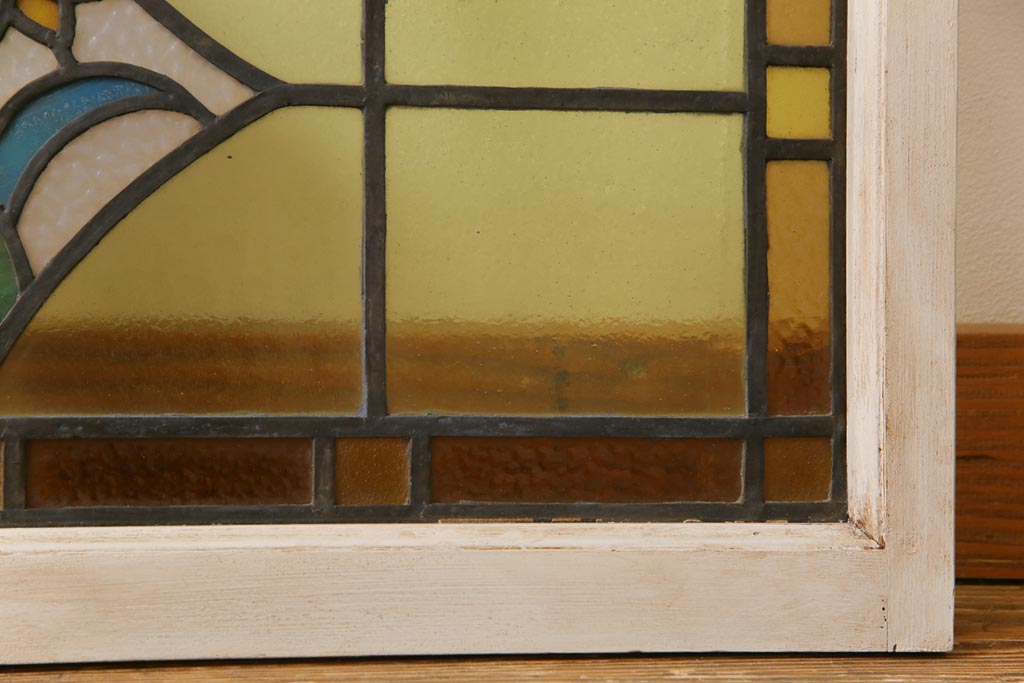 ラフジュ工房> ドア・建具> 明り取り・欄間 > アンティーク雑貨 和製アンティーク 花のアクセントがかわいらしいステンドグラス(フィックス窓、明り取り、はめ殺し)(1)