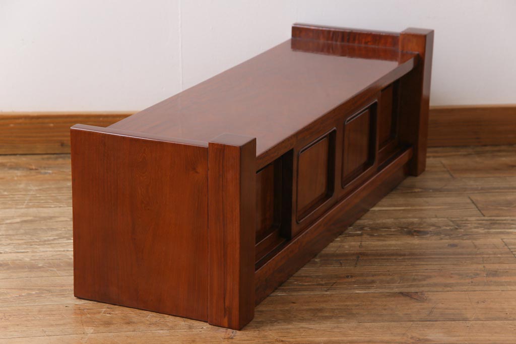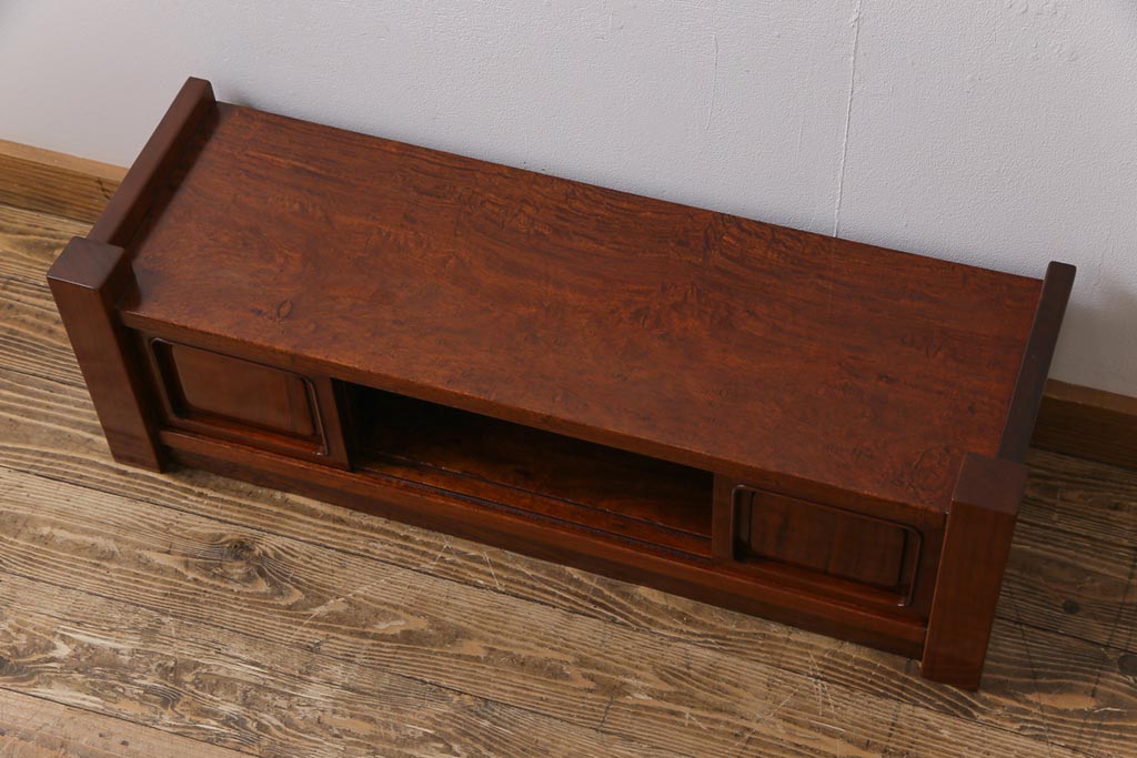 ビンテージ カリン材無垢材 小振りながら重厚感のある置き床(ローボード、戸棚)です。