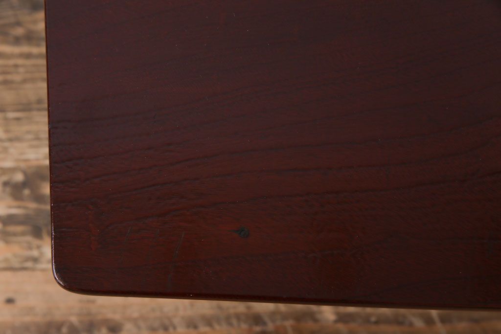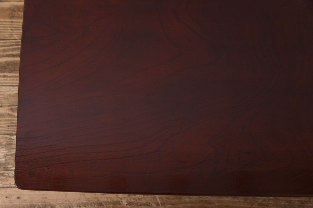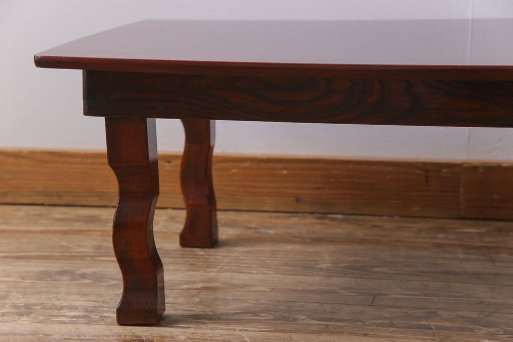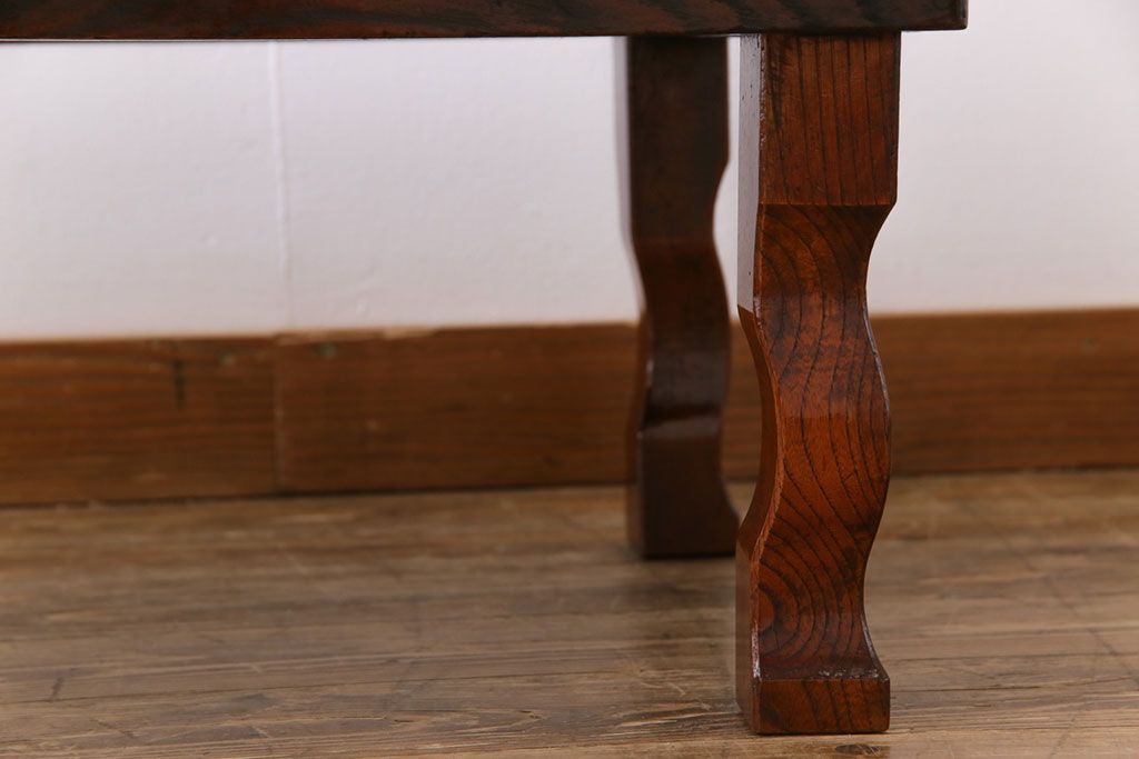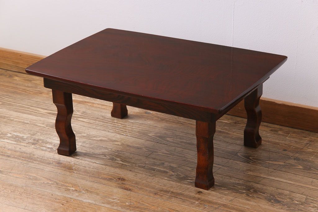 ラフジュ工房> テーブル> 座卓 > アンティーク家具 和製アンティーク 総ケヤキ一枚板 漆塗り 曲線を帯びた脚が目を引く角ちゃぶ台(ローテーブル、花台)
