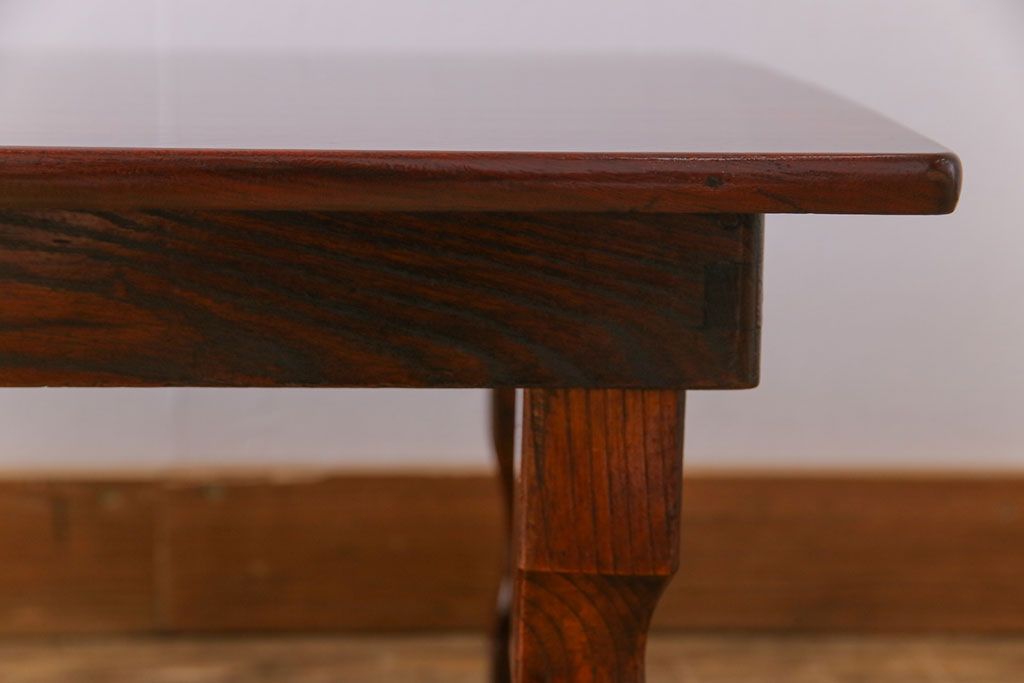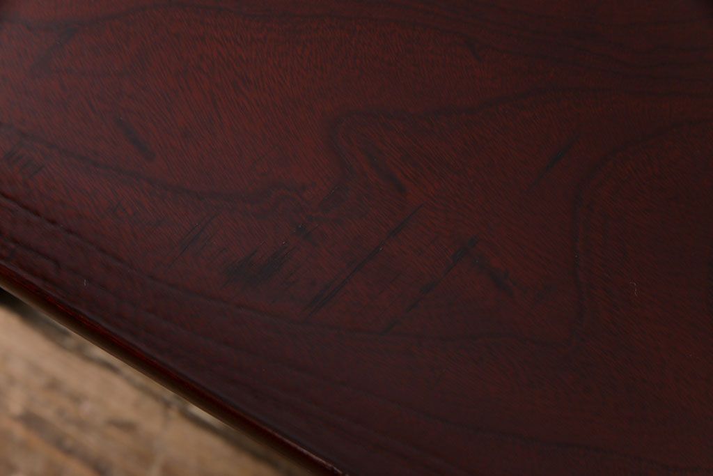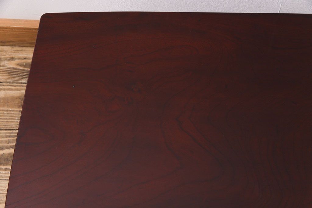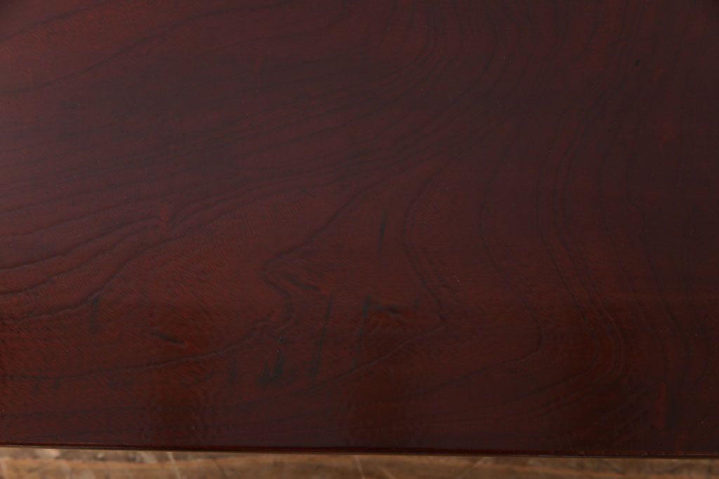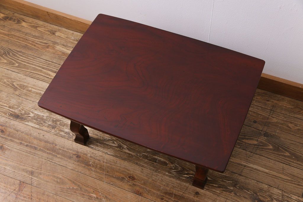 ラフジュ工房> テーブル> 座卓 > アンティーク家具 和製アンティーク 総ケヤキ一枚板 漆塗り 曲線を帯びた脚が目を引く角ちゃぶ台(ローテーブル、花台)