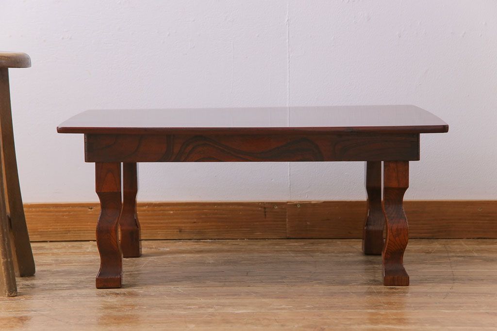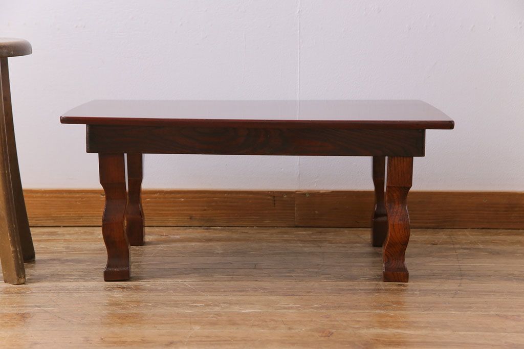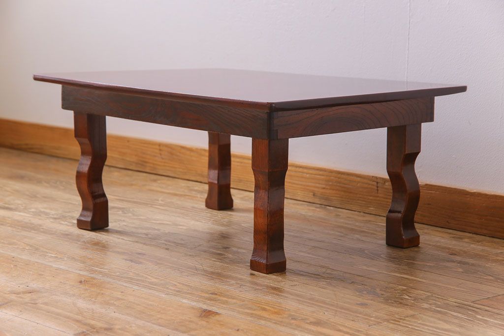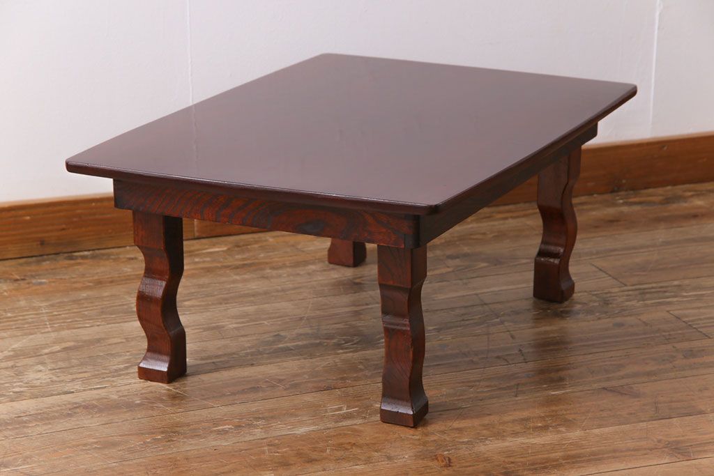 ラフジュ工房> テーブル> ちゃぶ台 > アンティーク家具 和製アンティーク 総ケヤキ一枚板 漆塗り 曲線を帯びた脚が目を引く角ちゃぶ台(ローテーブル、花台)