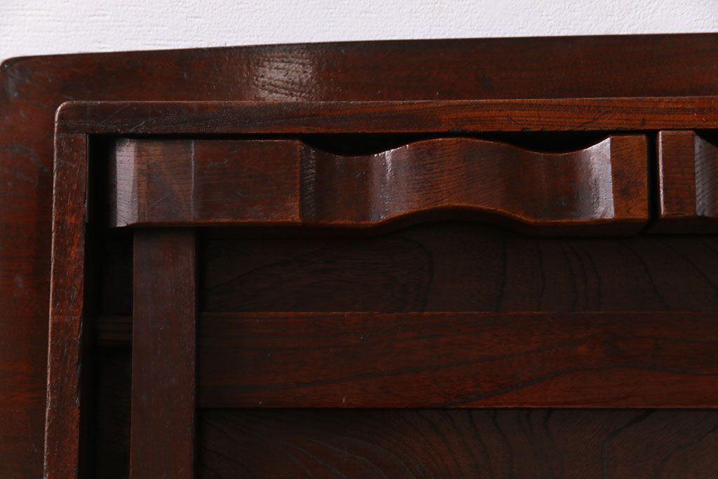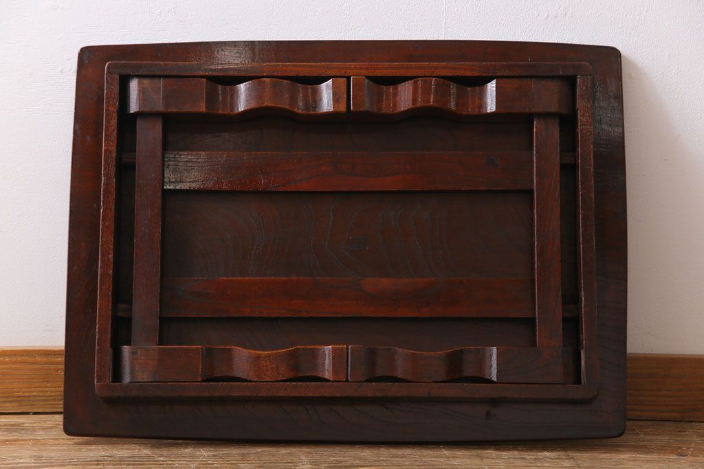 ラフジュ工房> テーブル> おりたたみテーブル > アンティーク家具 和製アンティーク 総ケヤキ一枚板 漆塗り 曲線を帯びた脚が目を引く角ちゃぶ台(ローテーブル、花台)