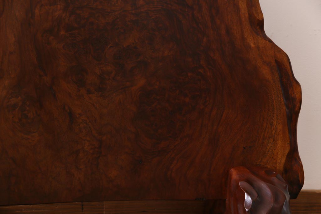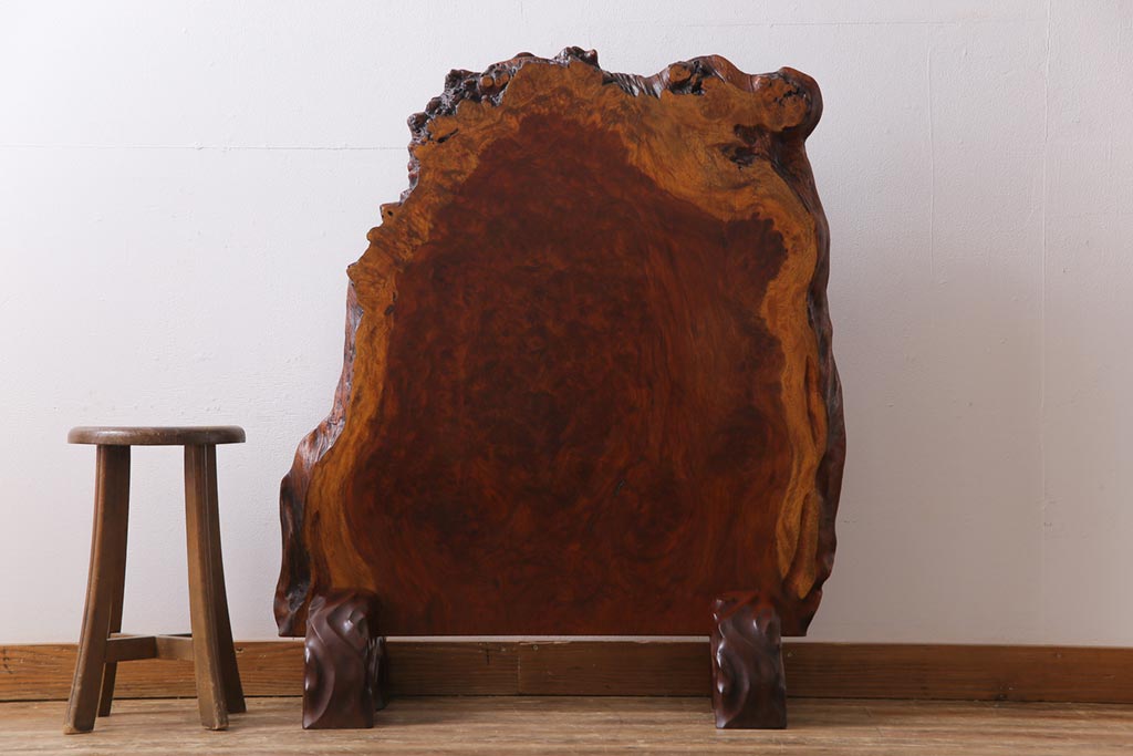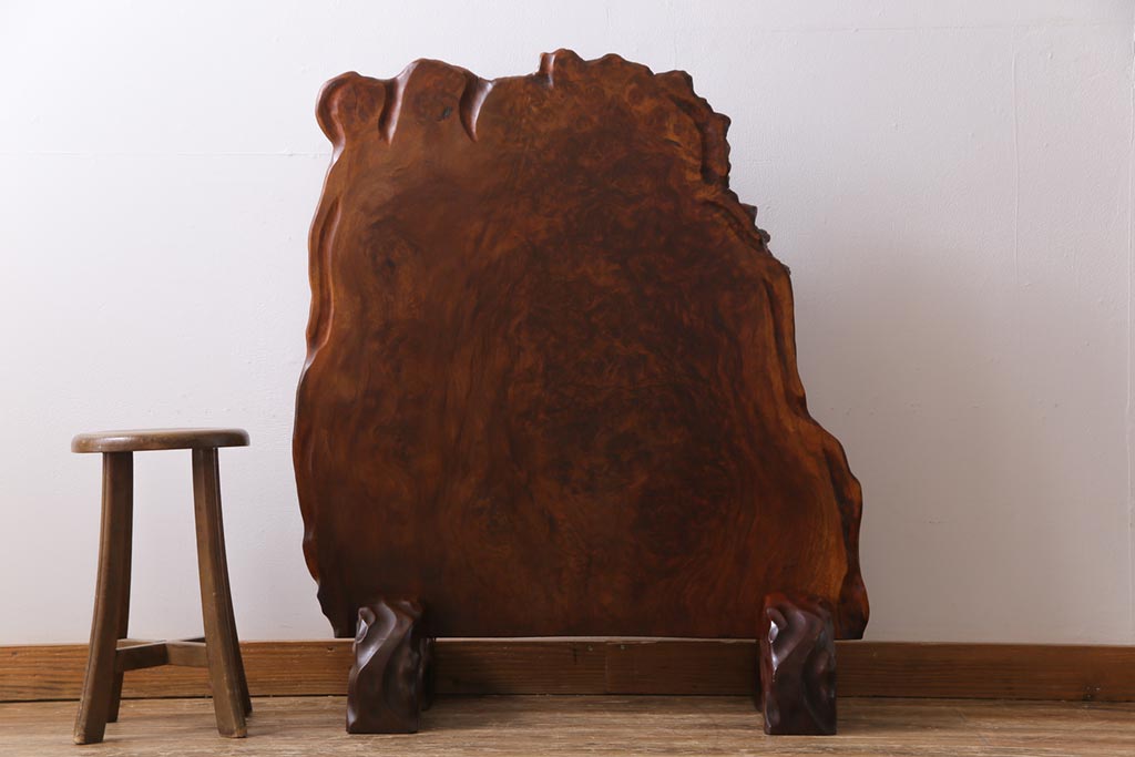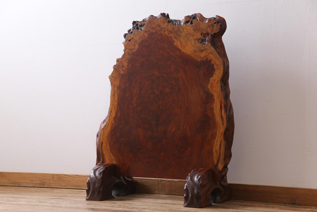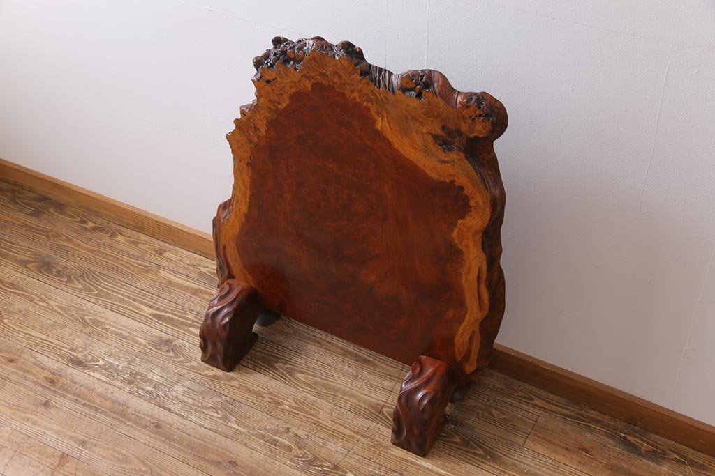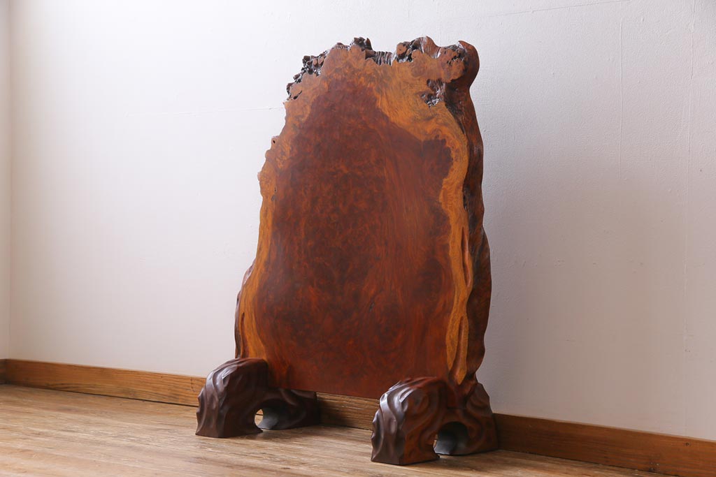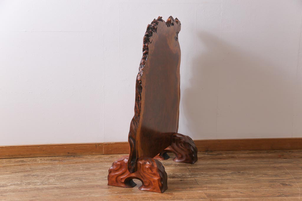 ラフジュ工房> 衝立・パーテーション> スタンド式衝立 > ビンテージ民芸家具 カリン材鳥眼杢 素材を活かした存在感のある衝立(仕切り、花梨材)