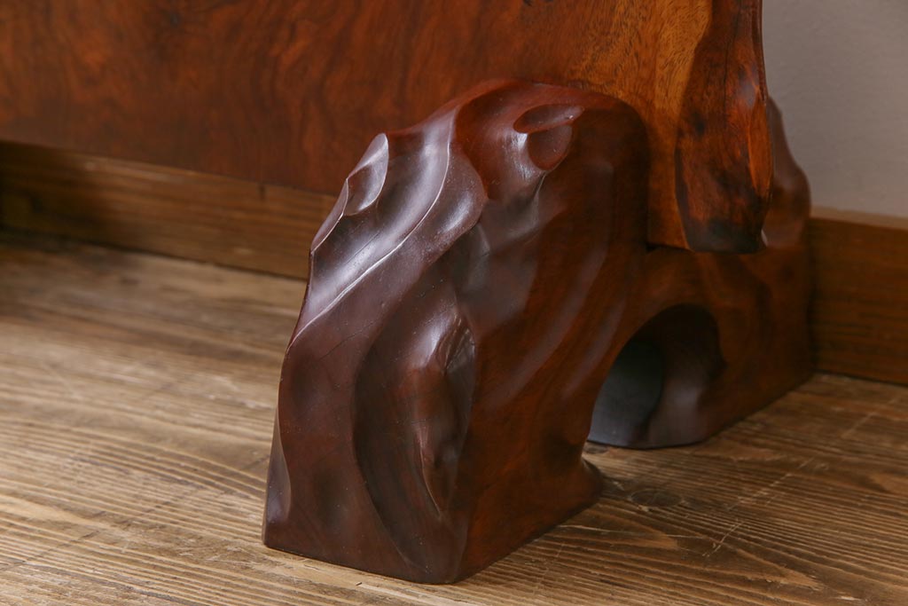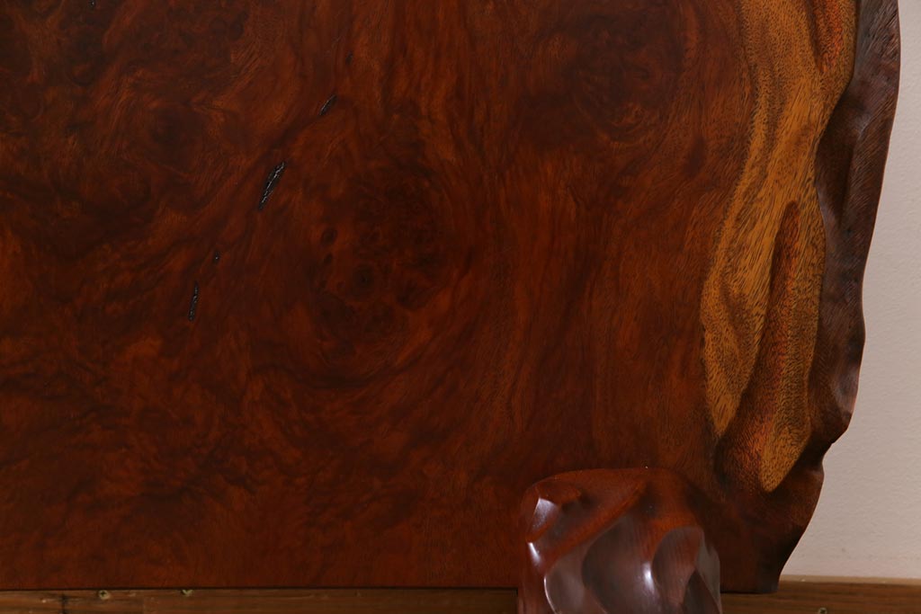 ビンテージ民芸家具 カリン材鳥眼杢 素材を活かした存在感のある衝立(仕切り、花梨材)