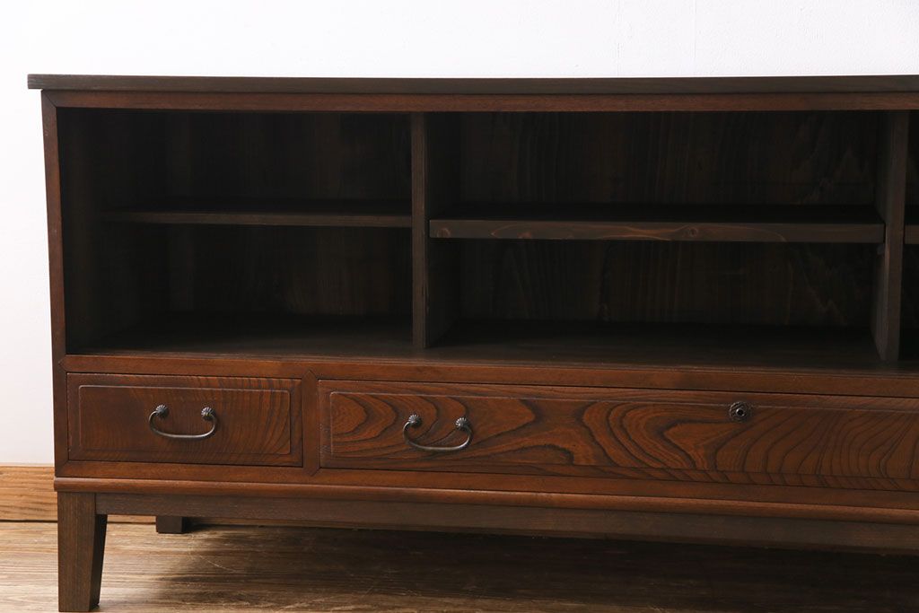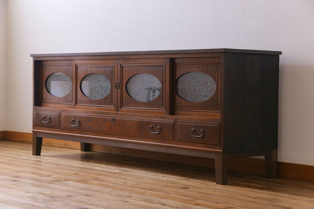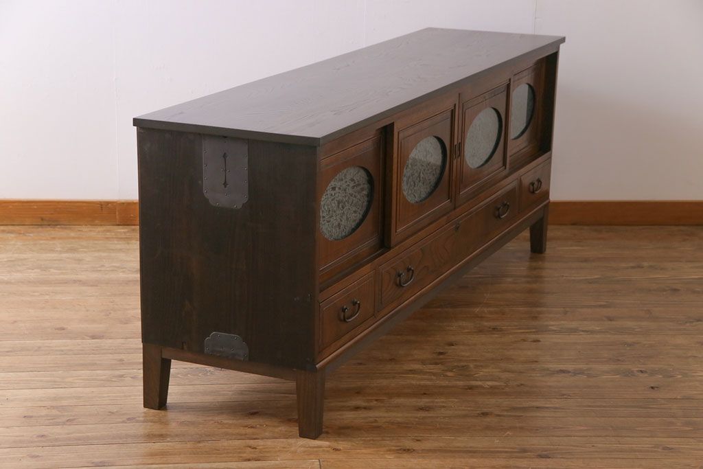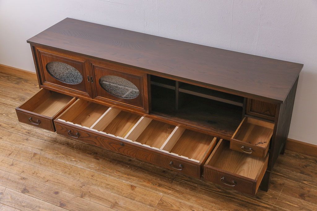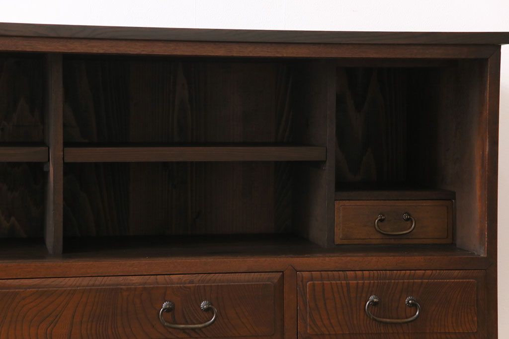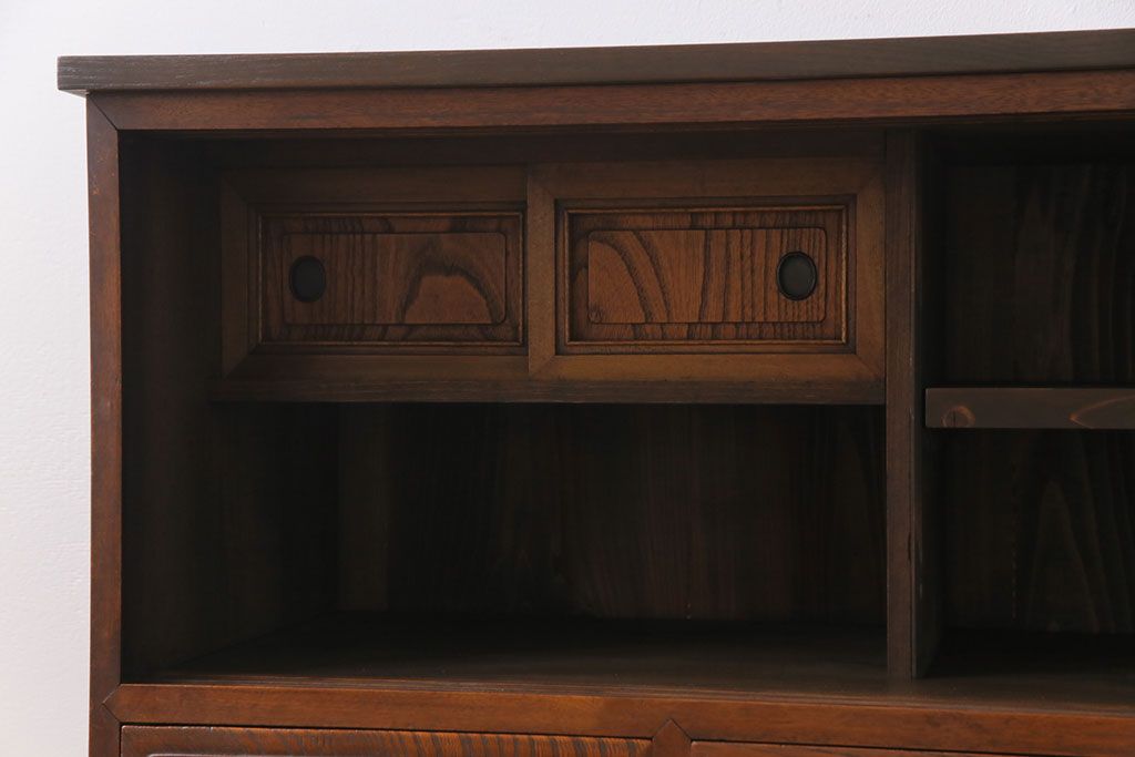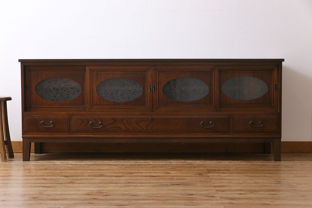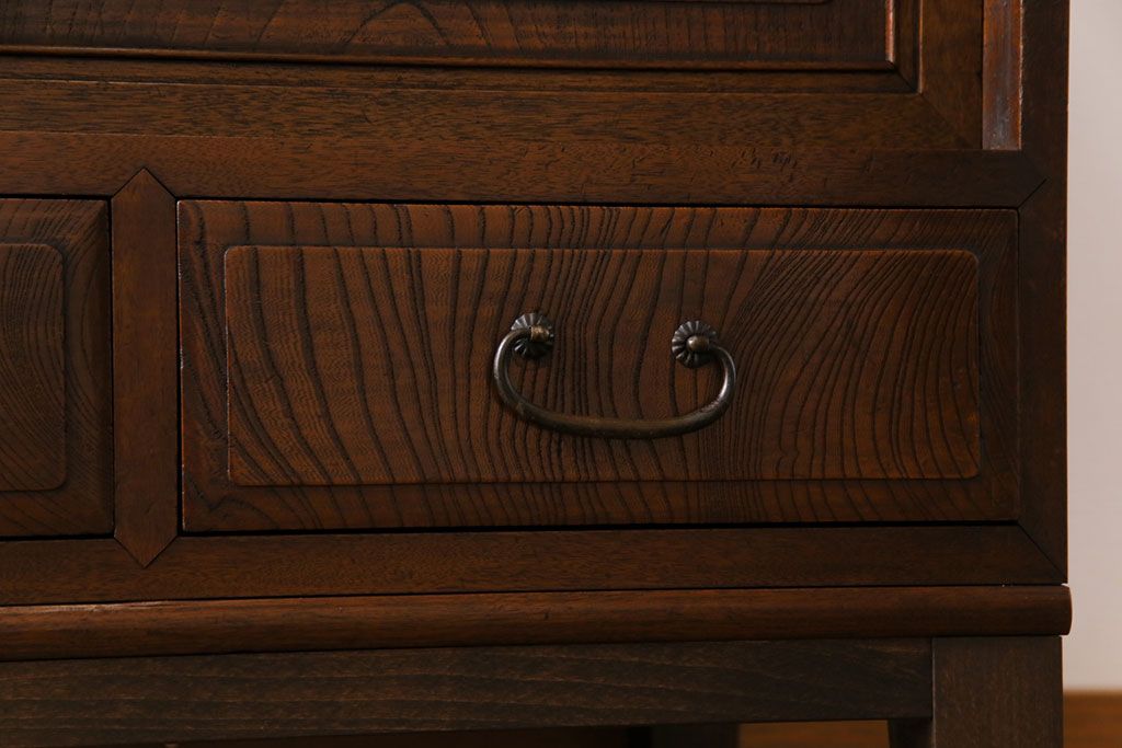 ラフジュ工房> キャビネット・戸棚> テレビ台・ローボード > アンティーク家具 和製アンティーク ケヤキの杢目が美しい上手物の脚付きローボード(ローチェスト、リビングボード)