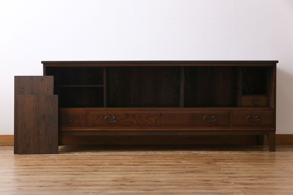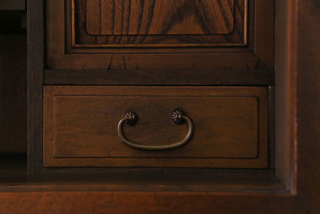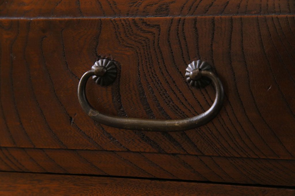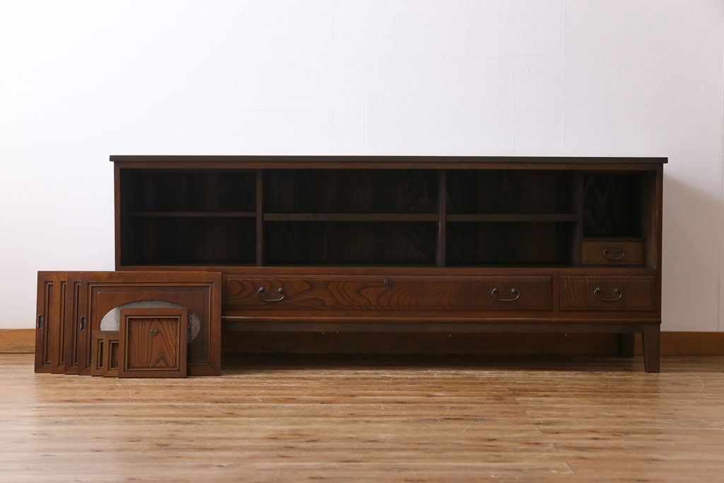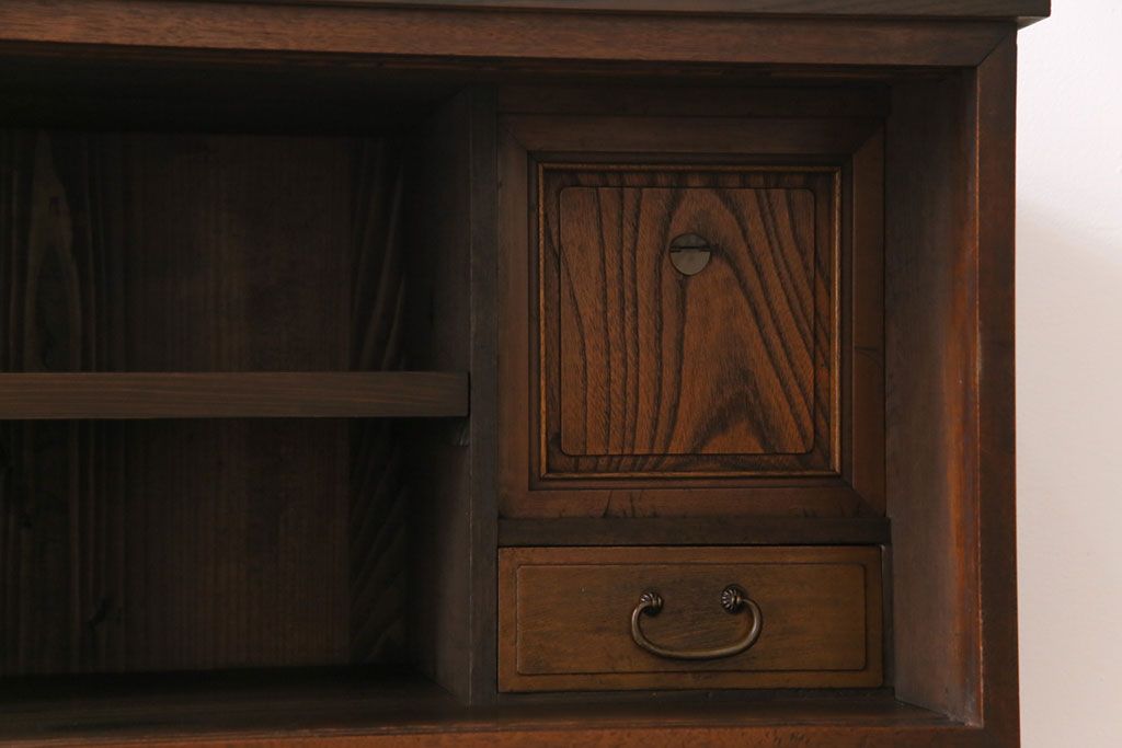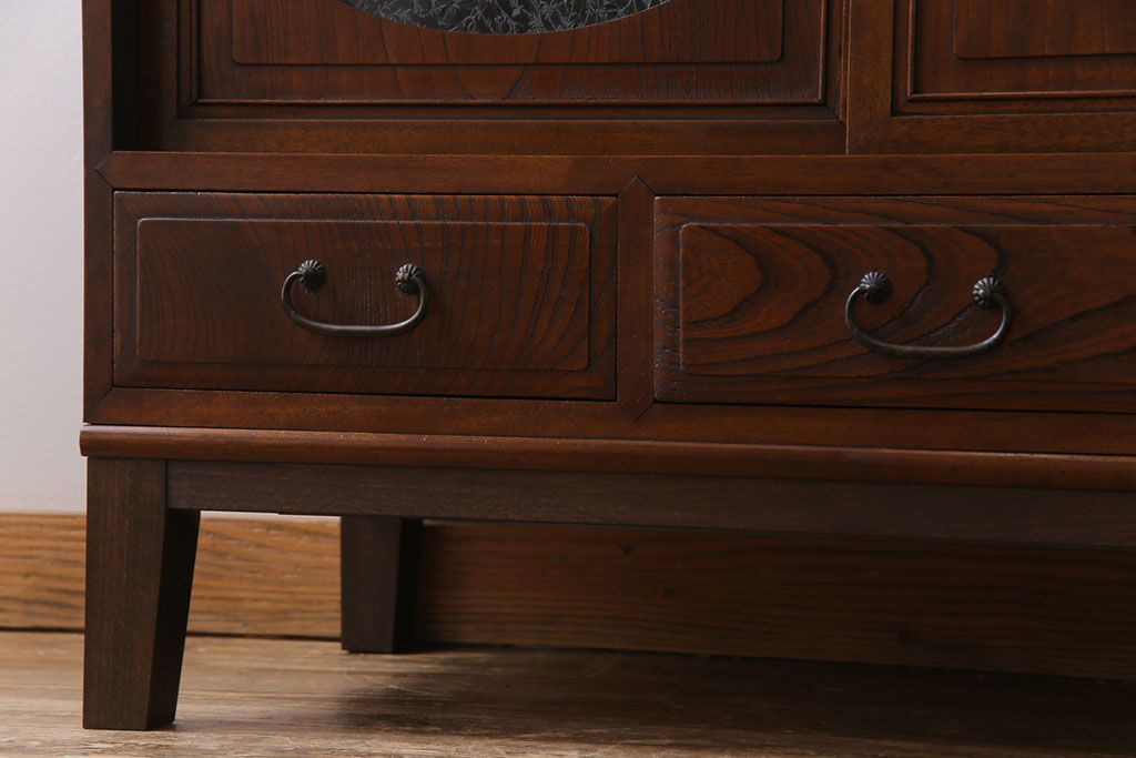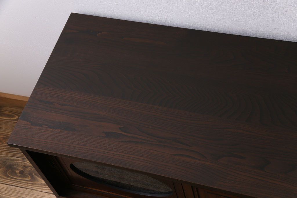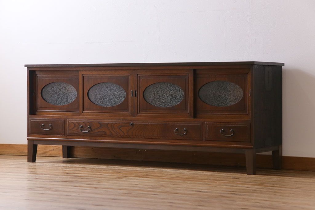 ラフジュ工房> キャビネット・戸棚> テレビ台・ローボード > アンティーク家具 和製アンティーク ケヤキの杢目が美しい上手物の脚付きローボード(ローチェスト、リビングボード)