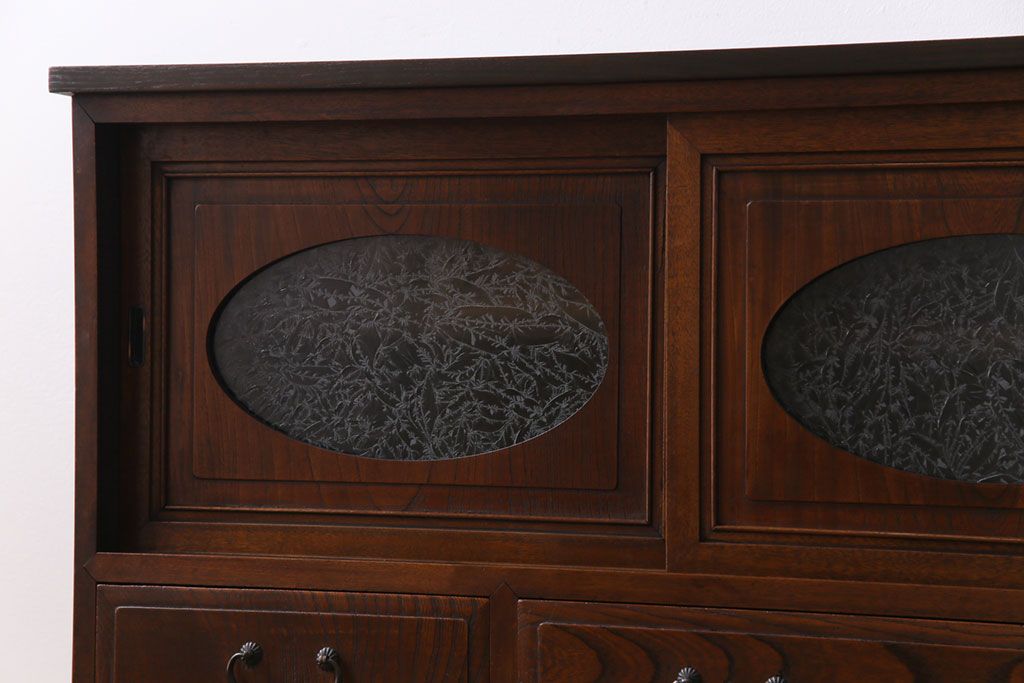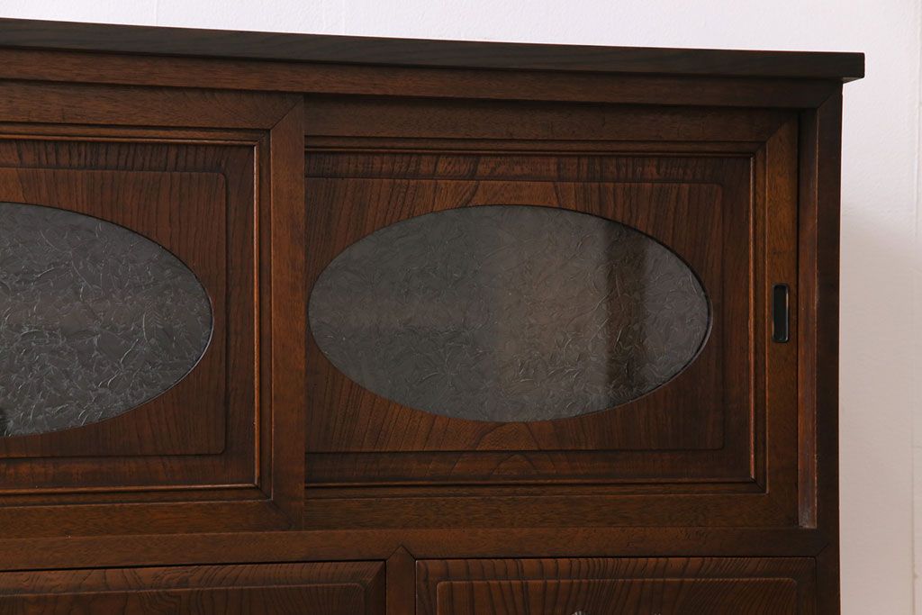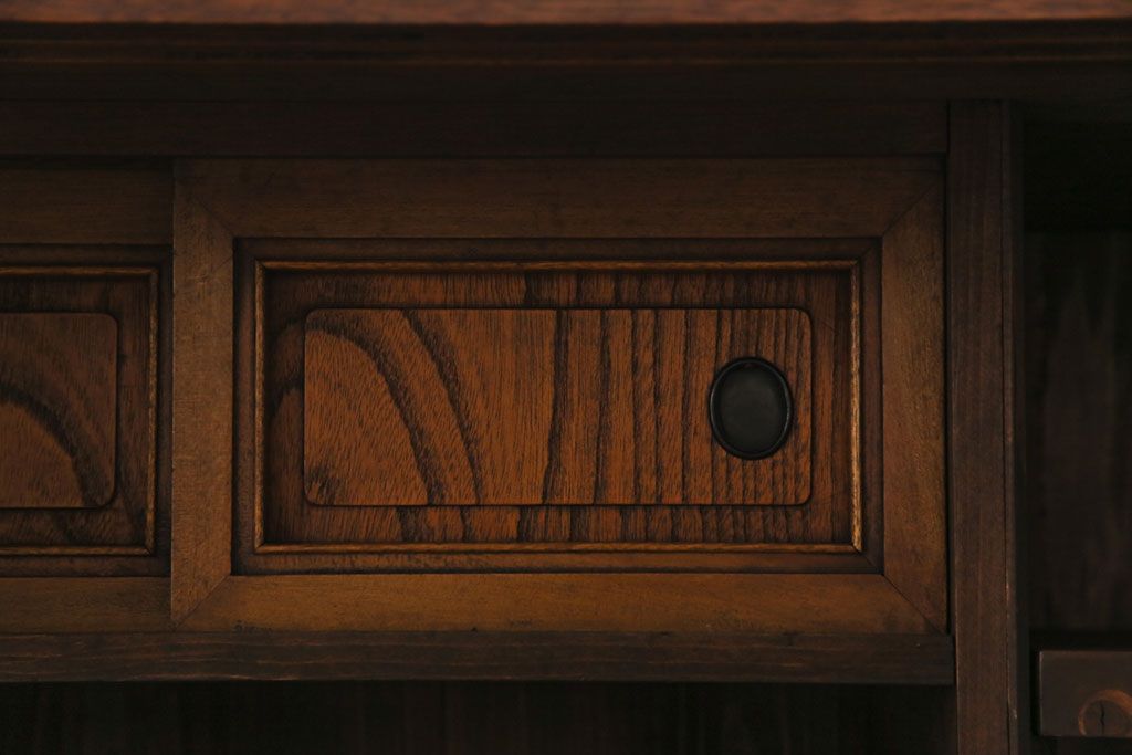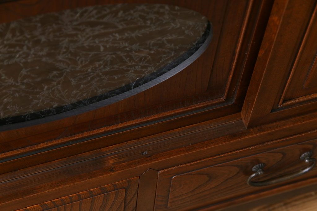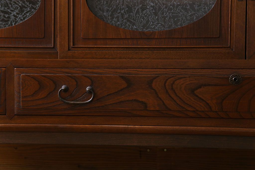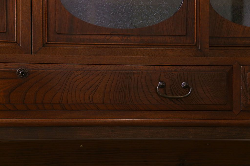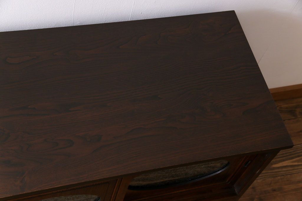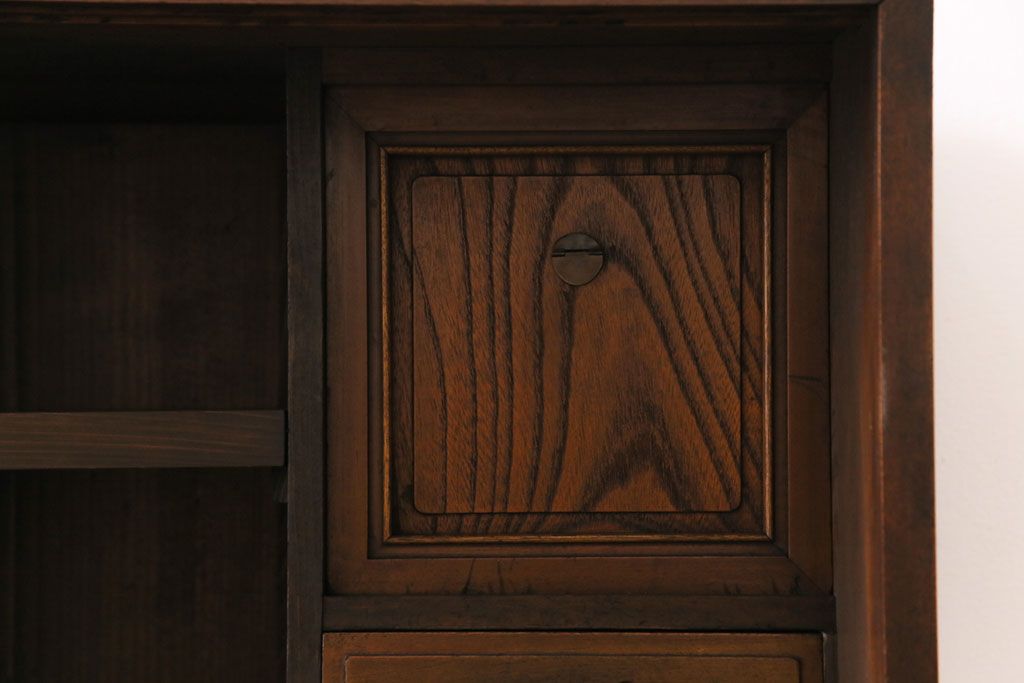 ラフジュ工房> キャビネット・戸棚> テレビ台・ローボード > アンティーク家具 和製アンティーク ケヤキの杢目が美しい上手物の脚付きローボード(ローチェスト、リビングボード)