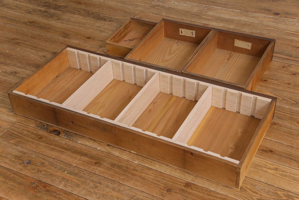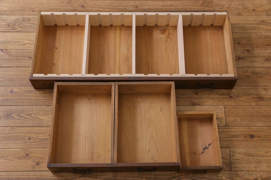 ラフジュ工房> チェスト・引き出し> ローチェスト > アンティーク家具 和製アンティーク ケヤキの杢目が美しい上手物の脚付きローボード(ローチェスト、リビングボード)