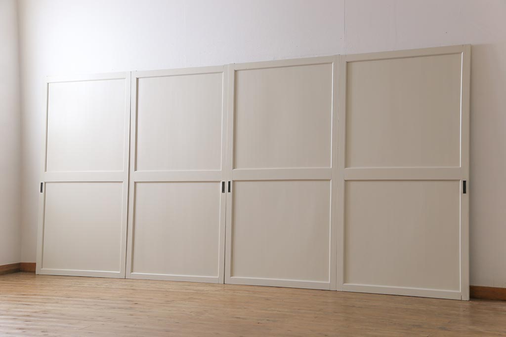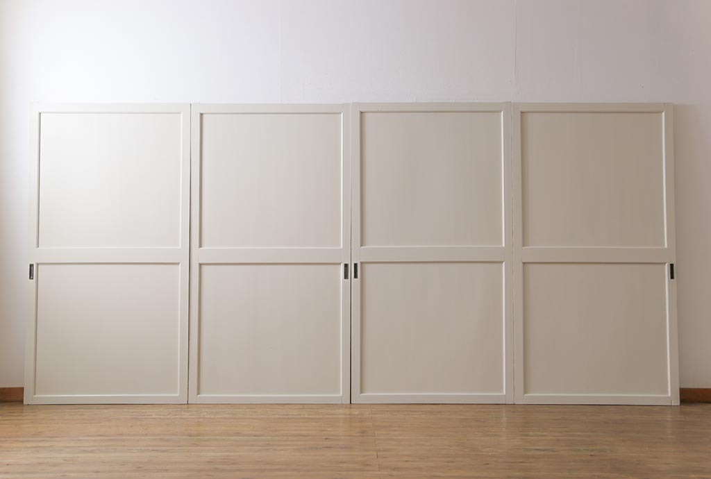 ペイント家具 無垢材 レトロなペイントカラーが魅力の板戸(引き戸、建具)4枚セット