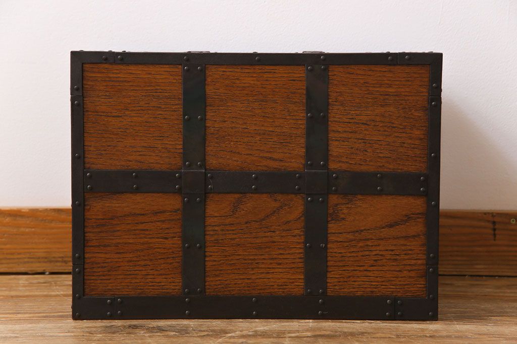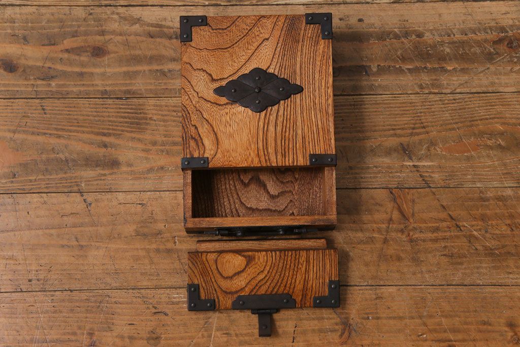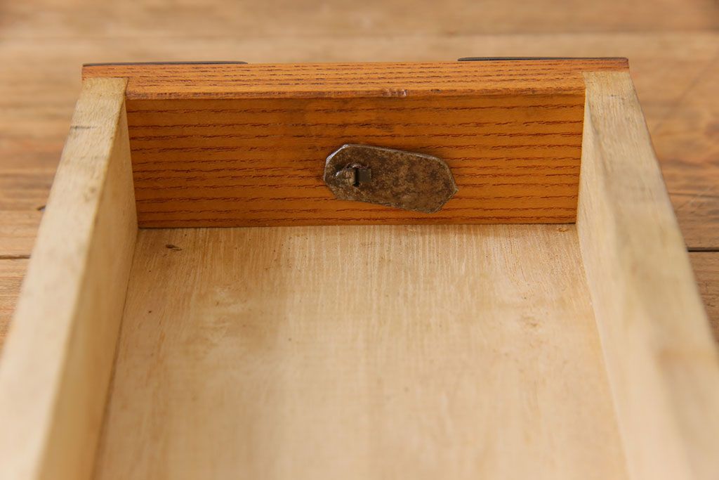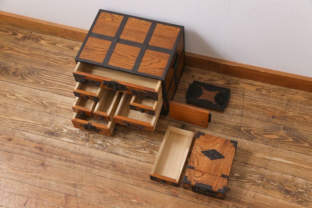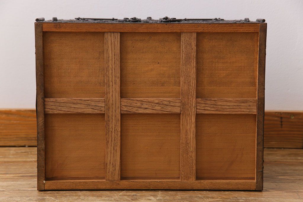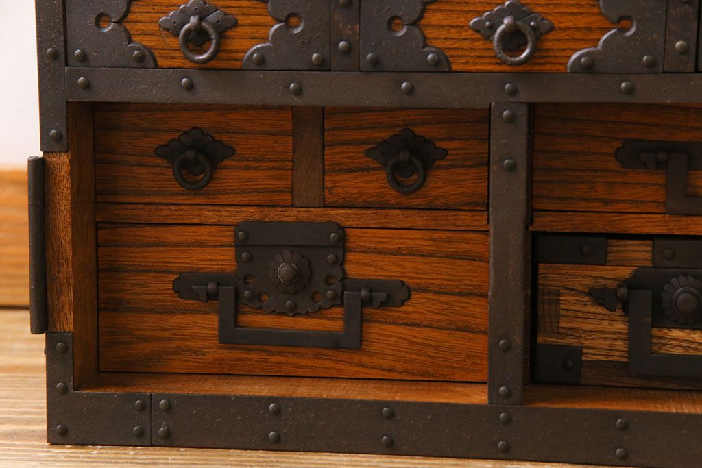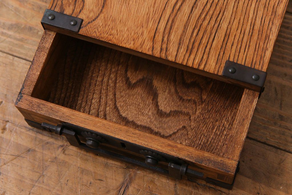 ラフジュ工房> 小物収納・トランク> 小引き出し > 中古 工芸品 ケヤキ材 上手物 手打ち金具が趣深い船箪笥(帳箱、小箪笥)