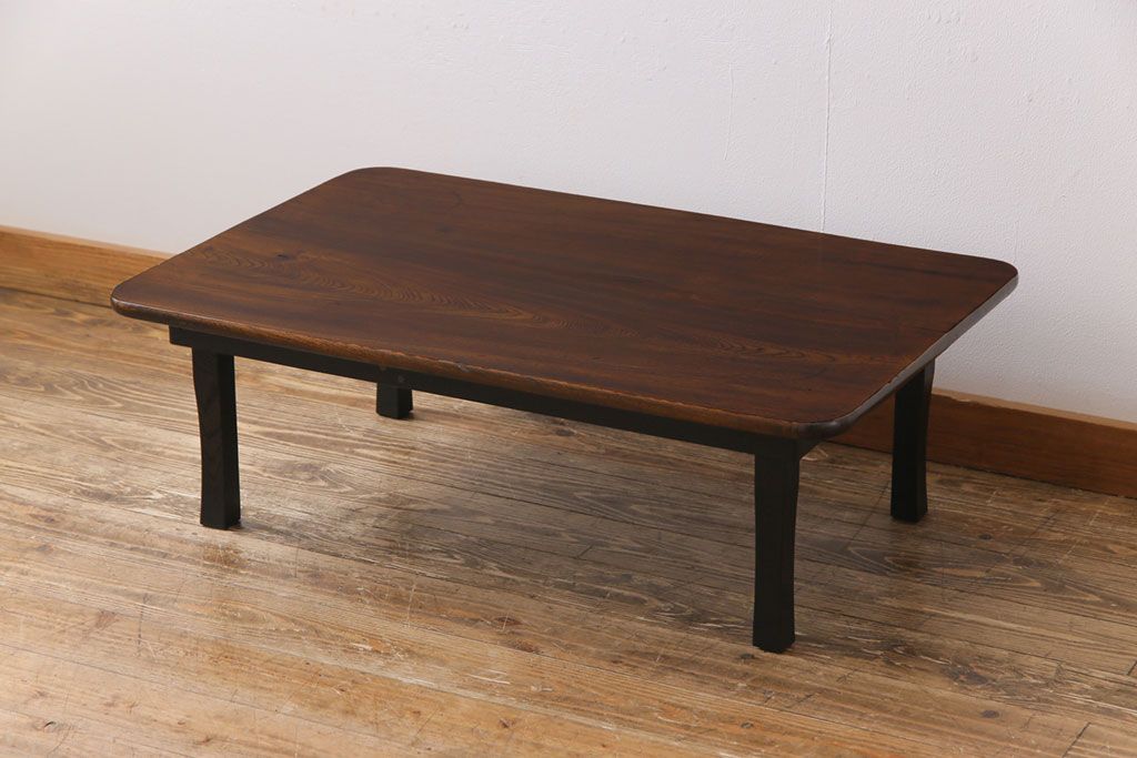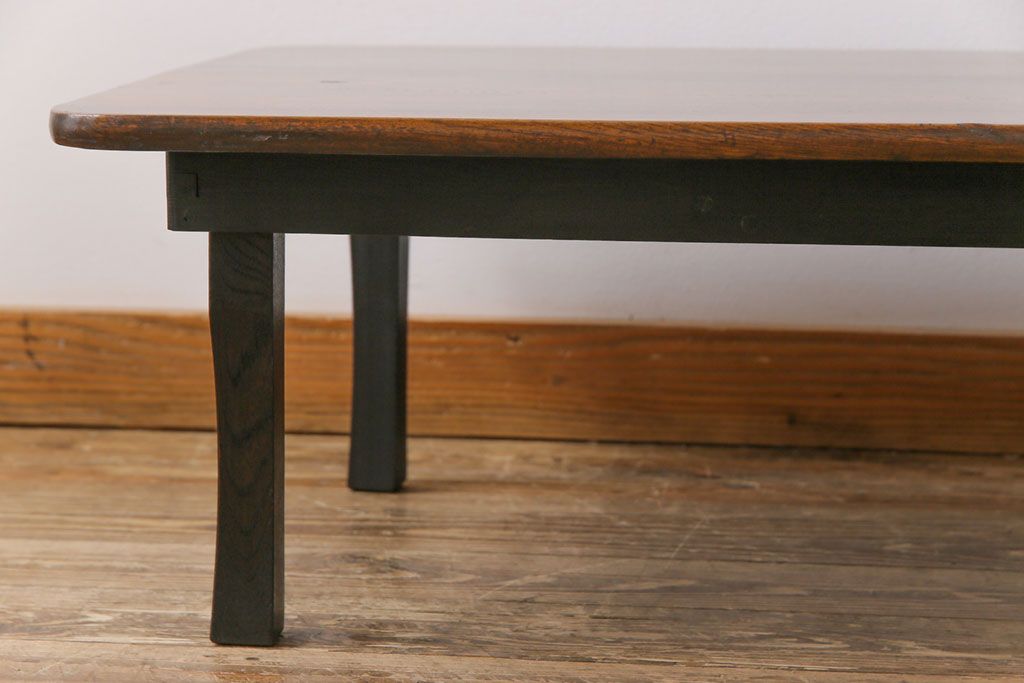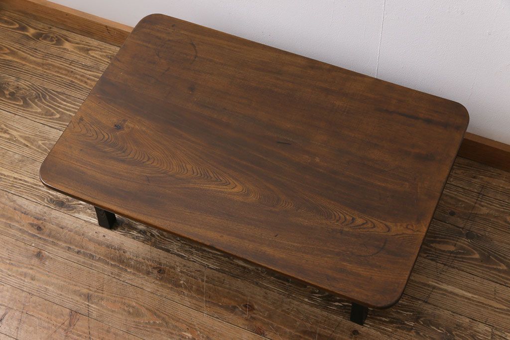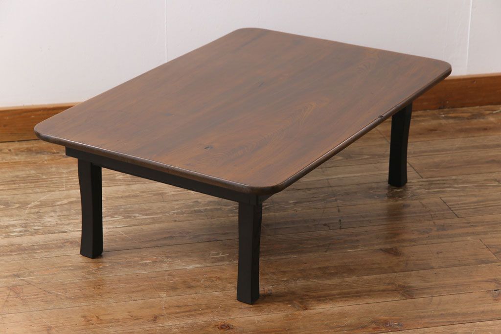昭和レトロ 栓材一枚板 懐かしさ漂う柔らかな風合いが魅力の角ちゃぶ台(座卓、ローテーブル)です。