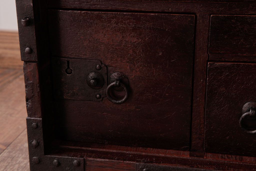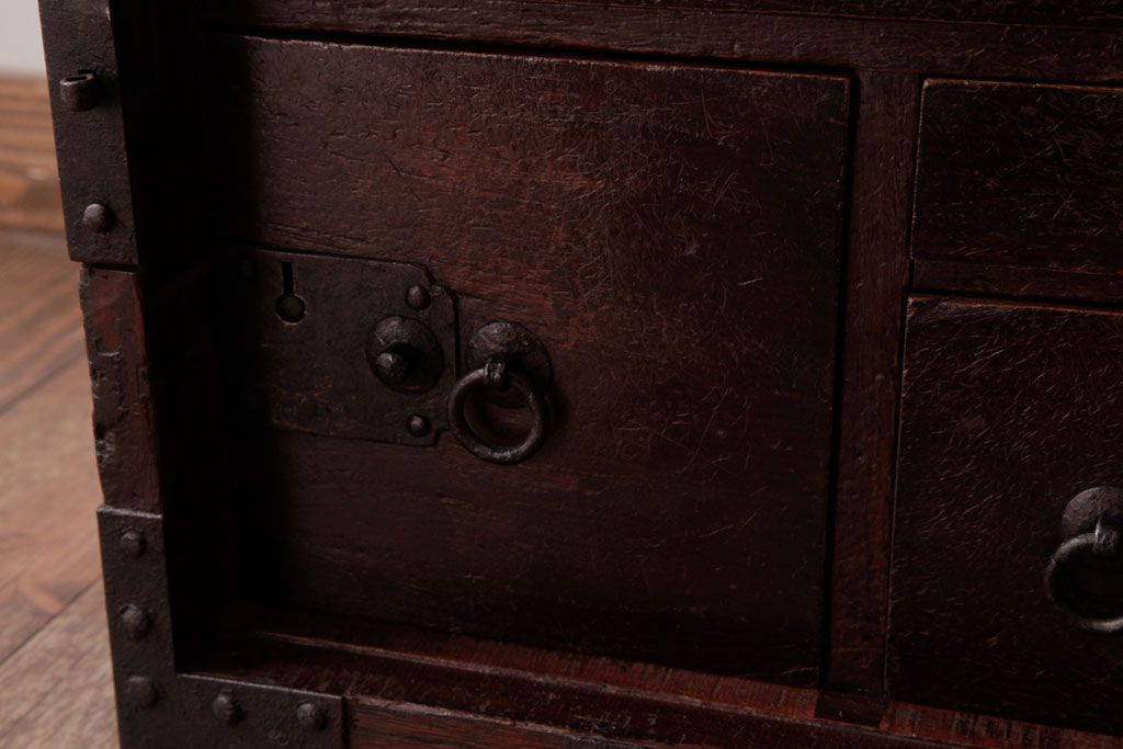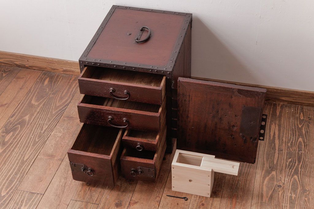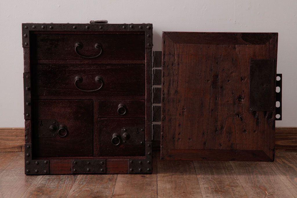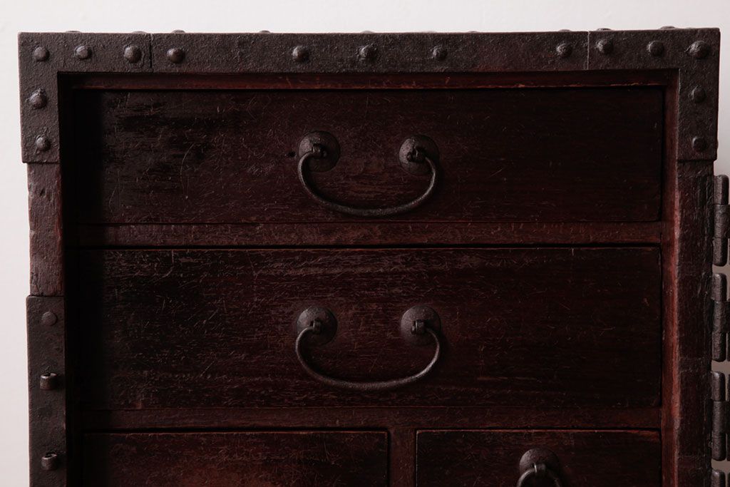 古民具・骨董 江戸明治期 渋い趣が味わい深い船箪笥(掛硯型、懸硯型、小引き出し)です。