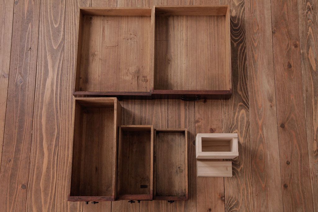 アンティーク家具 古民具・骨董 江戸明治期 渋い趣が味わい深い船箪笥(掛硯型、懸硯型、小引き出し)