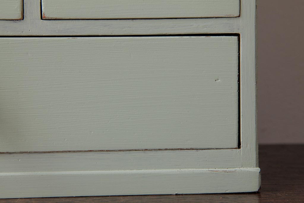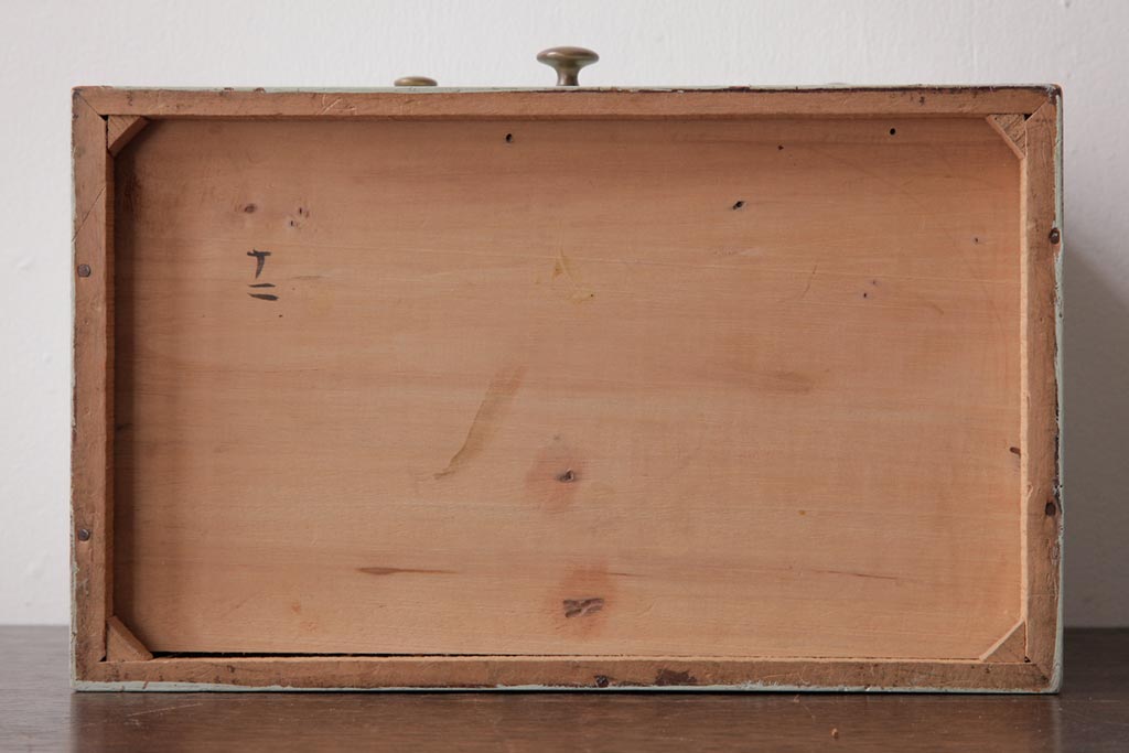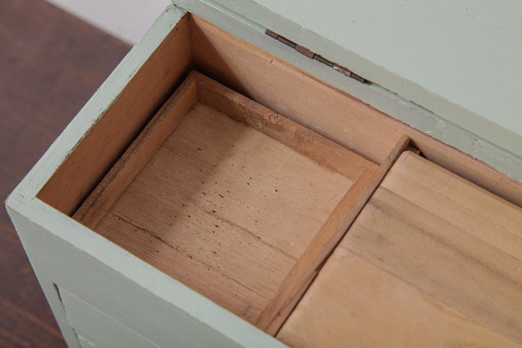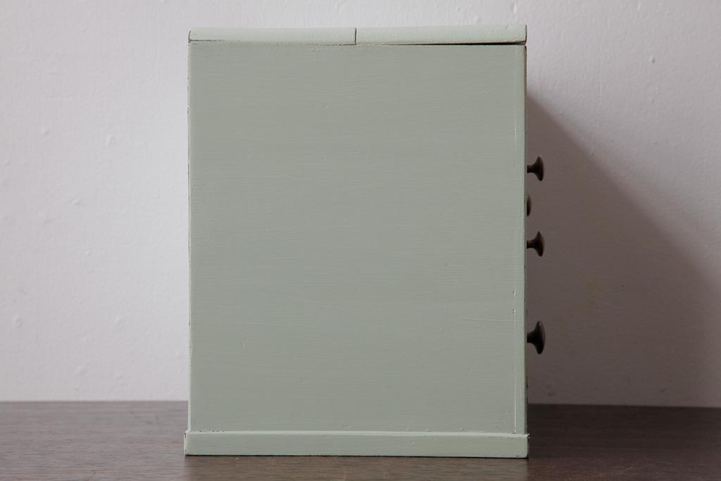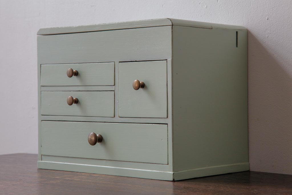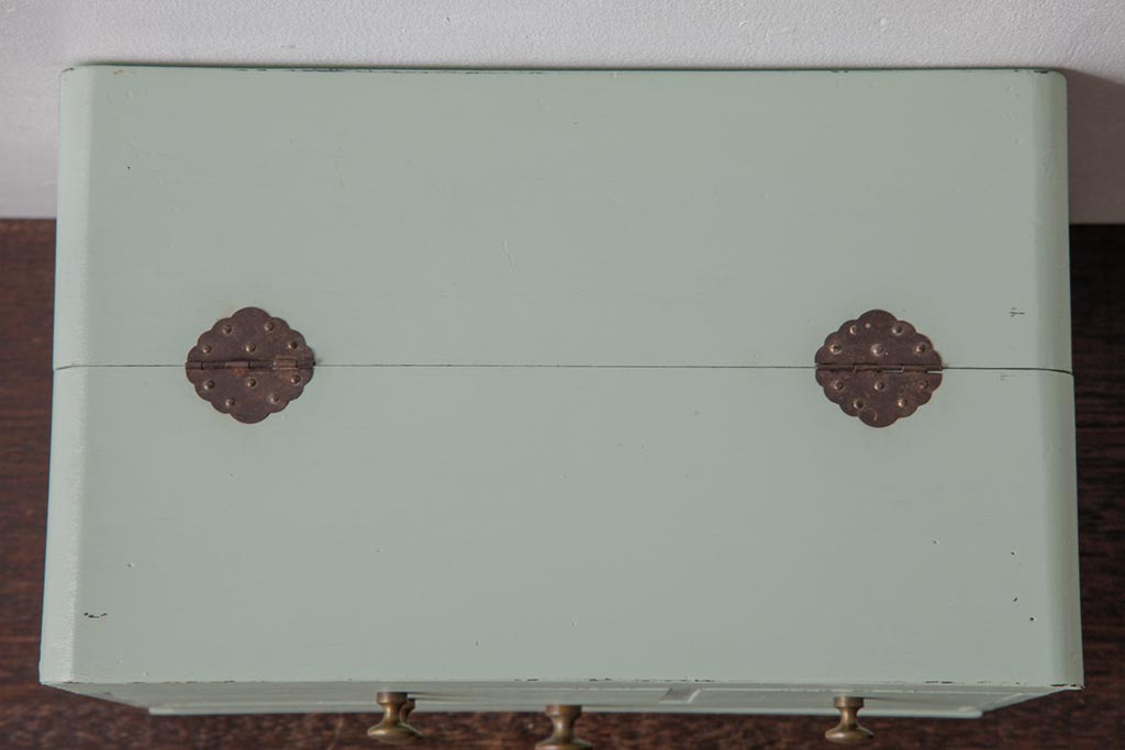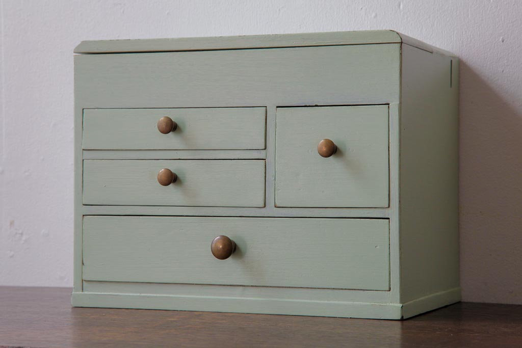 ラフジュ工房> 小物収納・トランク > アンティーク雑貨 ペイント家具 淡いグリーンがレトロなソーイングボックス(裁縫箱、小引き出し、小物収納)