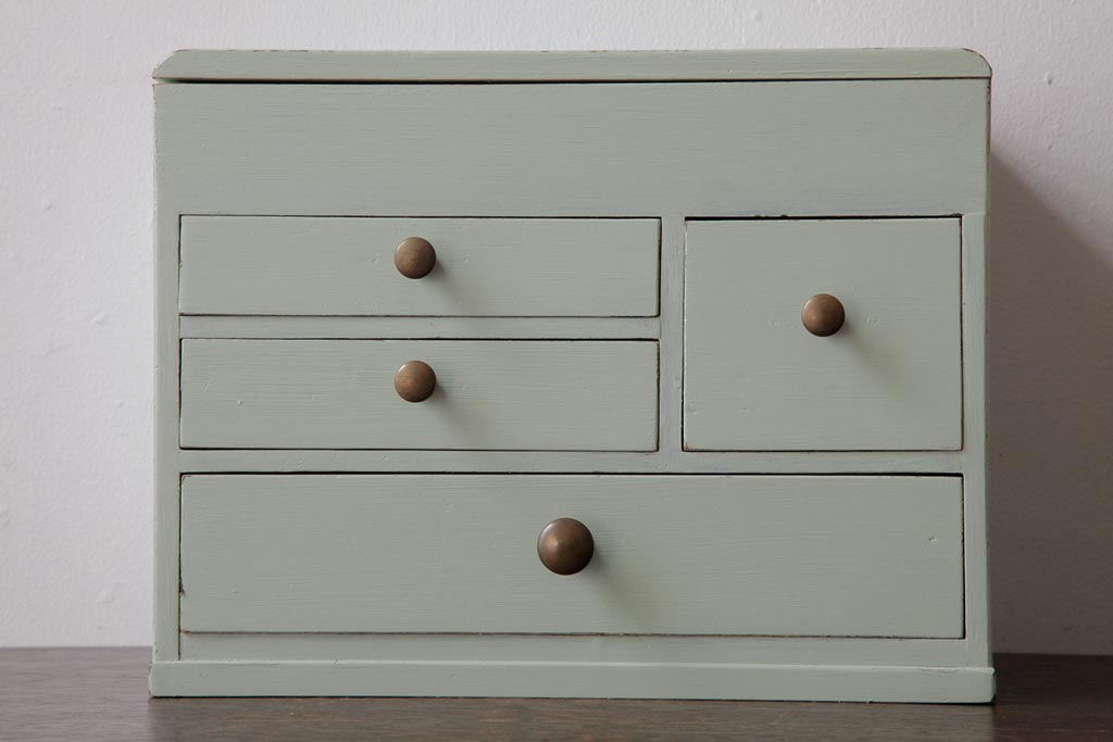 ラフジュ工房> 小物収納・トランク> 小引き出し > アンティーク雑貨 ペイント家具 淡いグリーンがレトロなソーイングボックス(裁縫箱、小引き出し、小物収納)