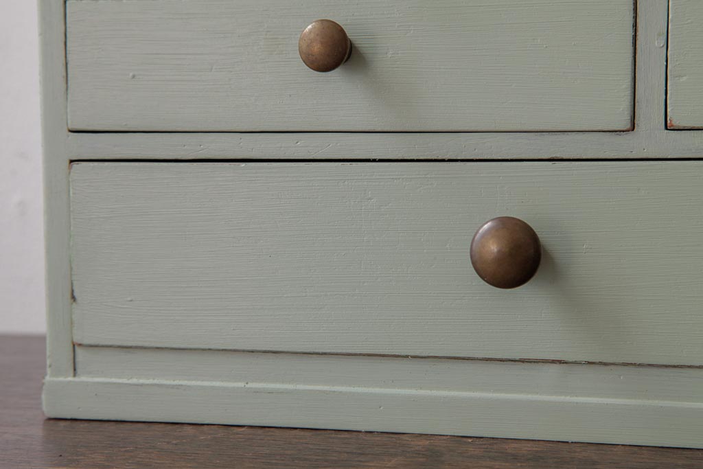 アンティーク雑貨 ペイント家具 淡いグリーンがレトロなソーイングボックス(裁縫箱、小引き出し、小物収納)