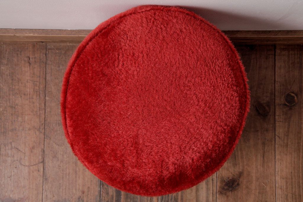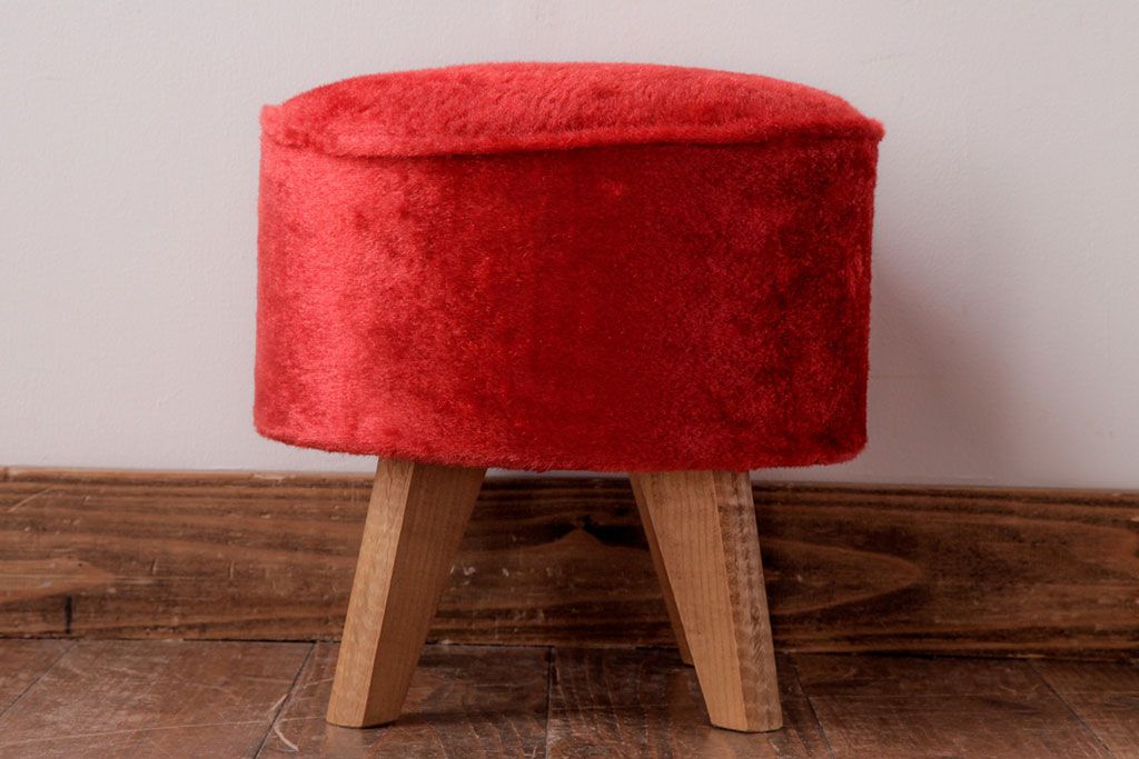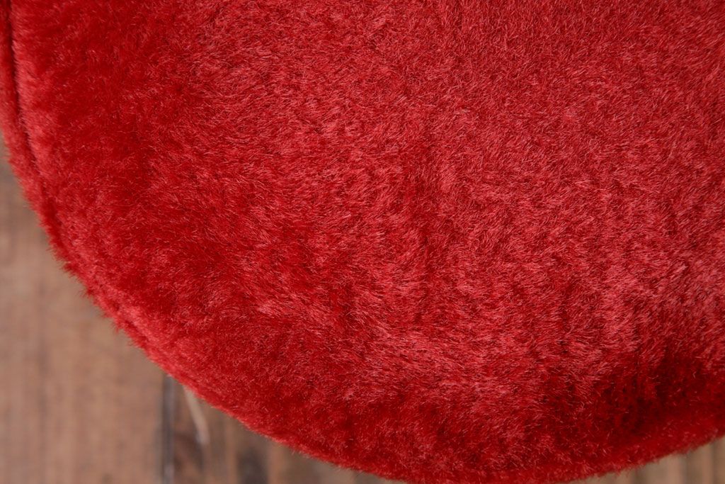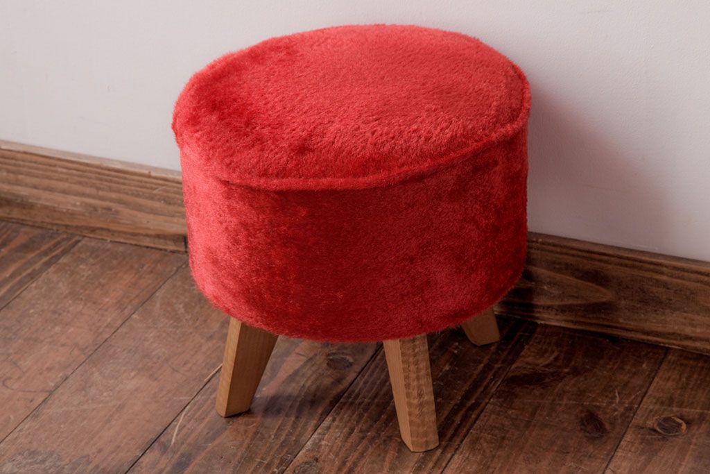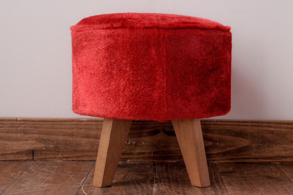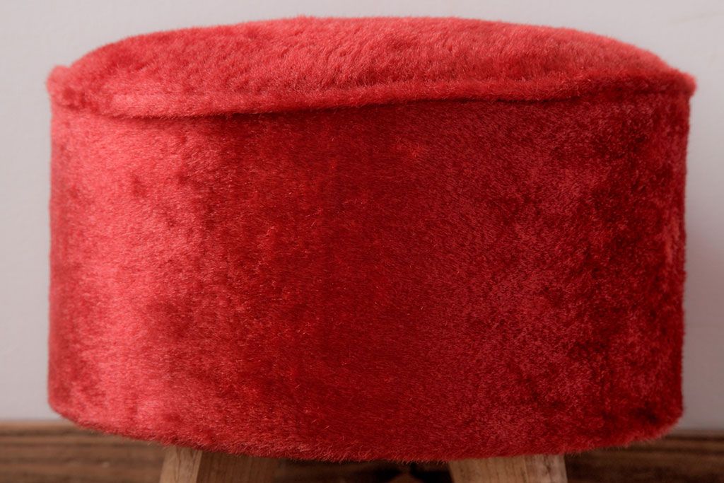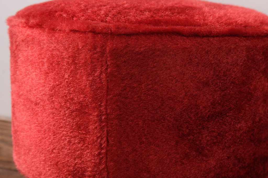ヴィンテージ家具 ビンテージ 差し色にぴったりの赤いフェイクファースツール(椅子、チェア)