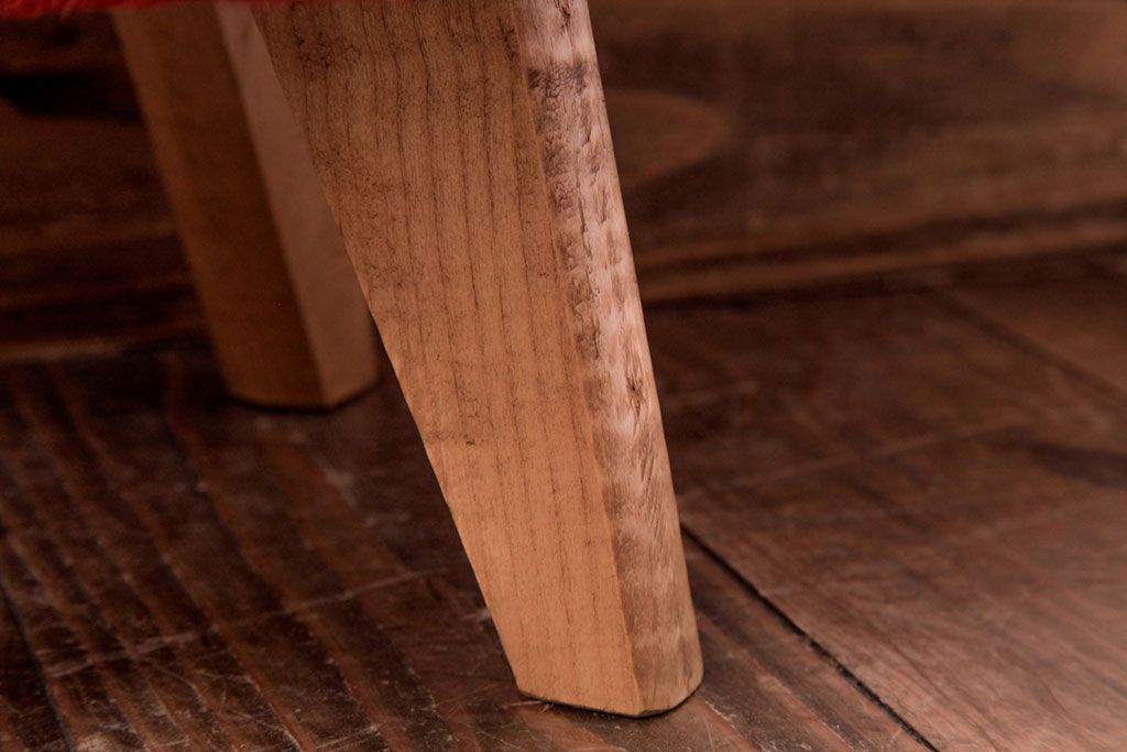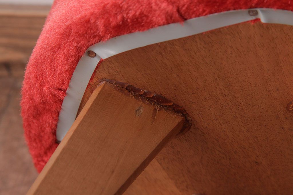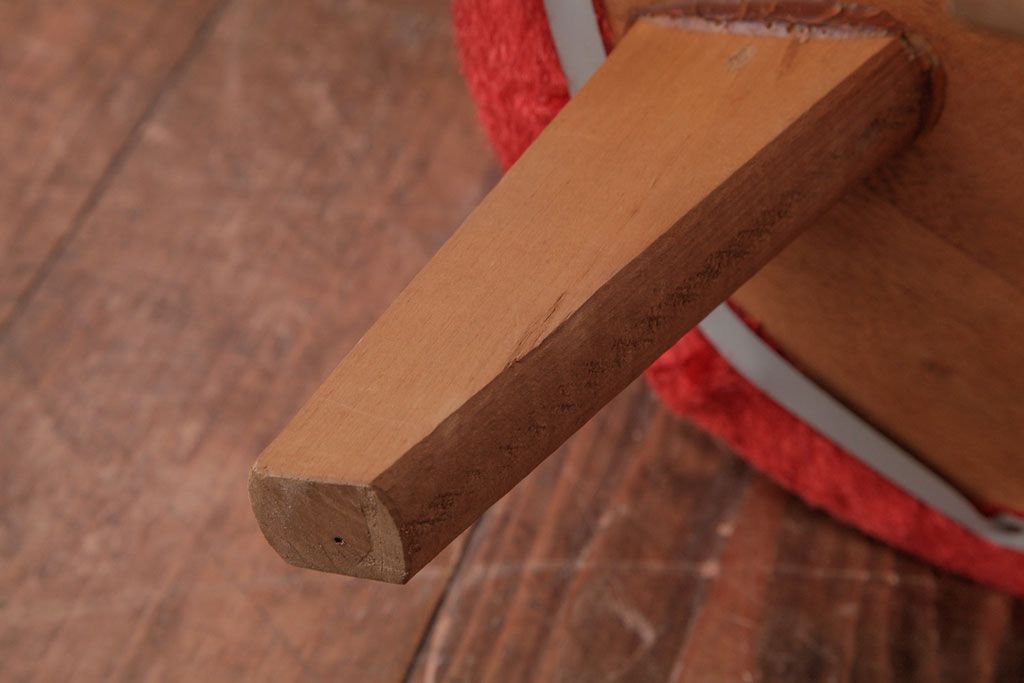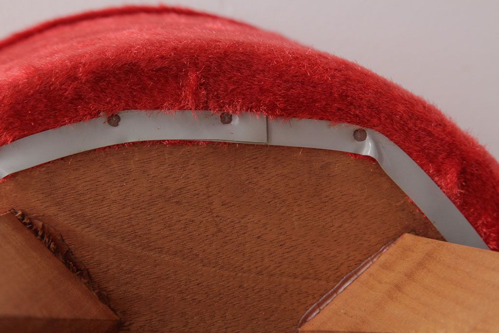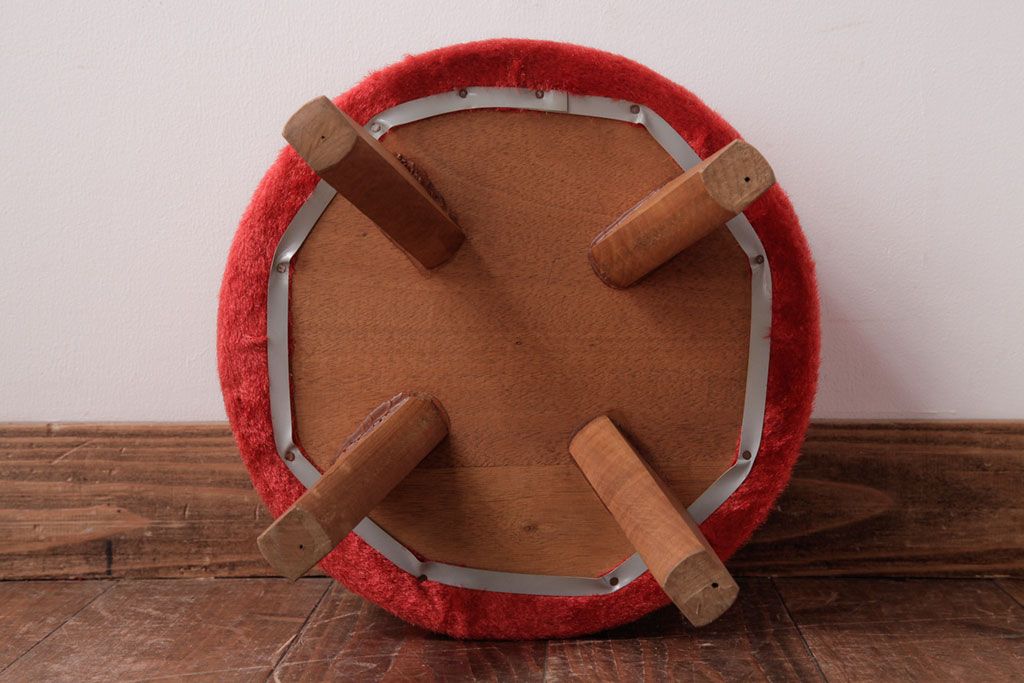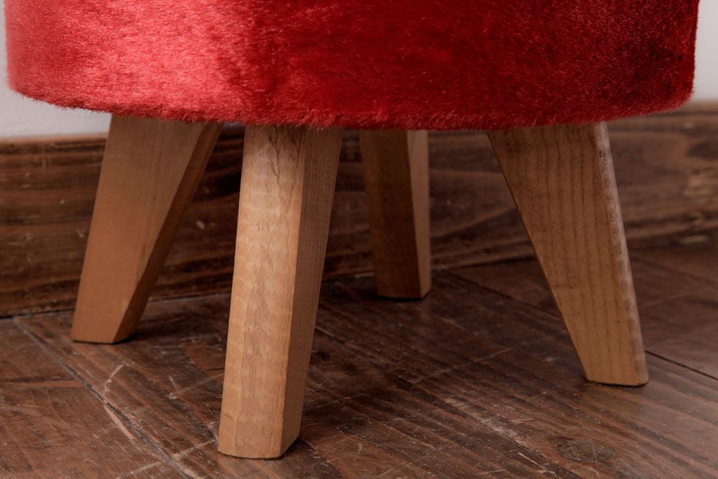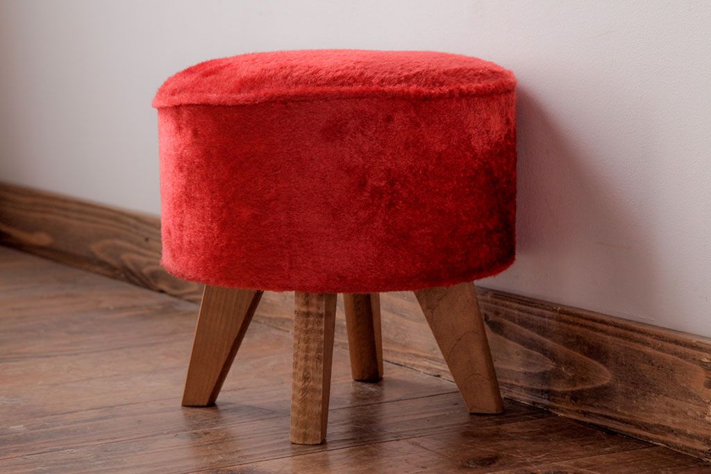 ヴィンテージ家具 ビンテージ 差し色にぴったりの赤いフェイクファースツール(椅子、チェア)