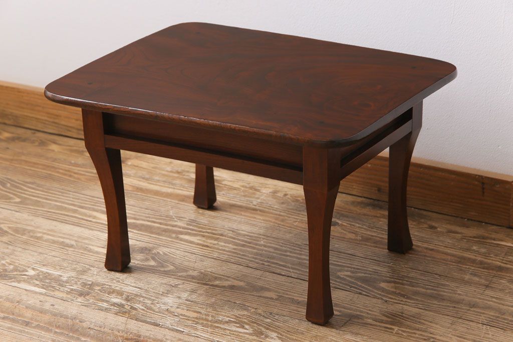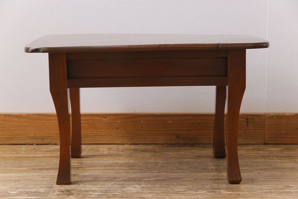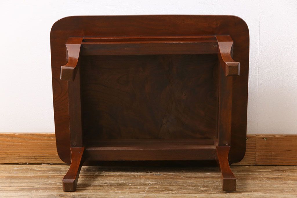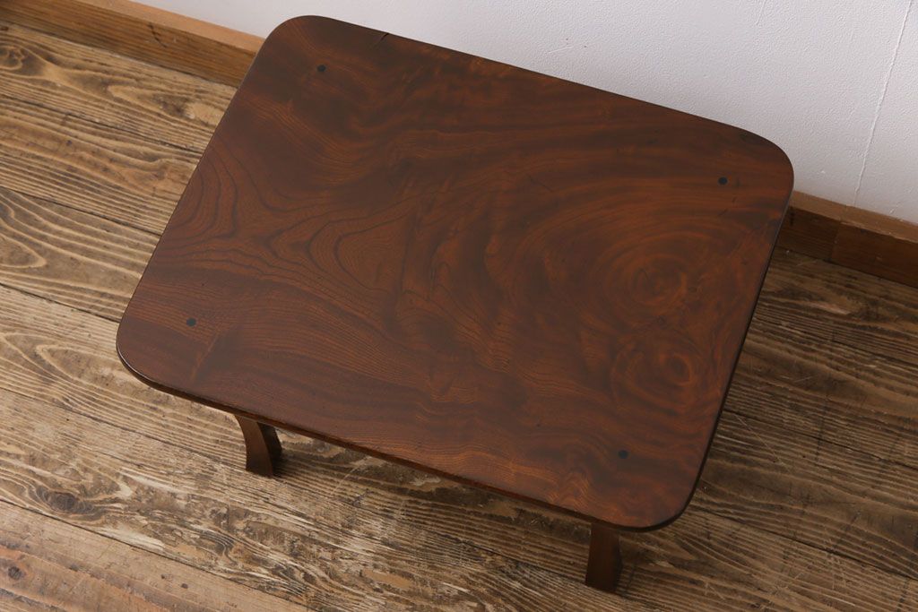 ラフジュ工房> テーブル> サイドテーブル > レトロ家具 和製アンティーク 総ケヤキ材製 レトロな演出にぴったりの小さな座卓(角ちゃぶ台、飾り台)