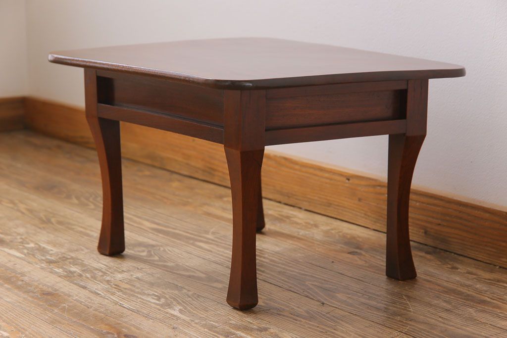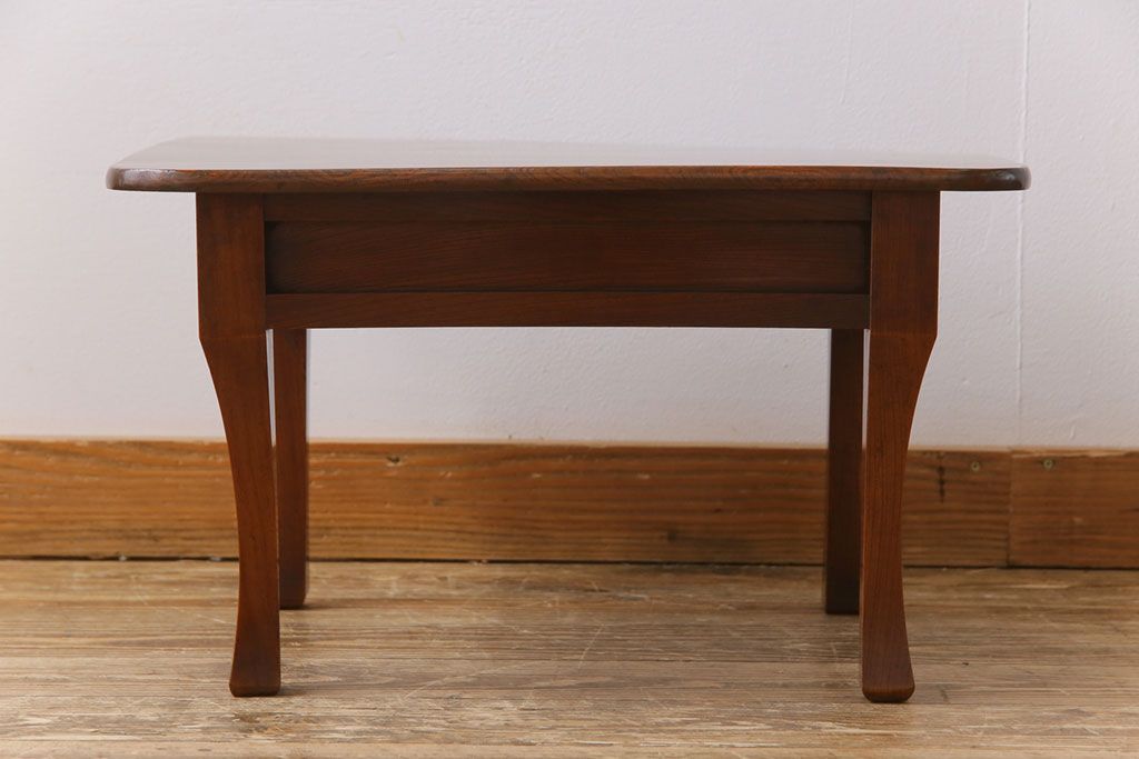 ラフジュ工房> テーブル> ちゃぶ台 > レトロ家具 和製アンティーク 総ケヤキ材製 レトロな演出にぴったりの小さな座卓(角ちゃぶ台、飾り台)