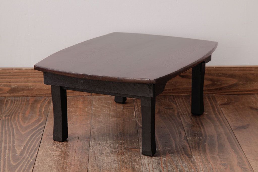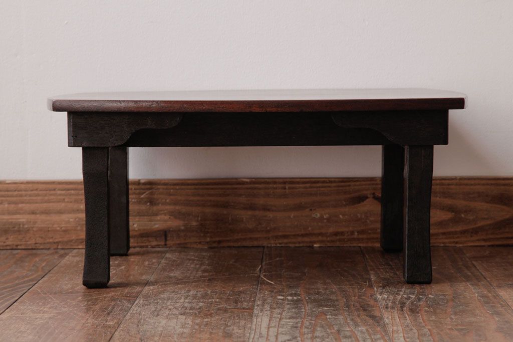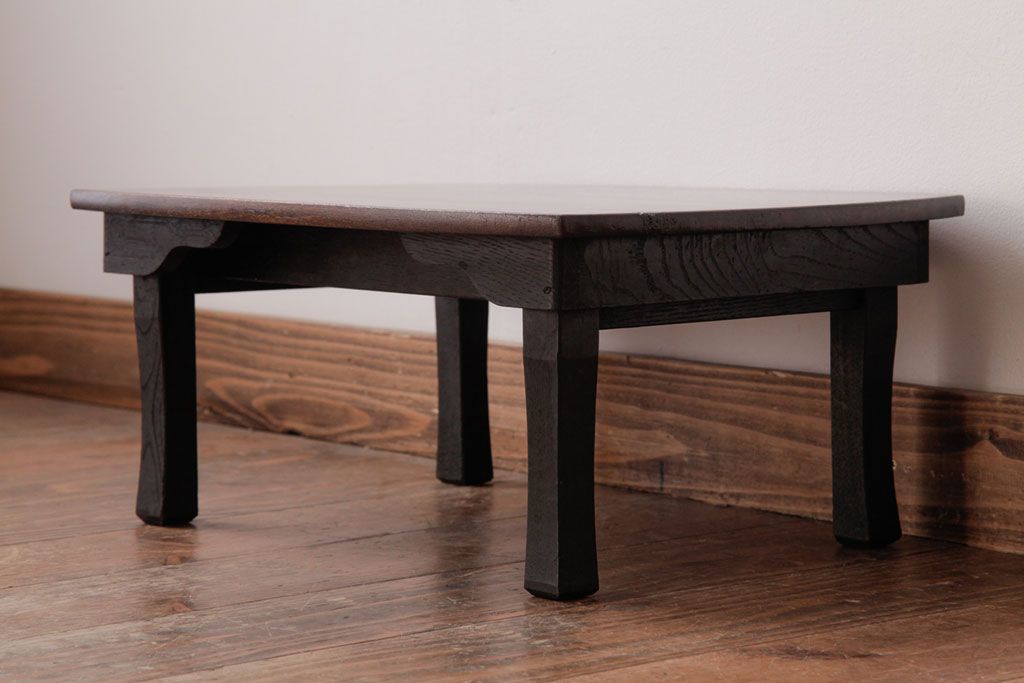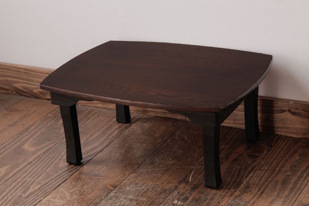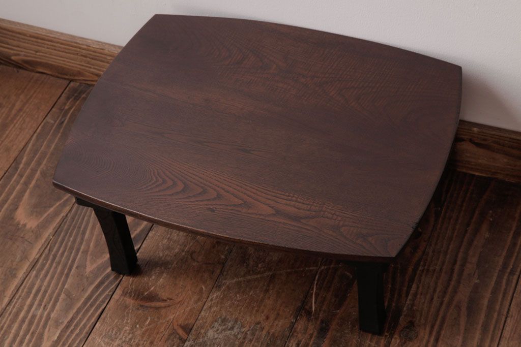 レトロ家具 昭和レトロ 栓材一枚板 味のある風合いと木目が趣のある豆ちゃぶ台(ローテーブル、花台)