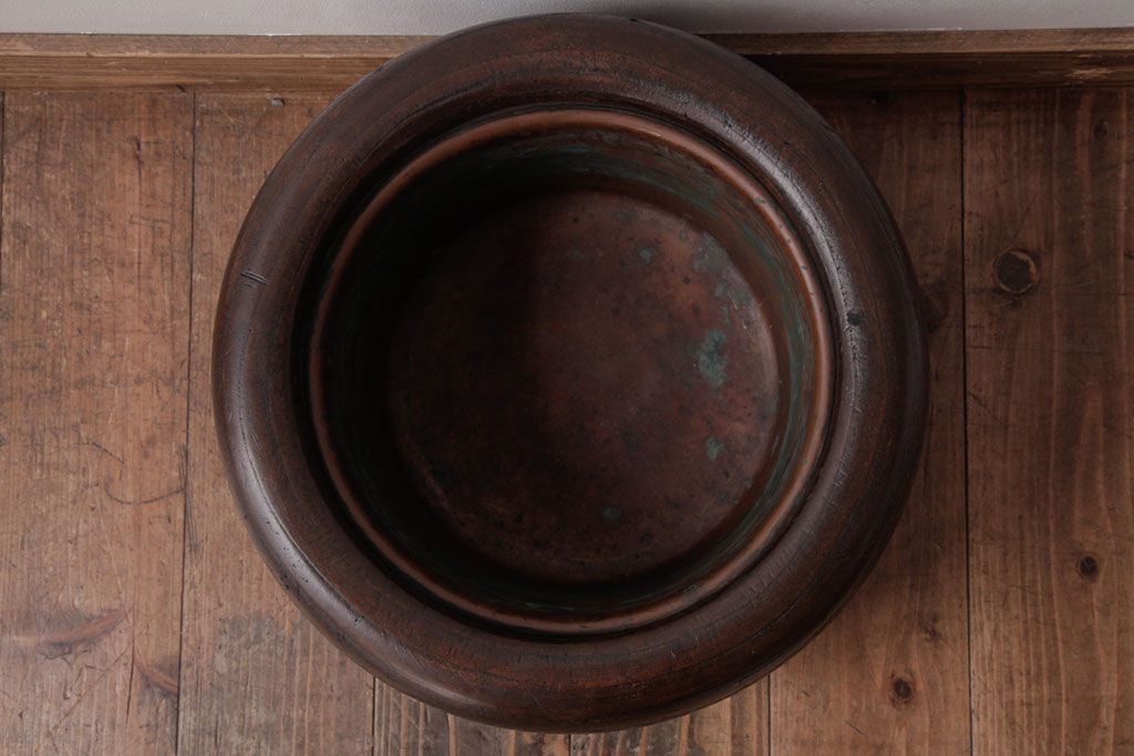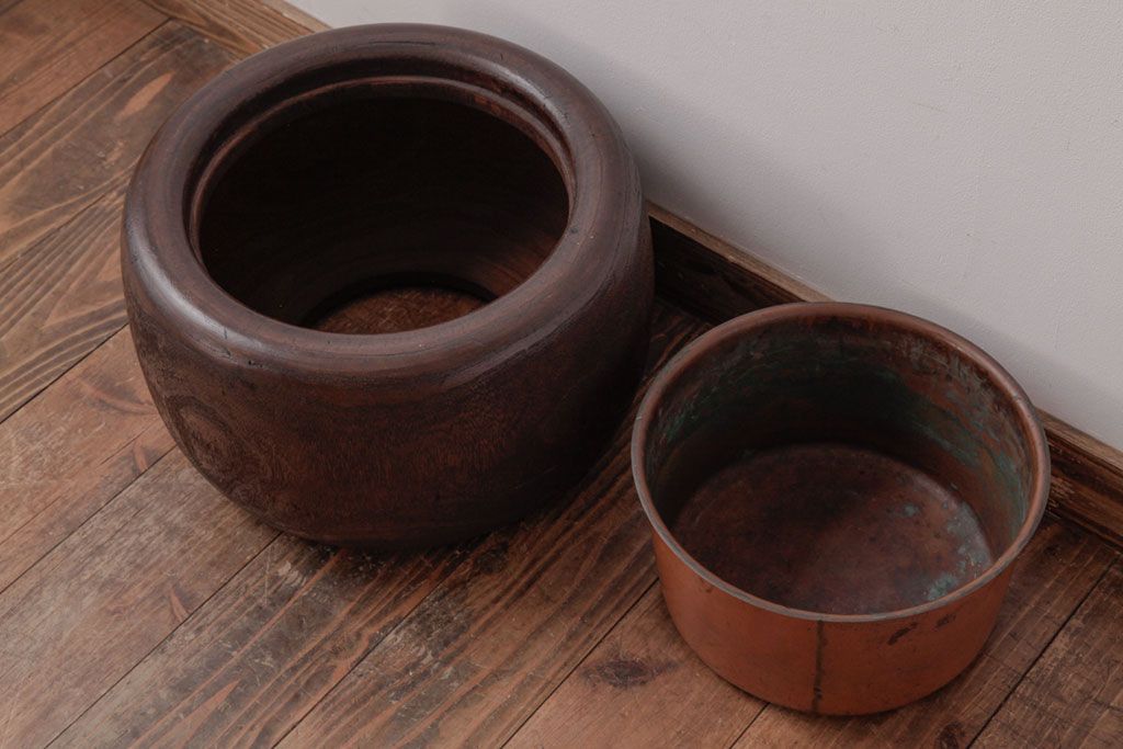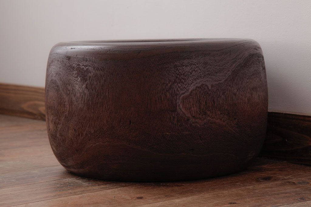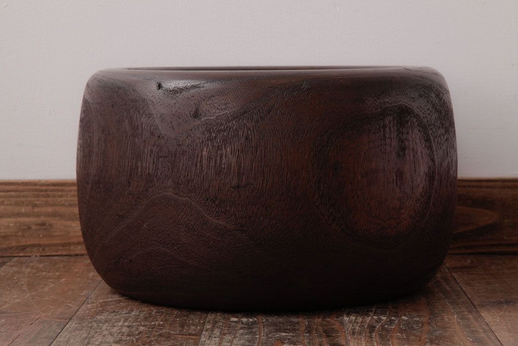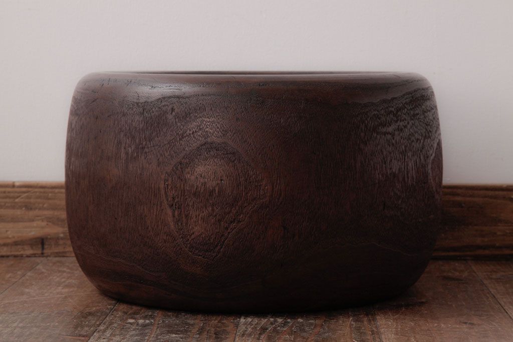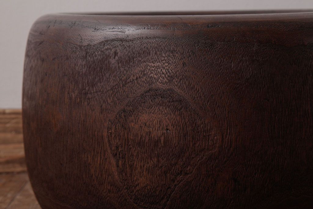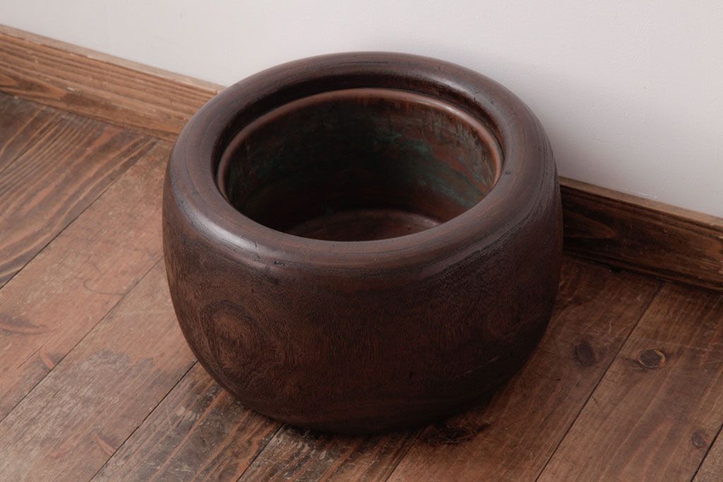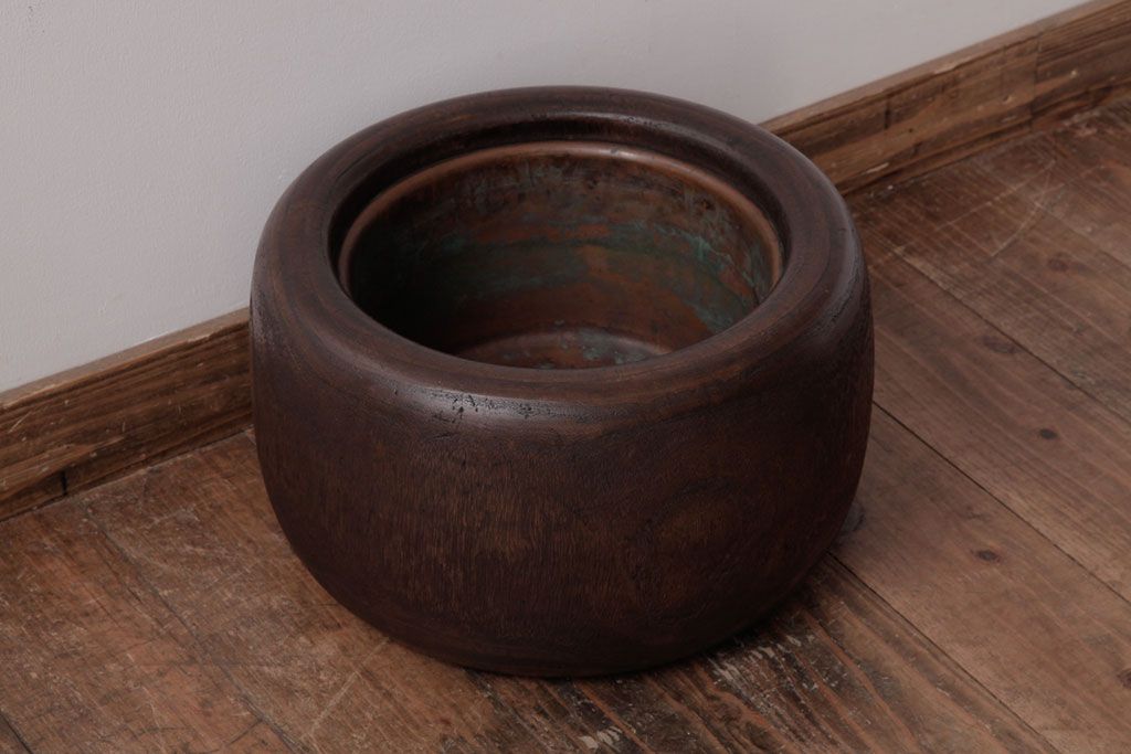 火鉢> 木製火鉢 > アンティーク雑貨 和製アンティーク 桐材製 古い木の質感が味わい深いくり抜き火鉢(2)