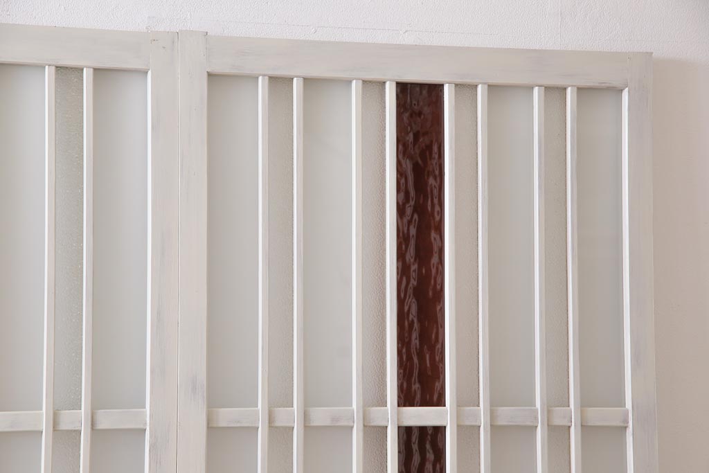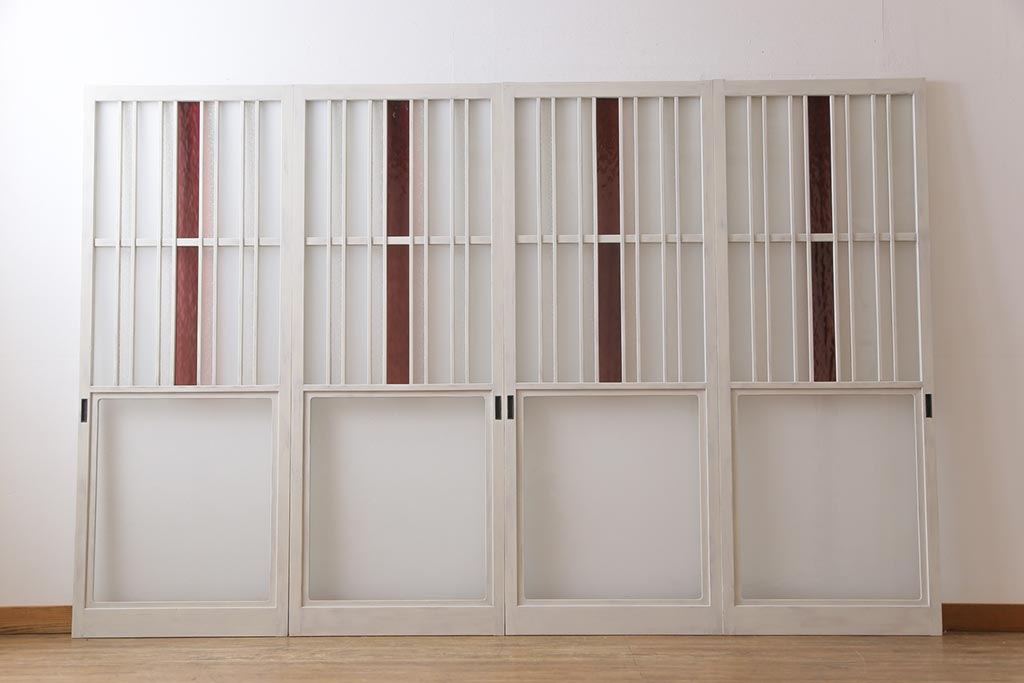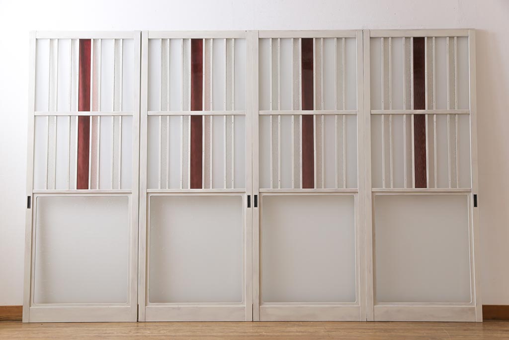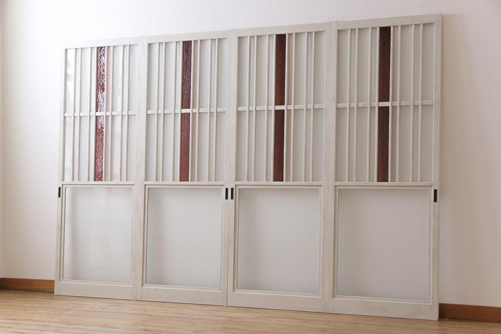 ペイント 色ガラス 星ガラスがレトロな雰囲気のガラス戸(引き戸、仕切り戸、建具)4枚組