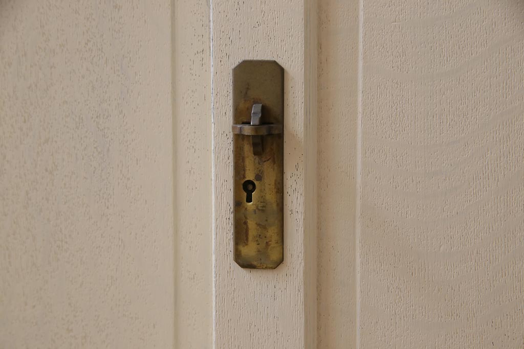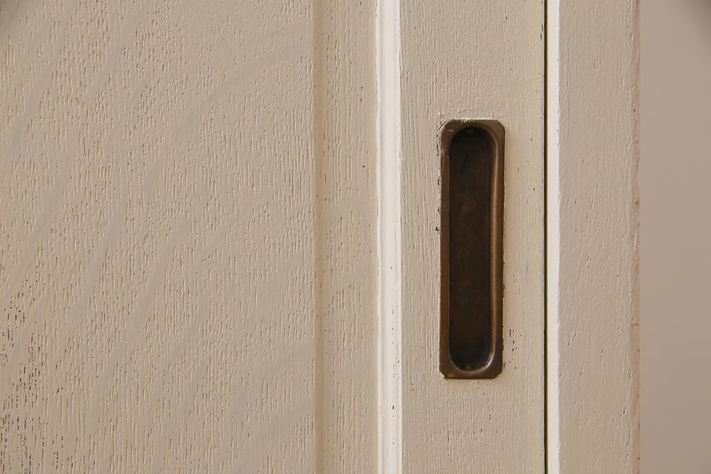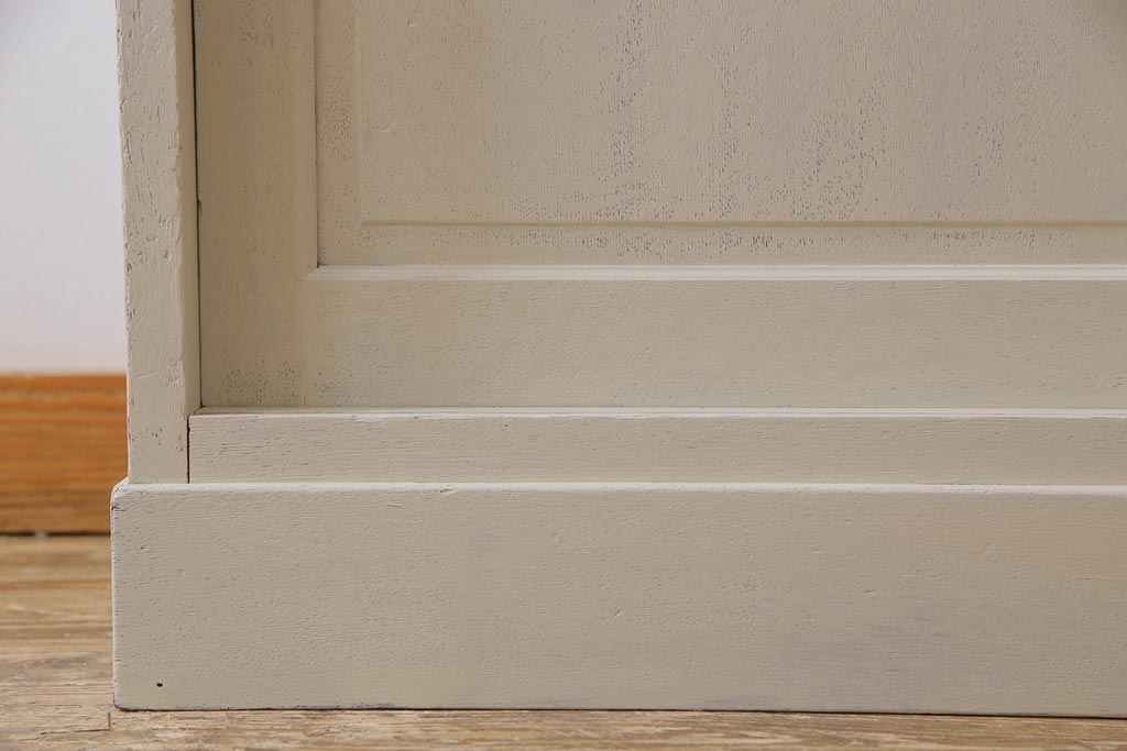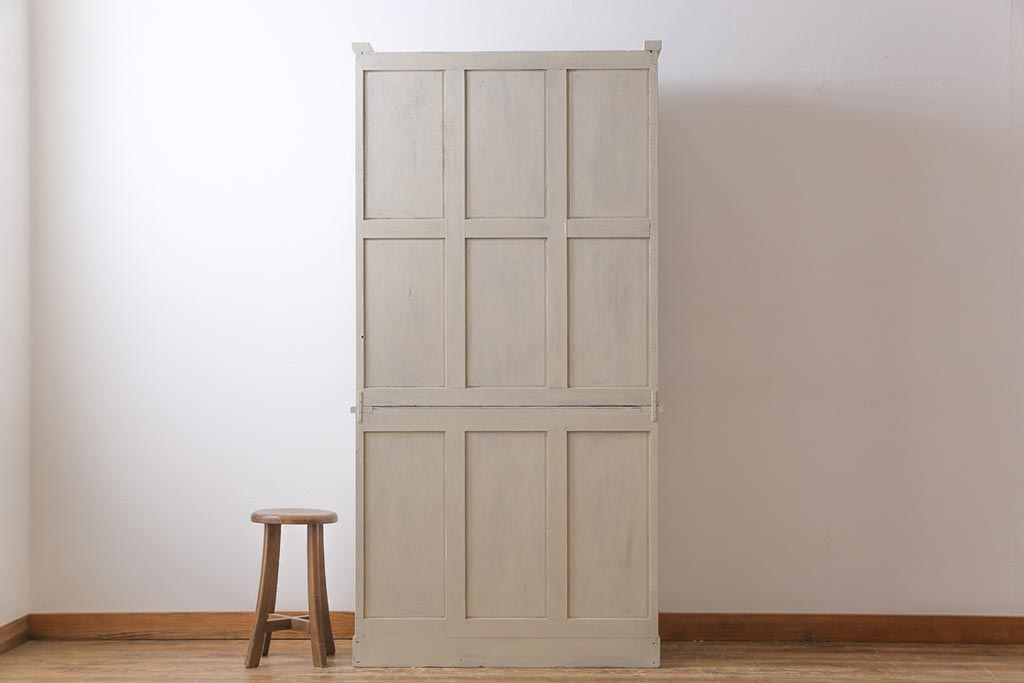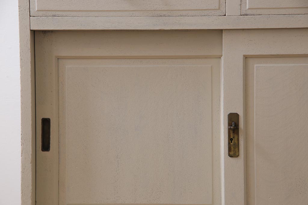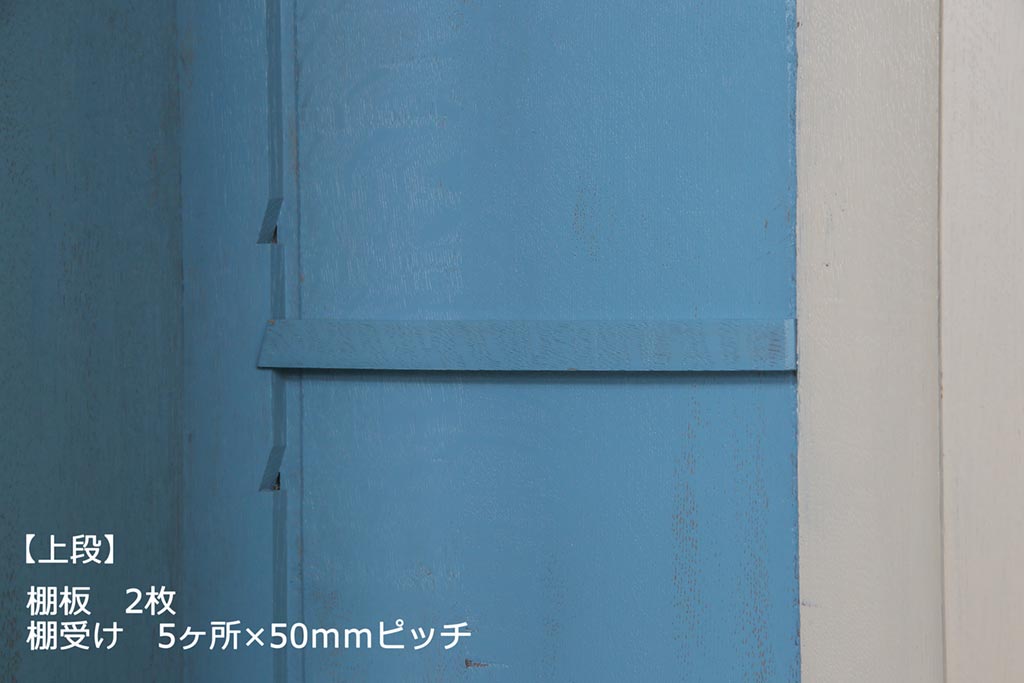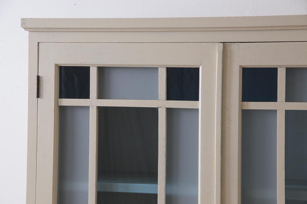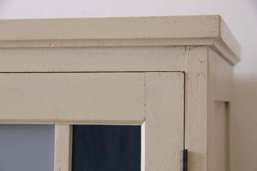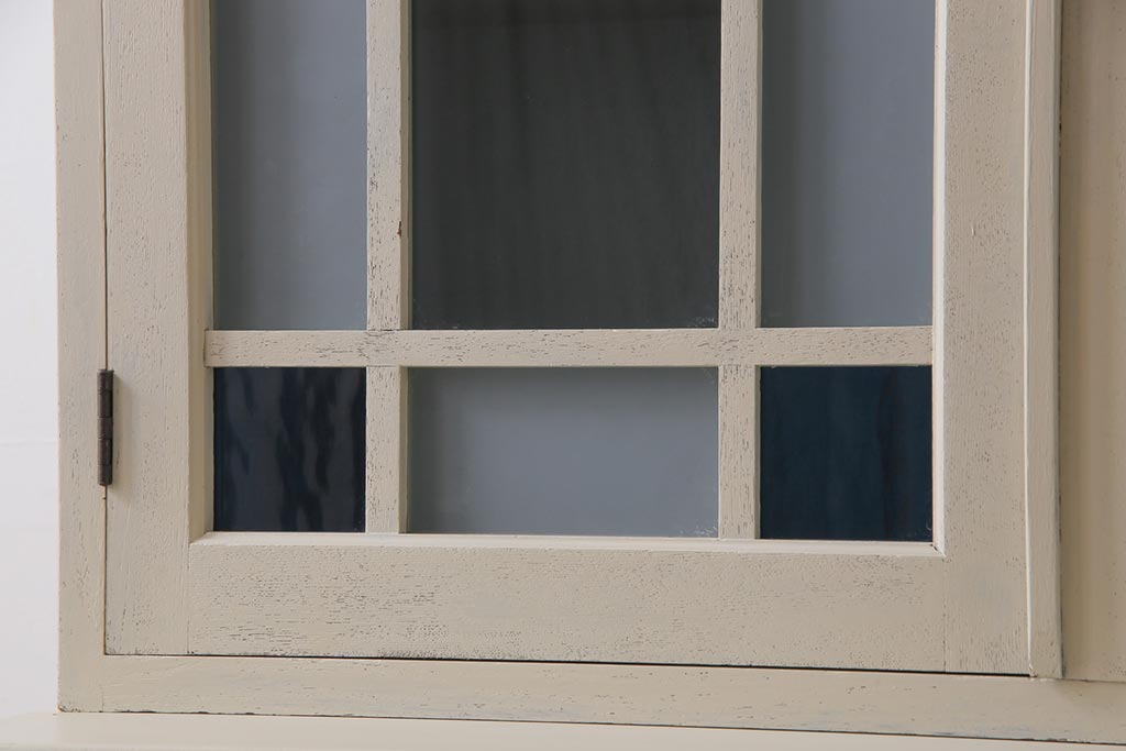 和製アンティーク ペイント家具 色ガラス入り 爽やかな印象のシャビーシックなカップボード(食器棚、収納棚)