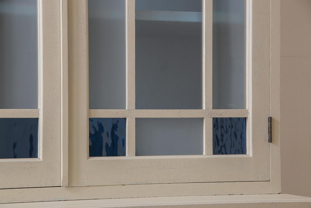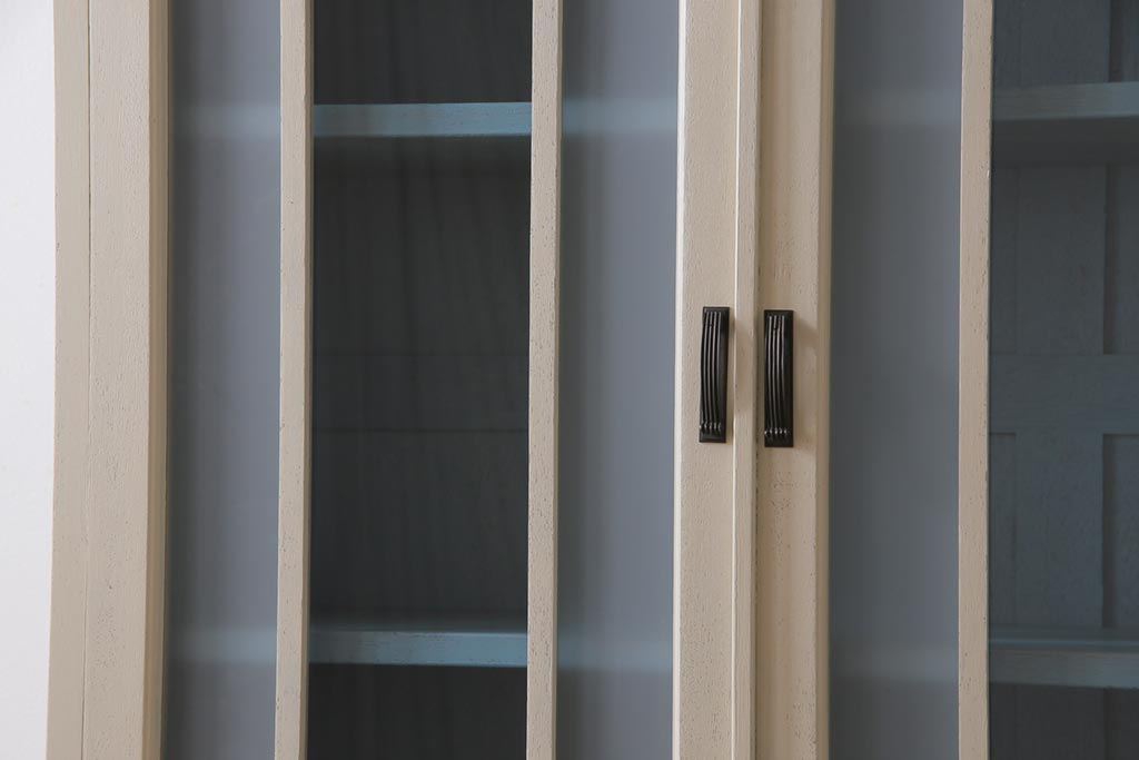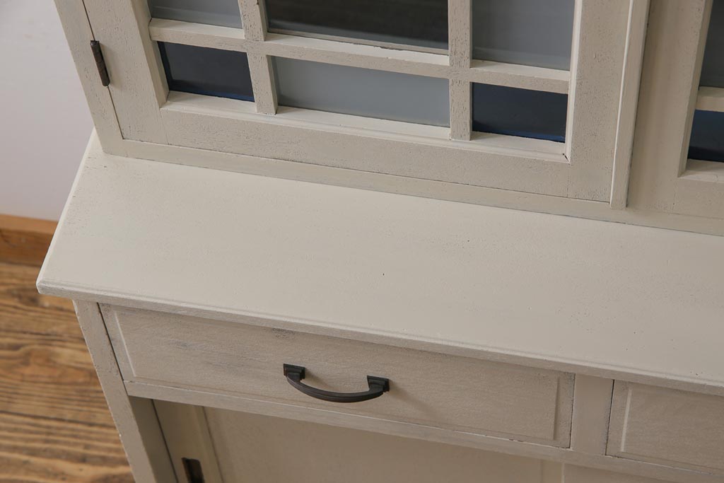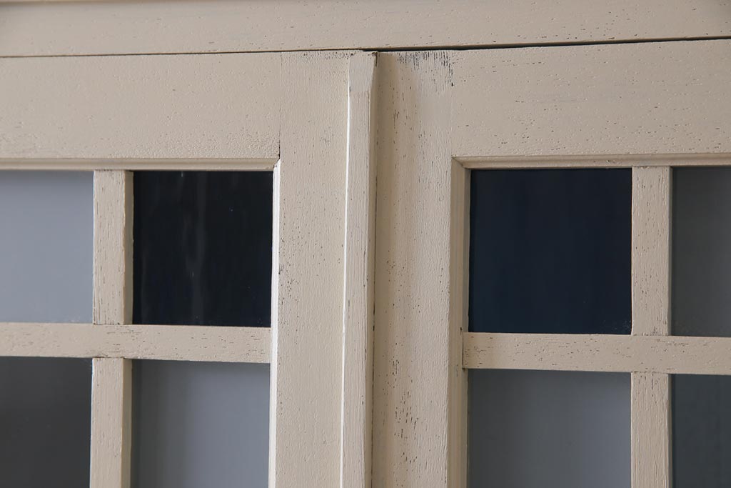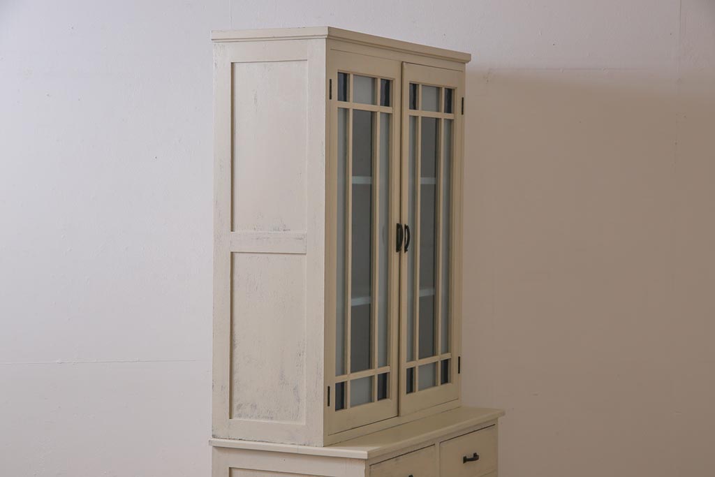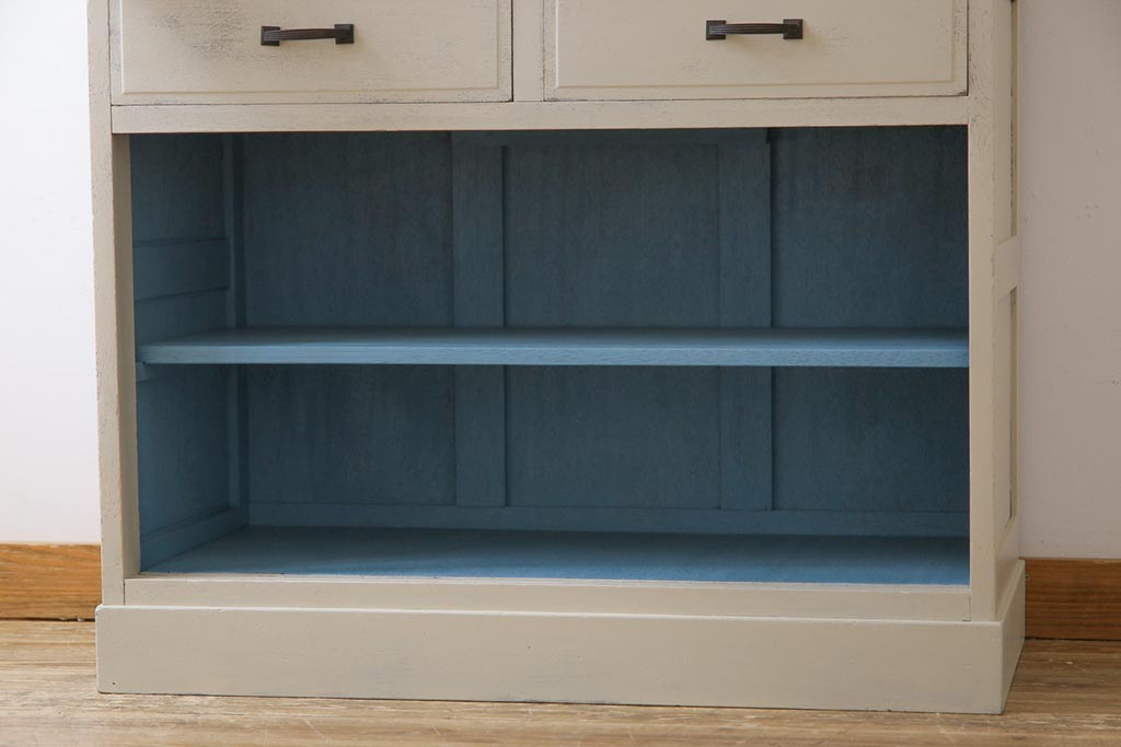 ラフジュ工房> キャビネット・戸棚> 食器棚・カップボード > 和製アンティーク ペイント家具 色ガラス入り 爽やかな印象のシャビーシックなカップボード(食器棚、収納棚)