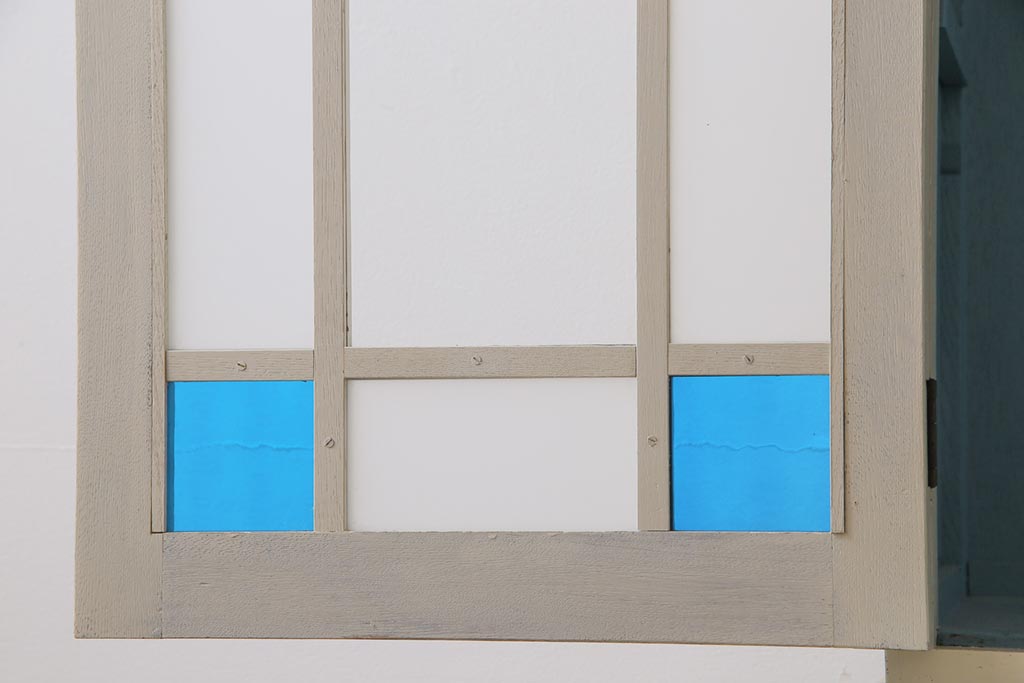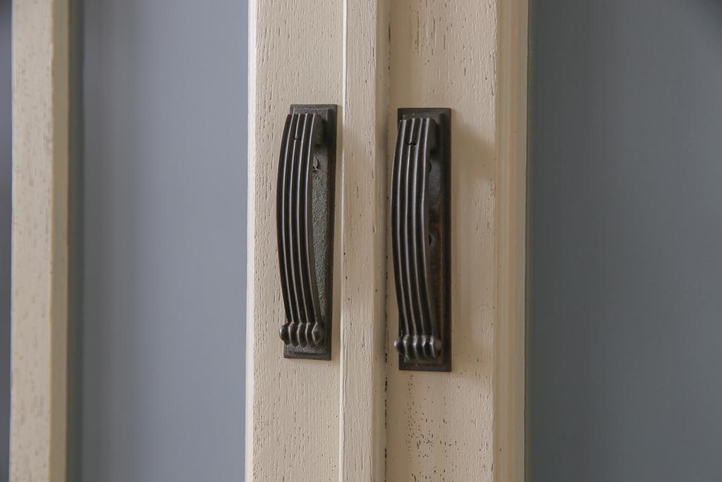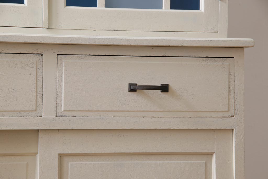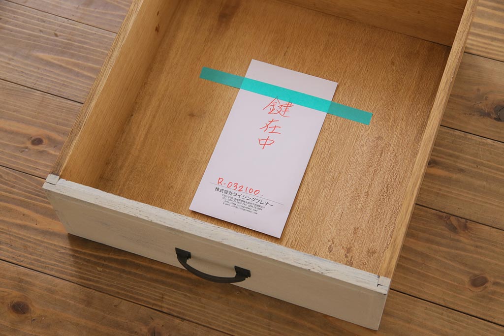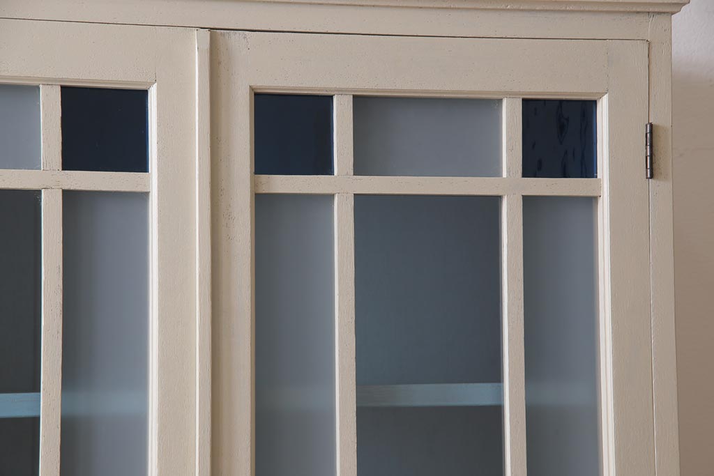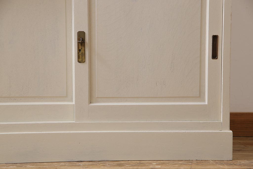 ラフジュ工房> キャビネット・戸棚> 食器棚・カップボード > 和製アンティーク ペイント家具 色ガラス入り 爽やかな印象のシャビーシックなカップボード(食器棚、収納棚)
