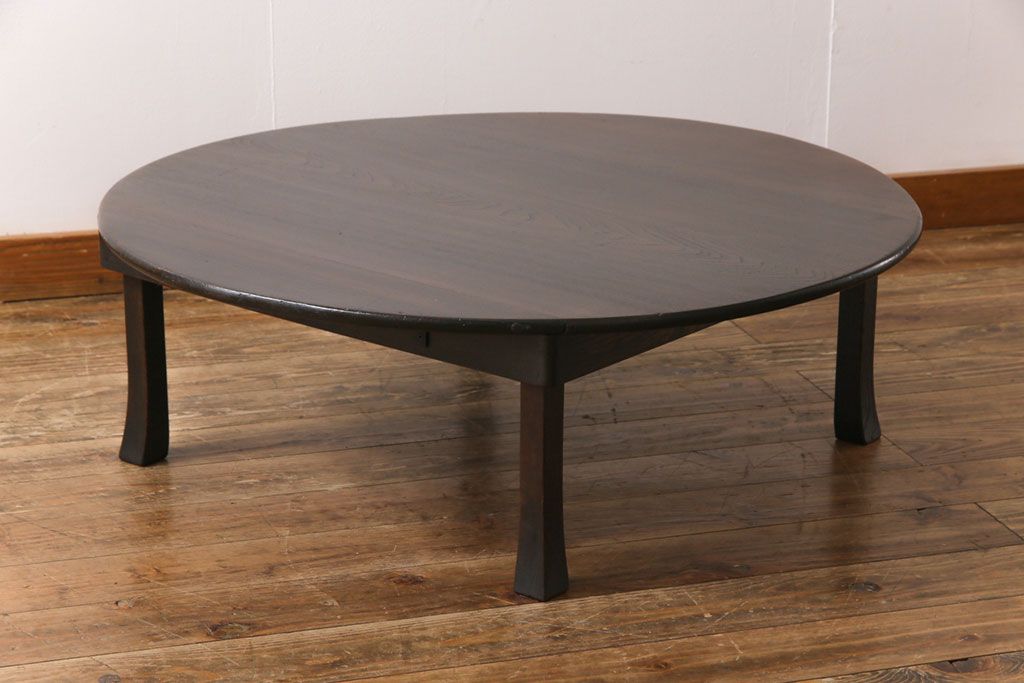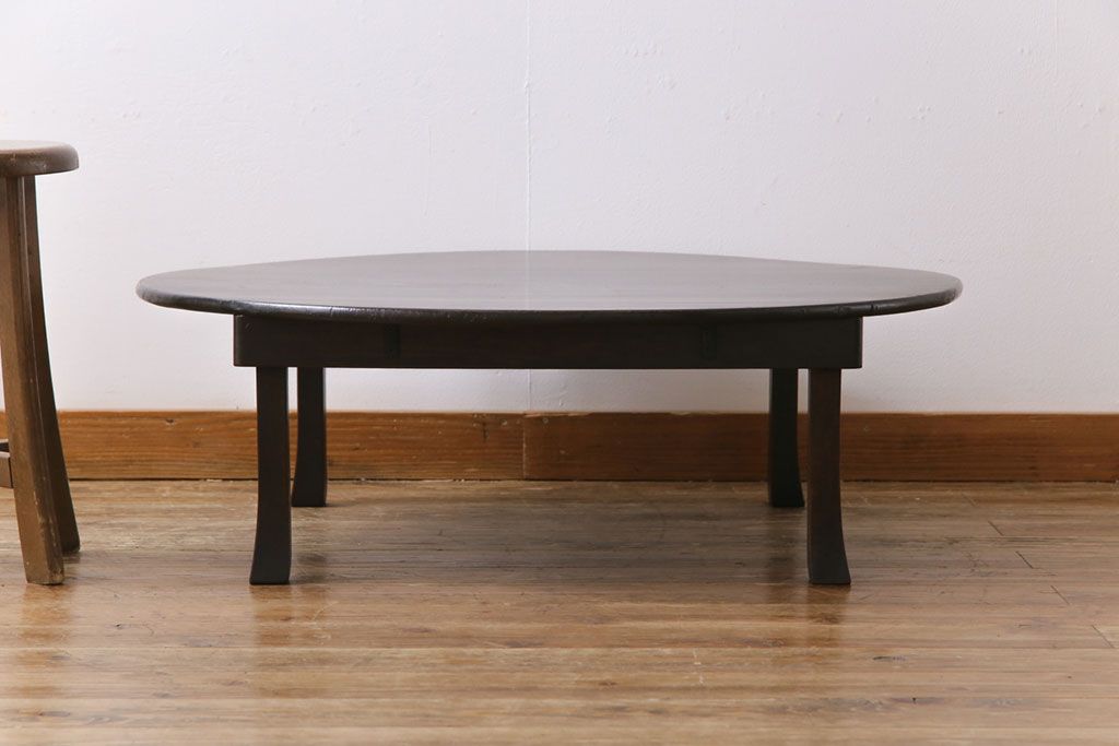 レトロ家具 昭和レトロ 栓材 大振り 渋さのある懐かしい雰囲気の丸ちゃぶ台(座卓、ローテーブル)