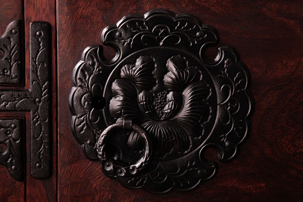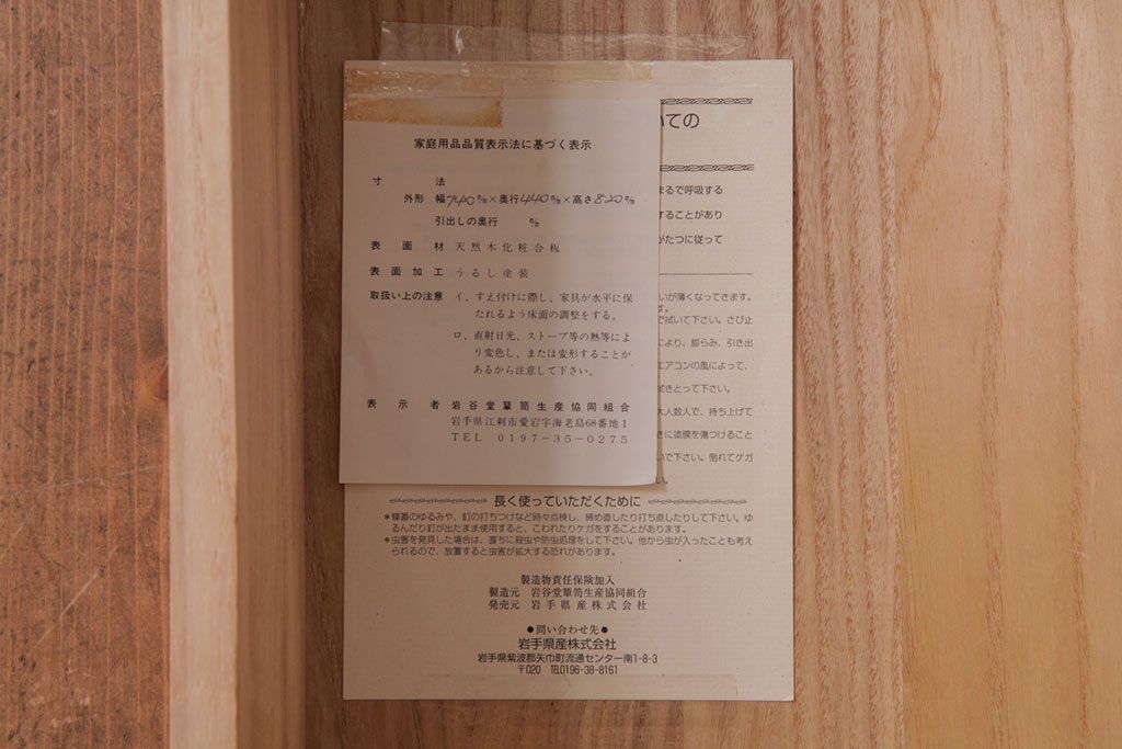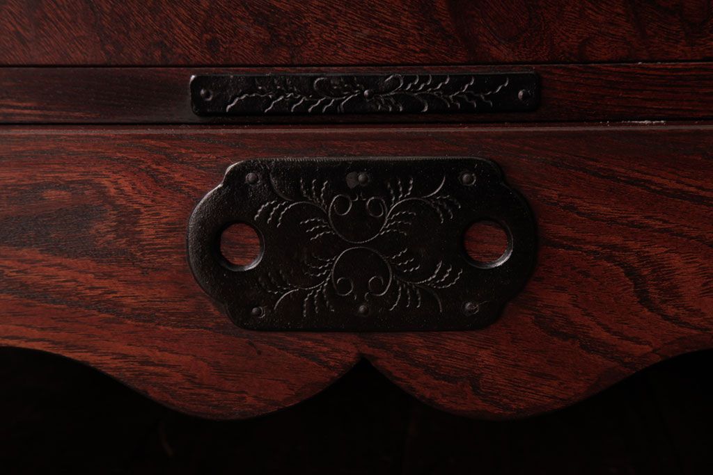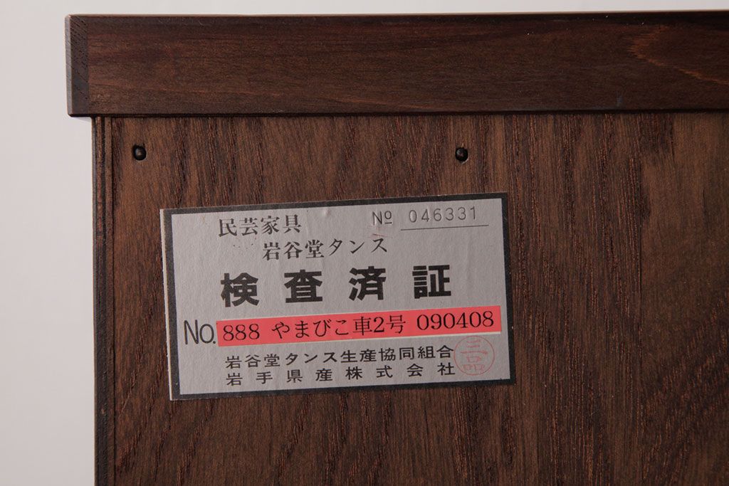 民芸家具 > 中古 伝統民芸家具 岩谷堂箪笥 厚みのある金具が立派な威厳のある車箪笥(小箪笥、チェスト)
