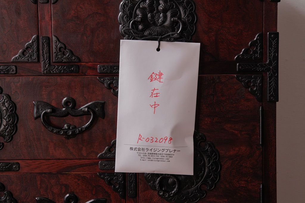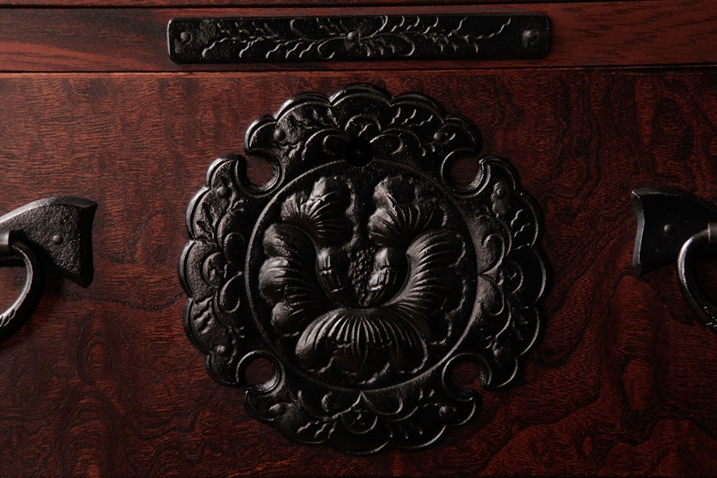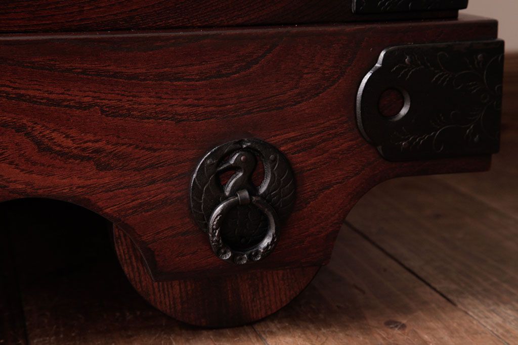 中古 伝統民芸家具 岩谷堂箪笥 厚みのある金具が立派な威厳のある車箪笥(小箪笥、チェスト)