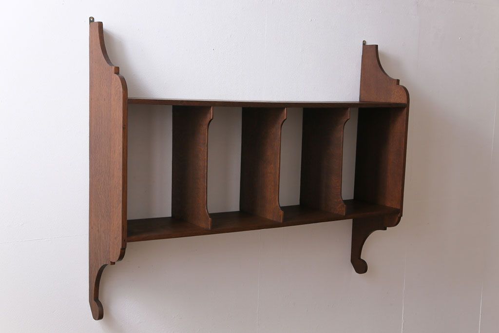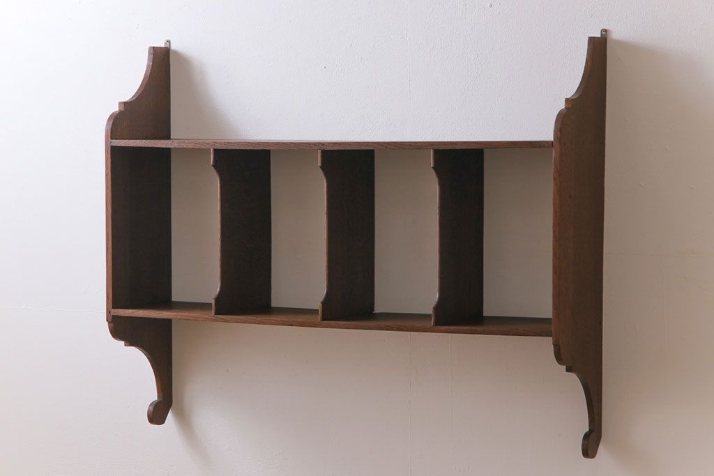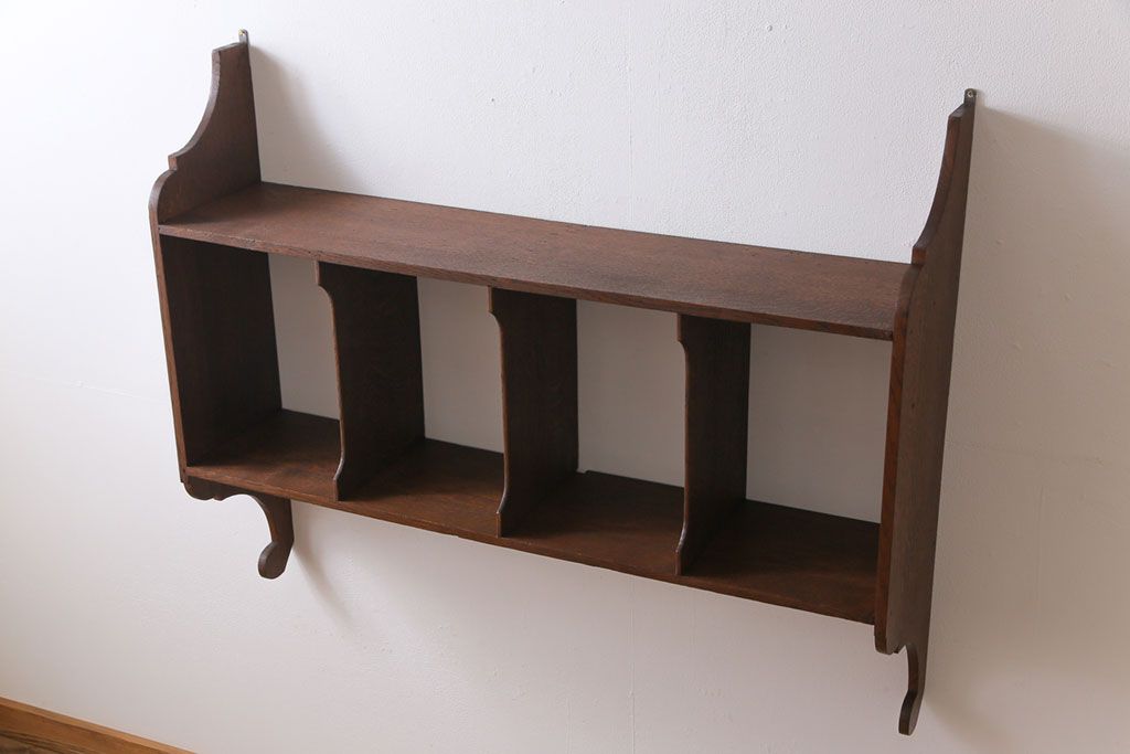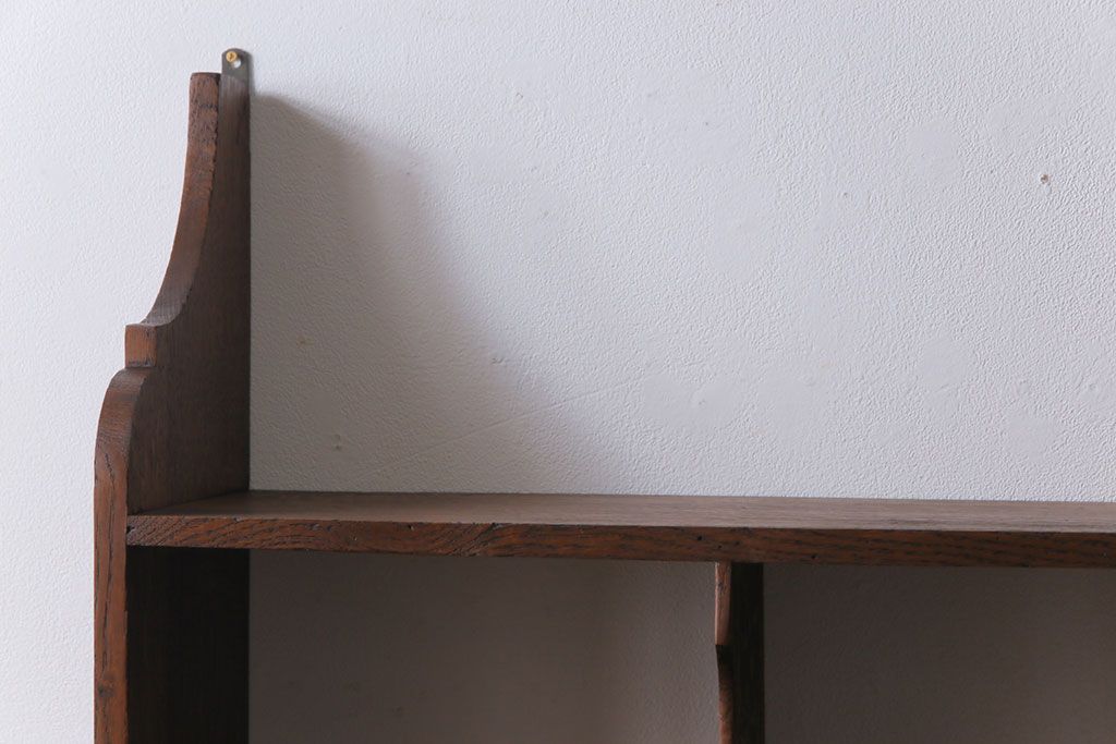 アンティーク家具 イギリスアンティーク オーク材 シンプルな曲線の意匠が魅力のウォールラック(壁掛け飾り棚)