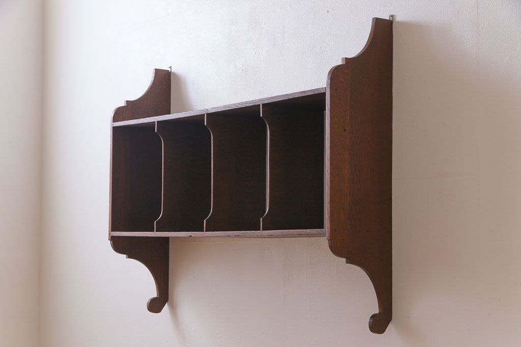 ラフジュ工房> オープンラック・シェルフ > アンティーク家具 イギリスアンティーク オーク材 シンプルな曲線の意匠が魅力のウォールラック(壁掛け飾り棚)