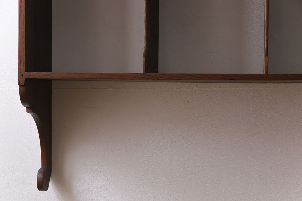ラフジュ工房> オープンラック・シェルフ> ディスプレイラック > アンティーク家具 イギリスアンティーク オーク材 シンプルな曲線の意匠が魅力のウォールラック(壁掛け飾り棚)