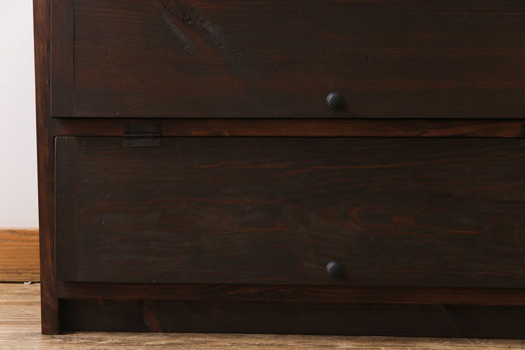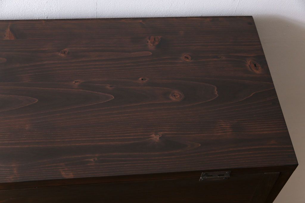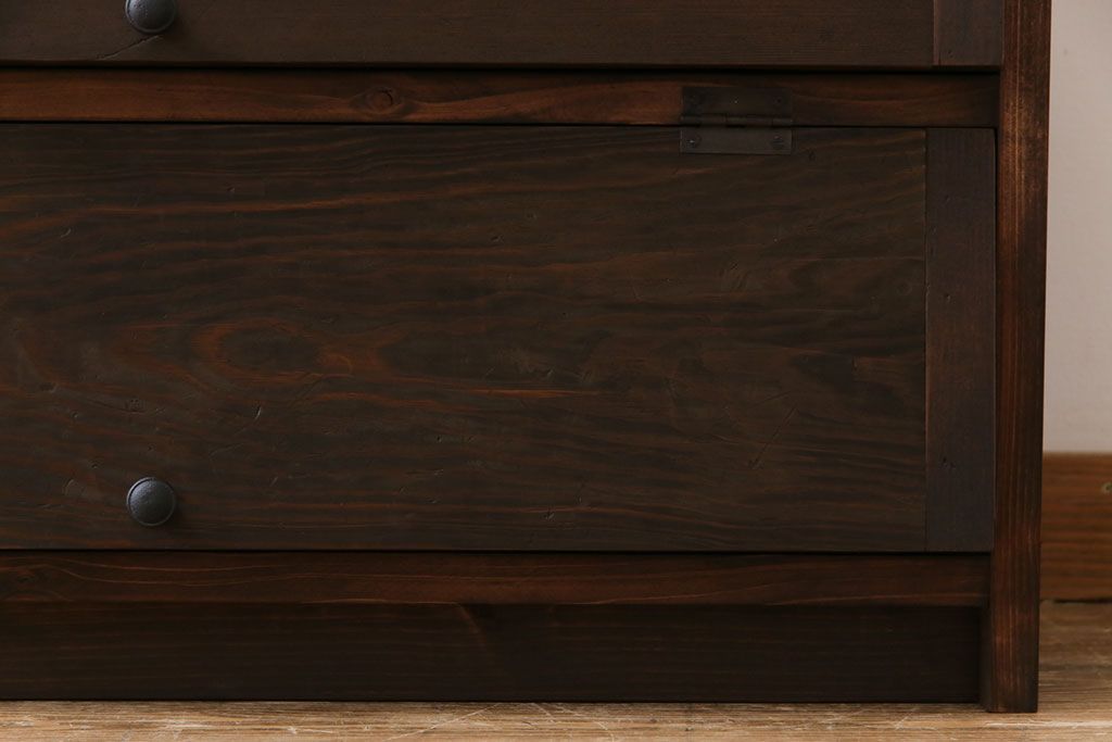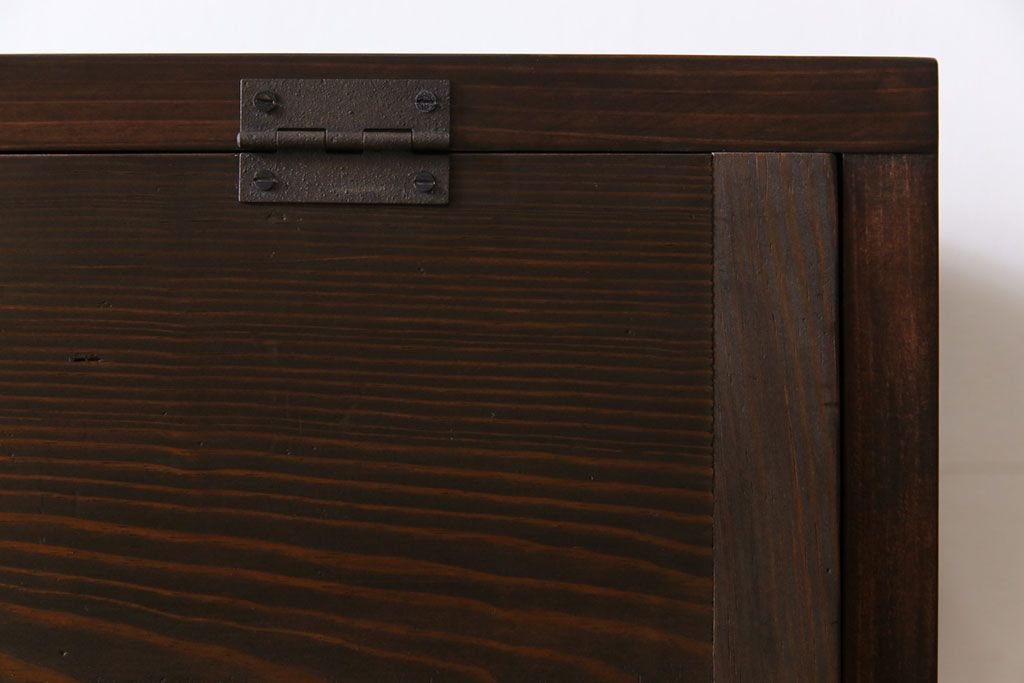 リメイク品 明治期 古い松材を利用したパタパタ扉の収納棚(戸棚、下駄箱、キャビネット)です。