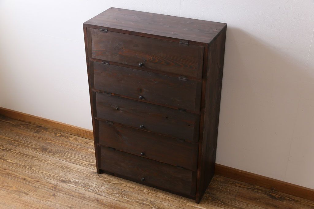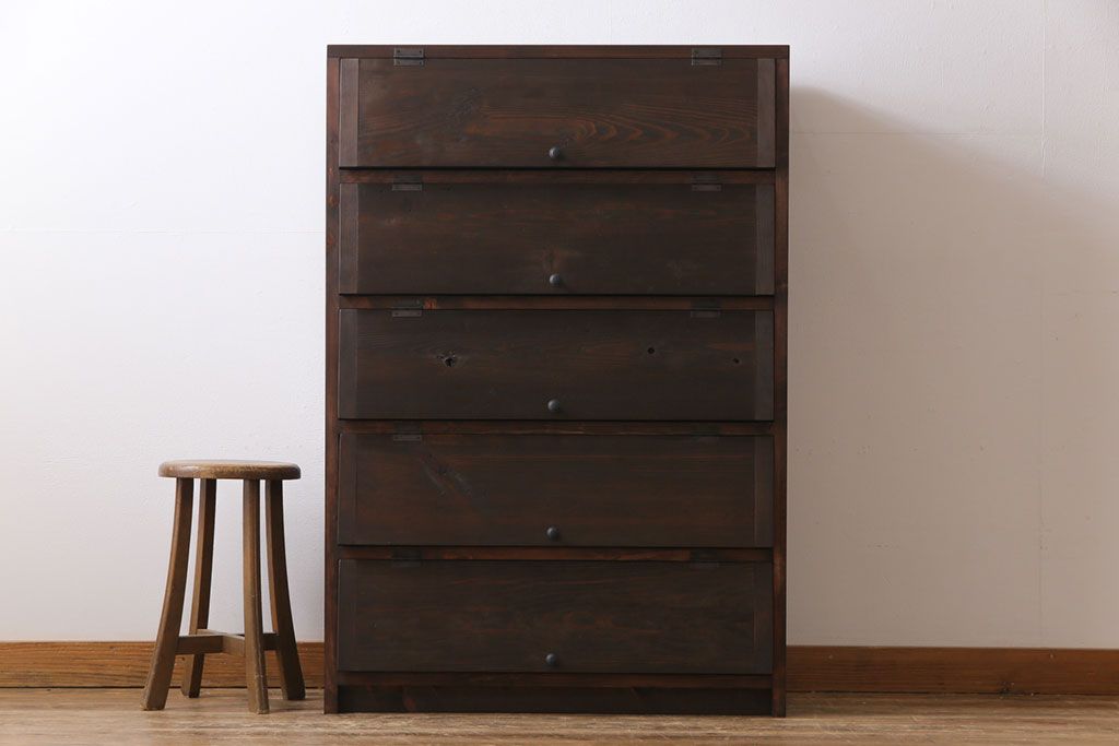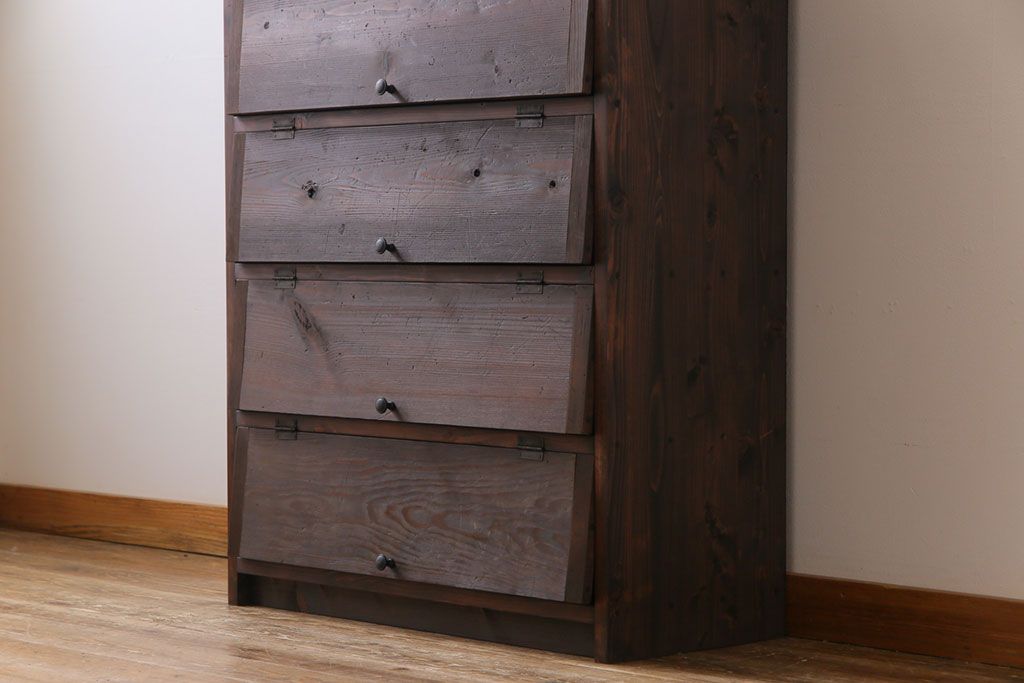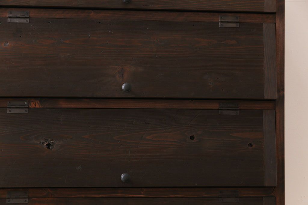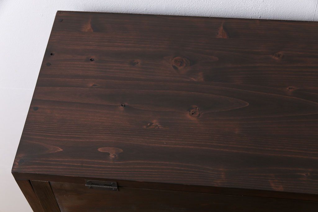 リメイク品 明治期 古い松材を利用したパタパタ扉の収納棚(戸棚、下駄箱、キャビネット)です。
