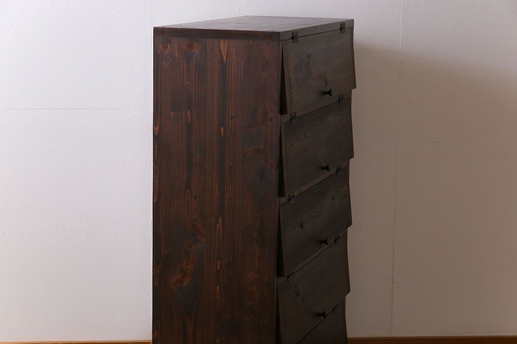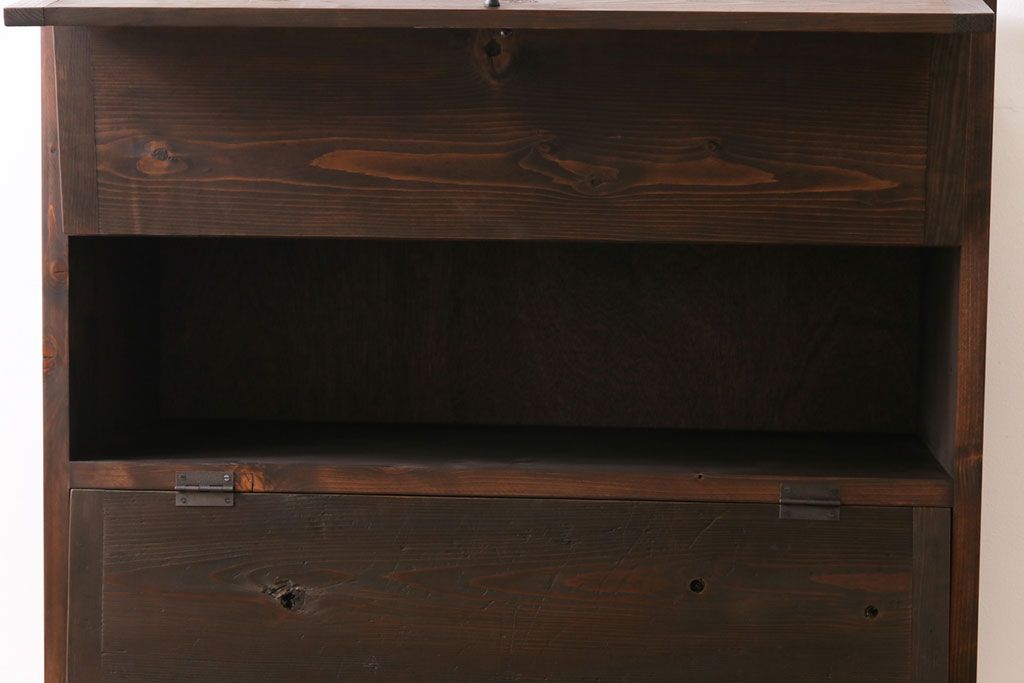 アンティーク家具 リメイク品 明治期 古い松材を利用したパタパタ扉の収納棚(戸棚、下駄箱、キャビネット)