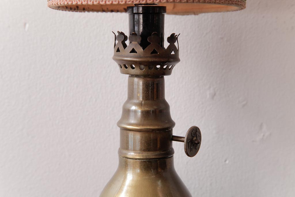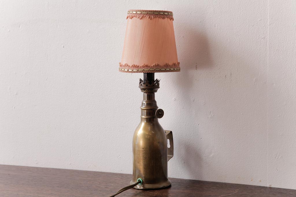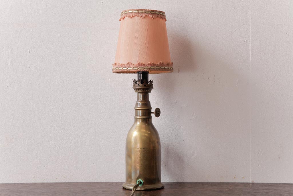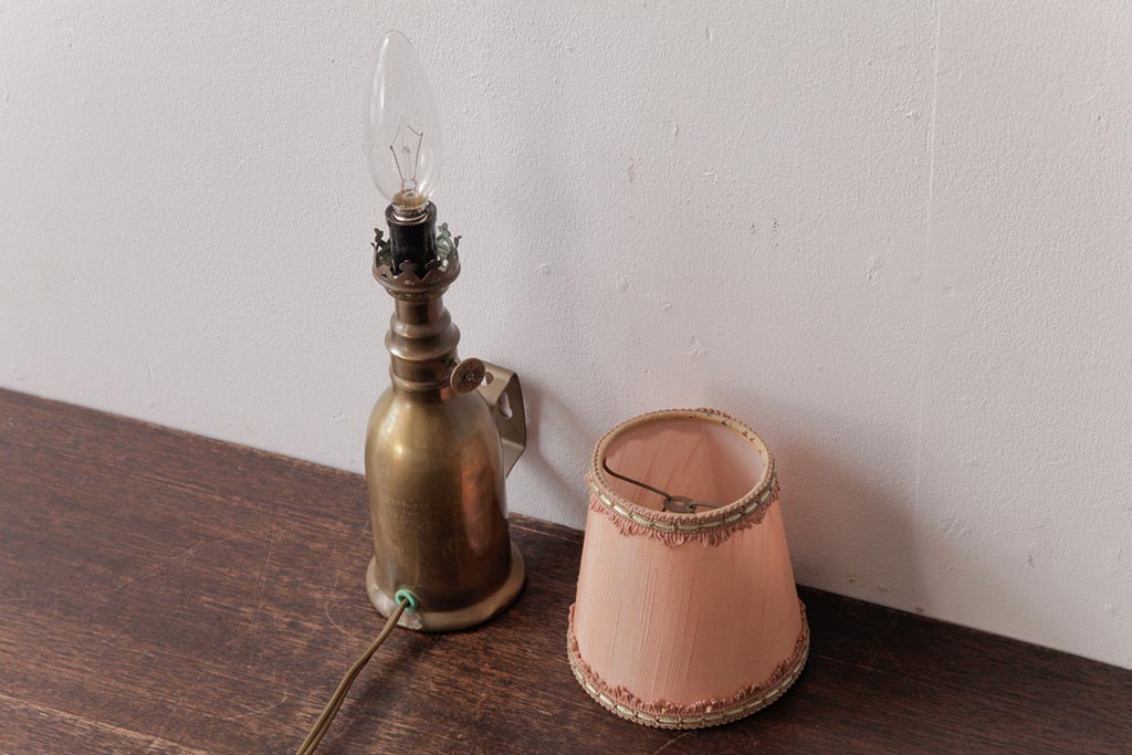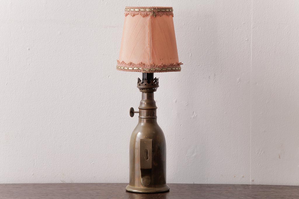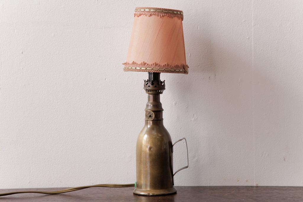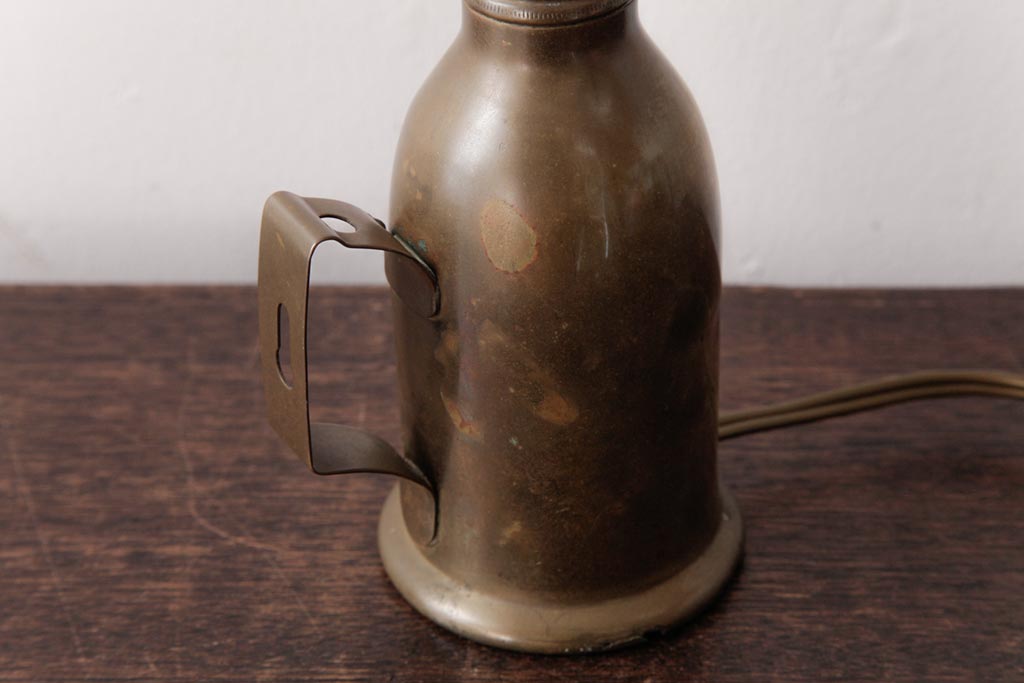 フランスアンティーク ピジョンランプ くすんだ真鍮が魅力的なスタンドライト(ナイトランプ、卓上照明)です。