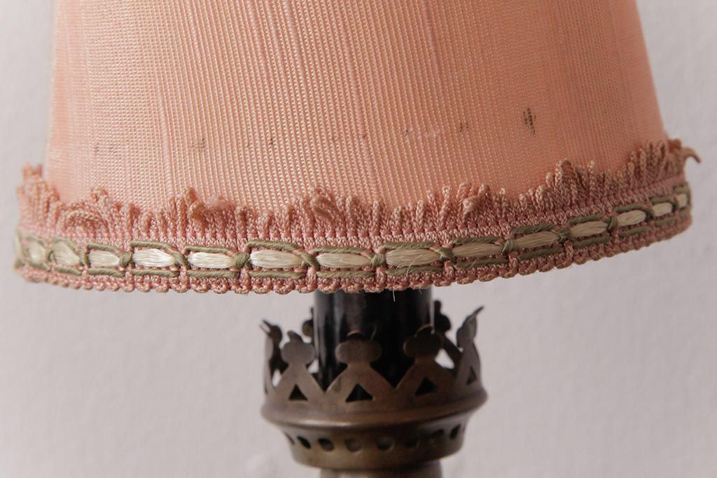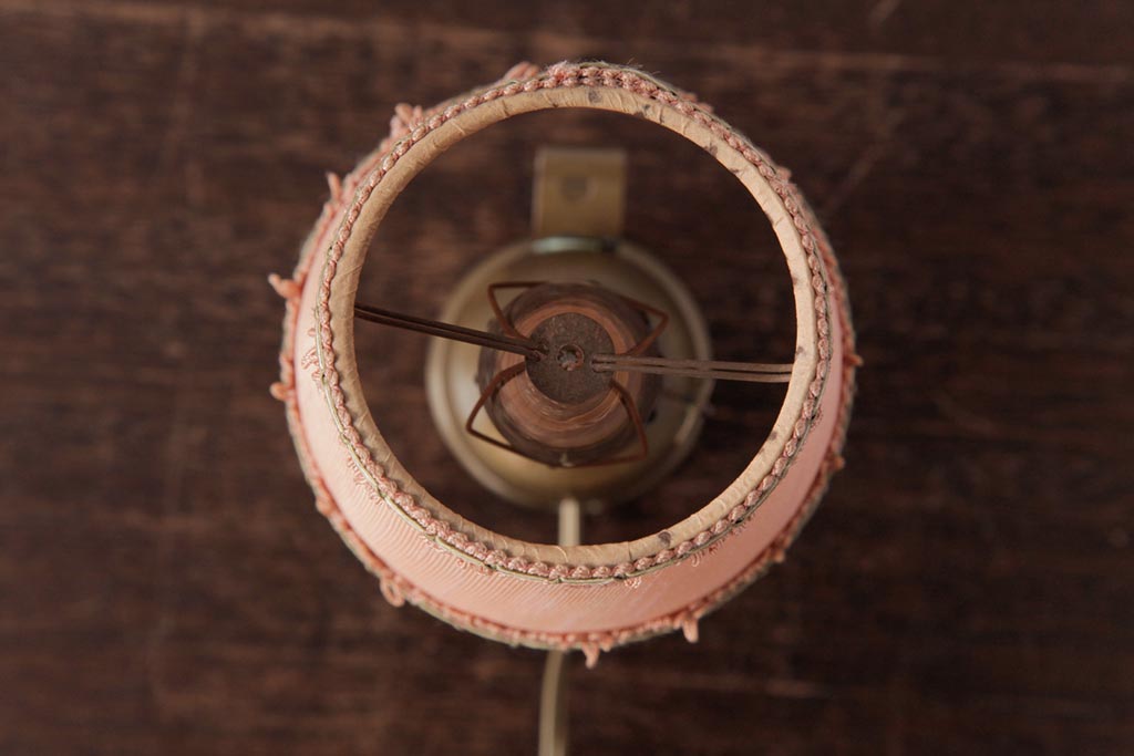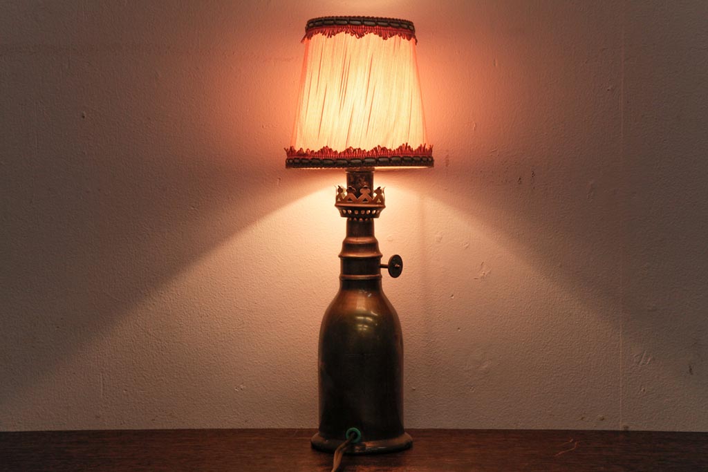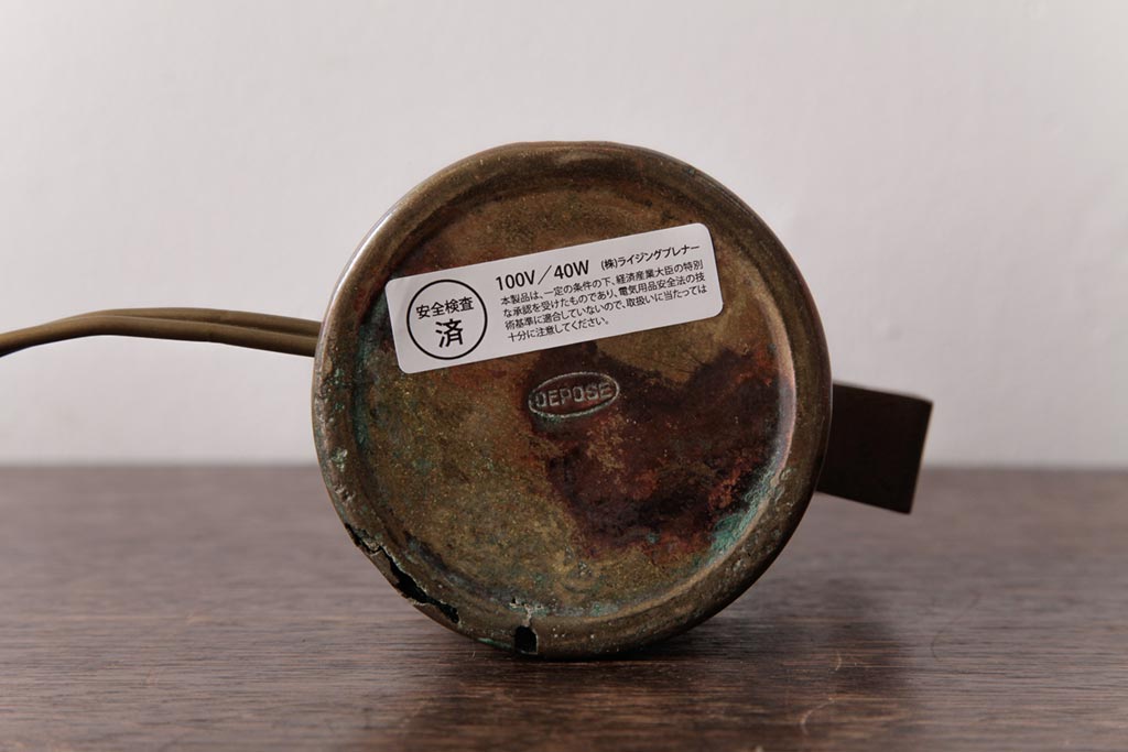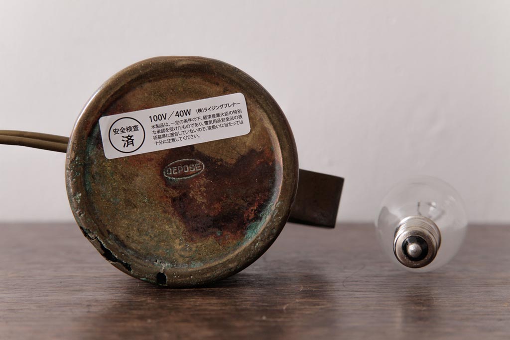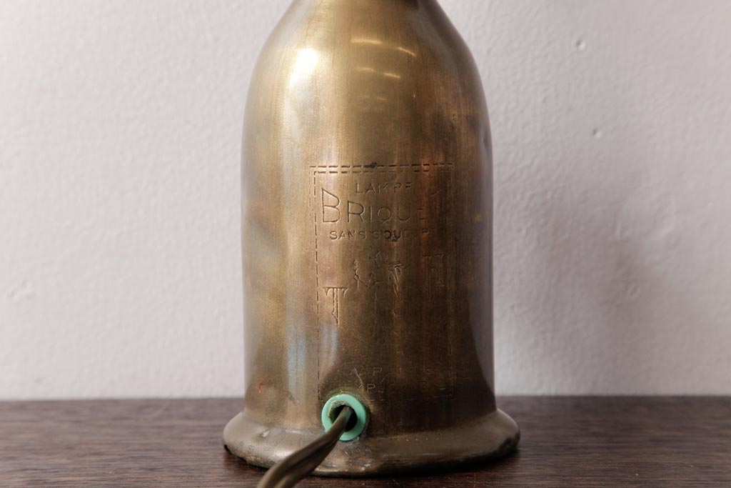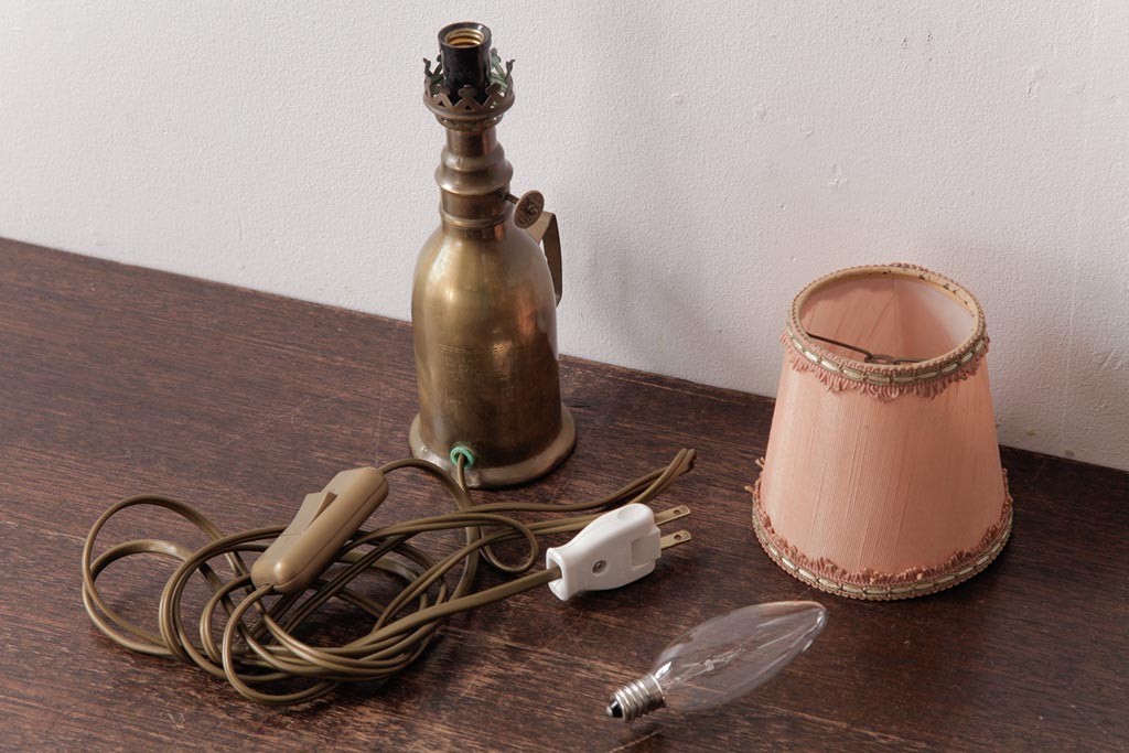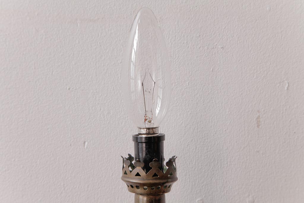 フランスアンティーク ピジョンランプ くすんだ真鍮が魅力的なスタンドライト(ナイトランプ、卓上照明)です。